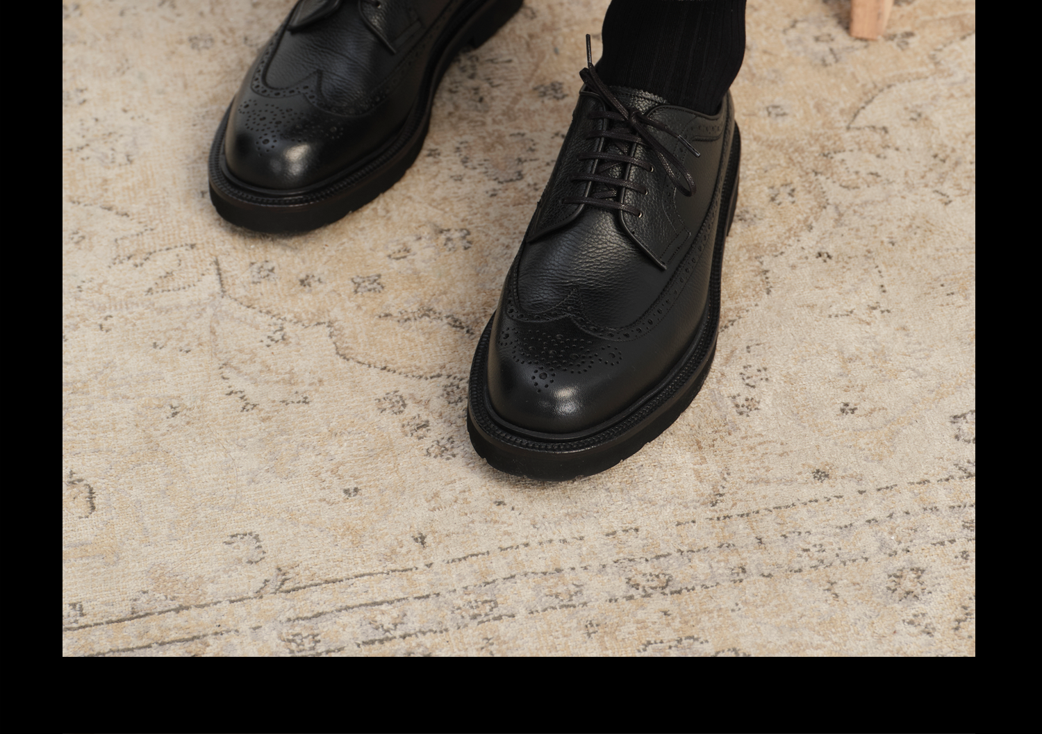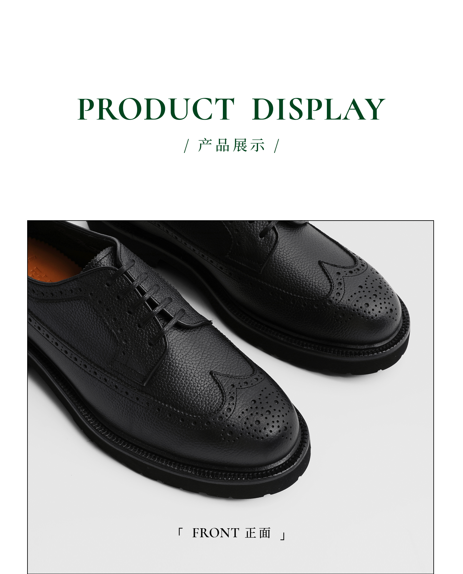 [Full Brogue] Handmade Men's Carved Derby Shoes Business Casual Genuine Leather Black Formal Wedding Groom Shoes