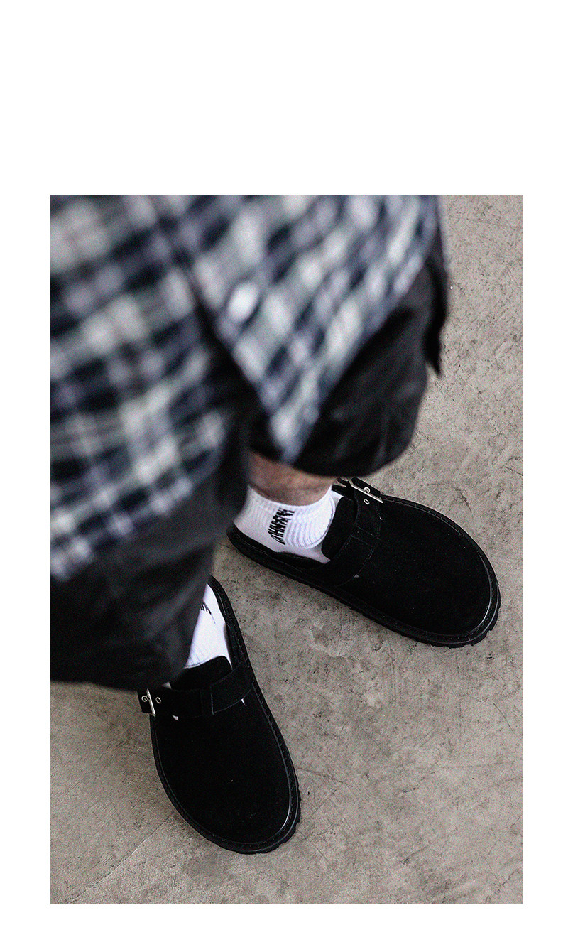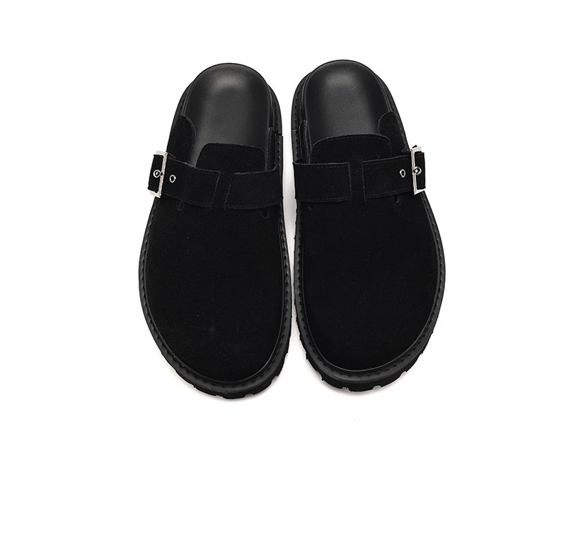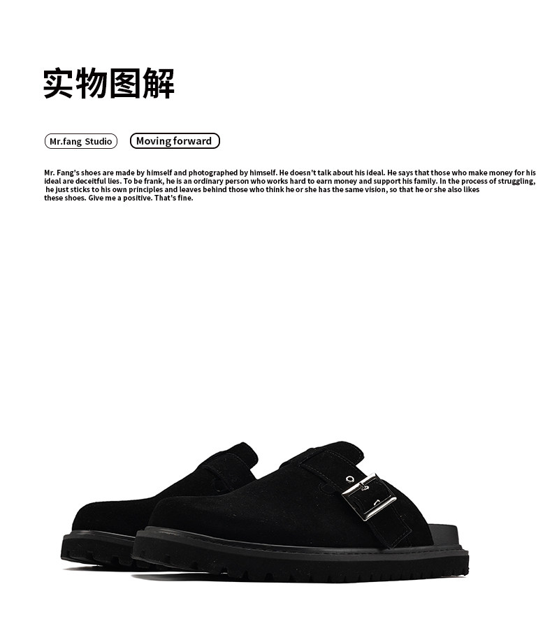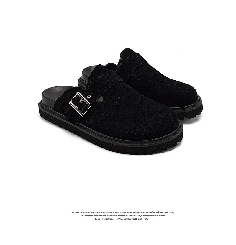 Fang Sanhuo 2025 Summer Black Mule Slippers Men's Suede Lazy Birkenstock Shoes Retro Unisex Commuting Shoes