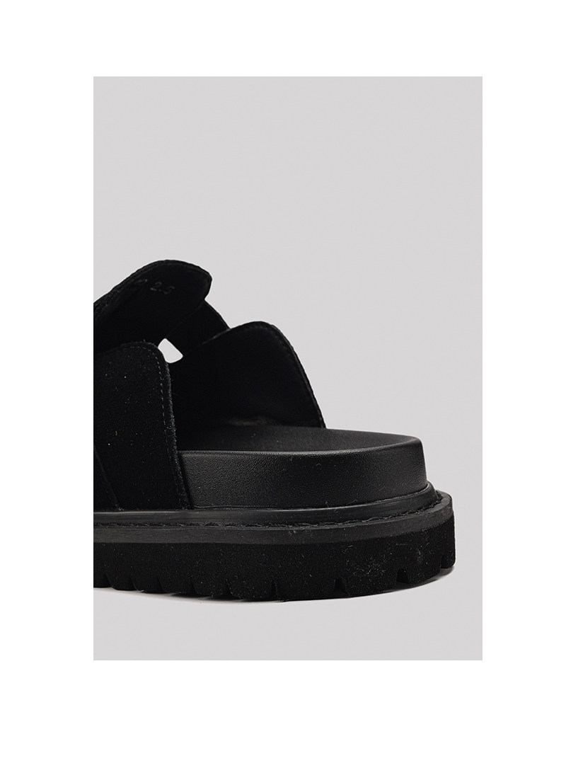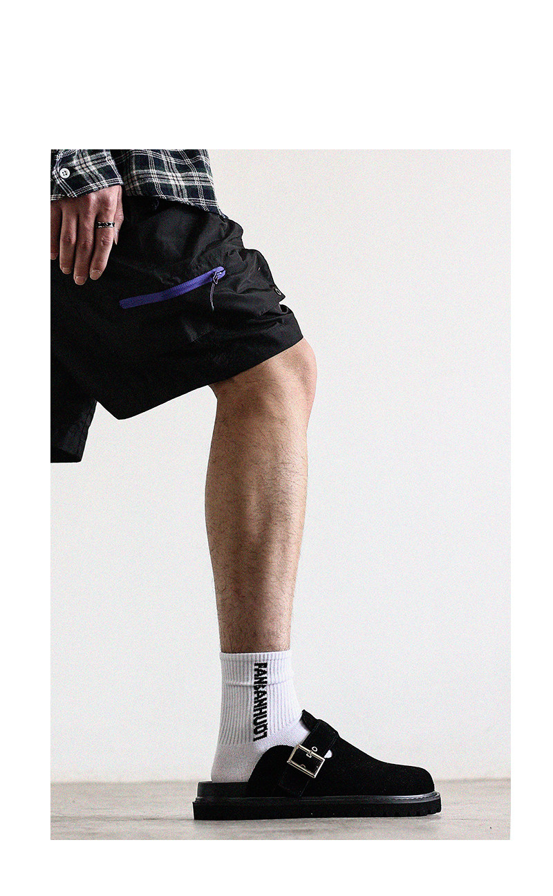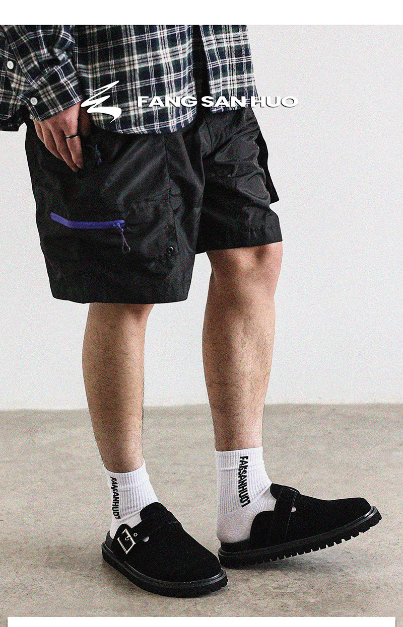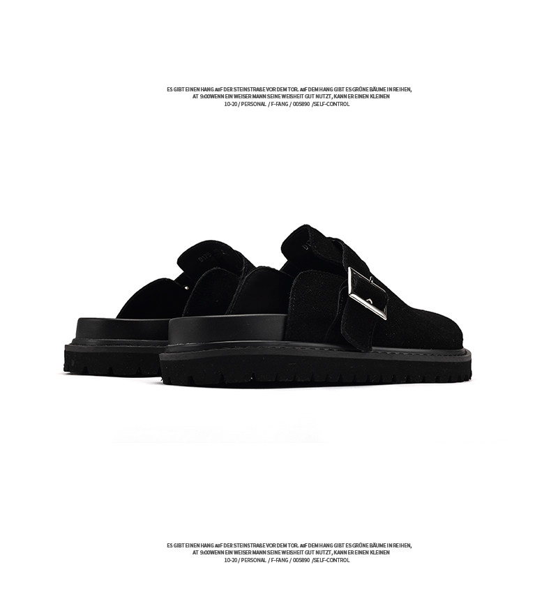 Fang Sanhuo 2025 Summer Black Mule Slippers Men's Suede Lazy Birkenstock Shoes Retro Unisex Commuting Shoes