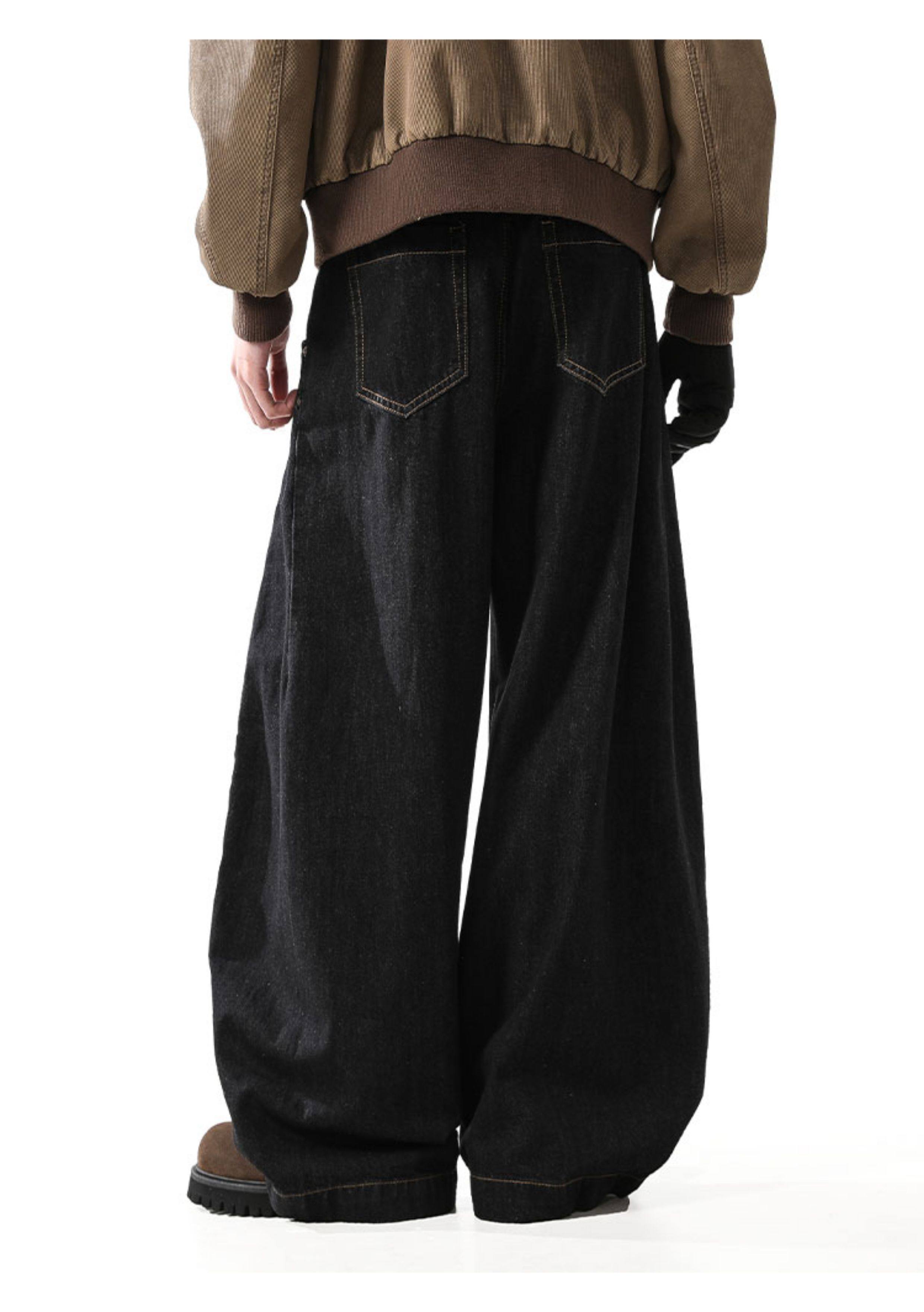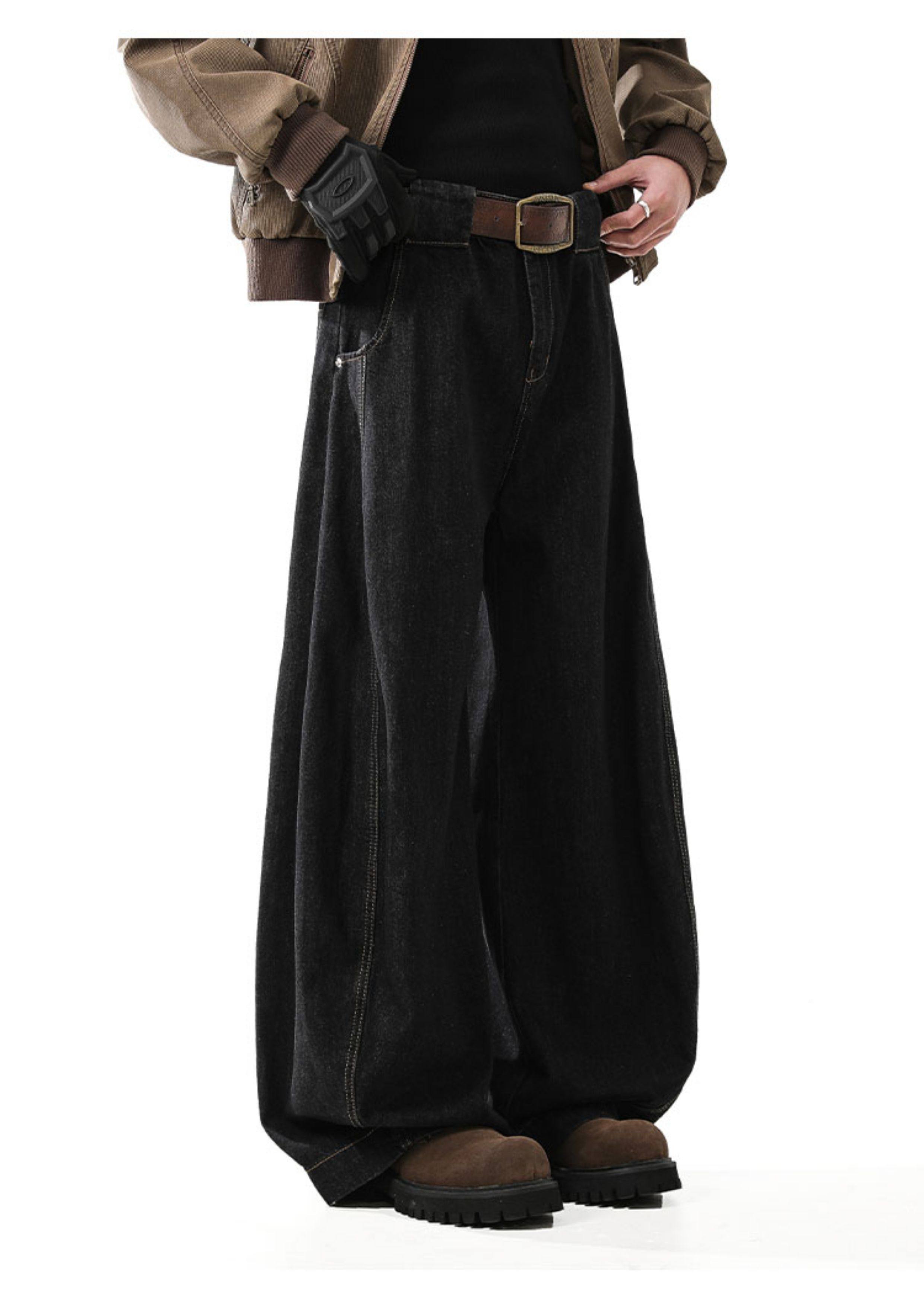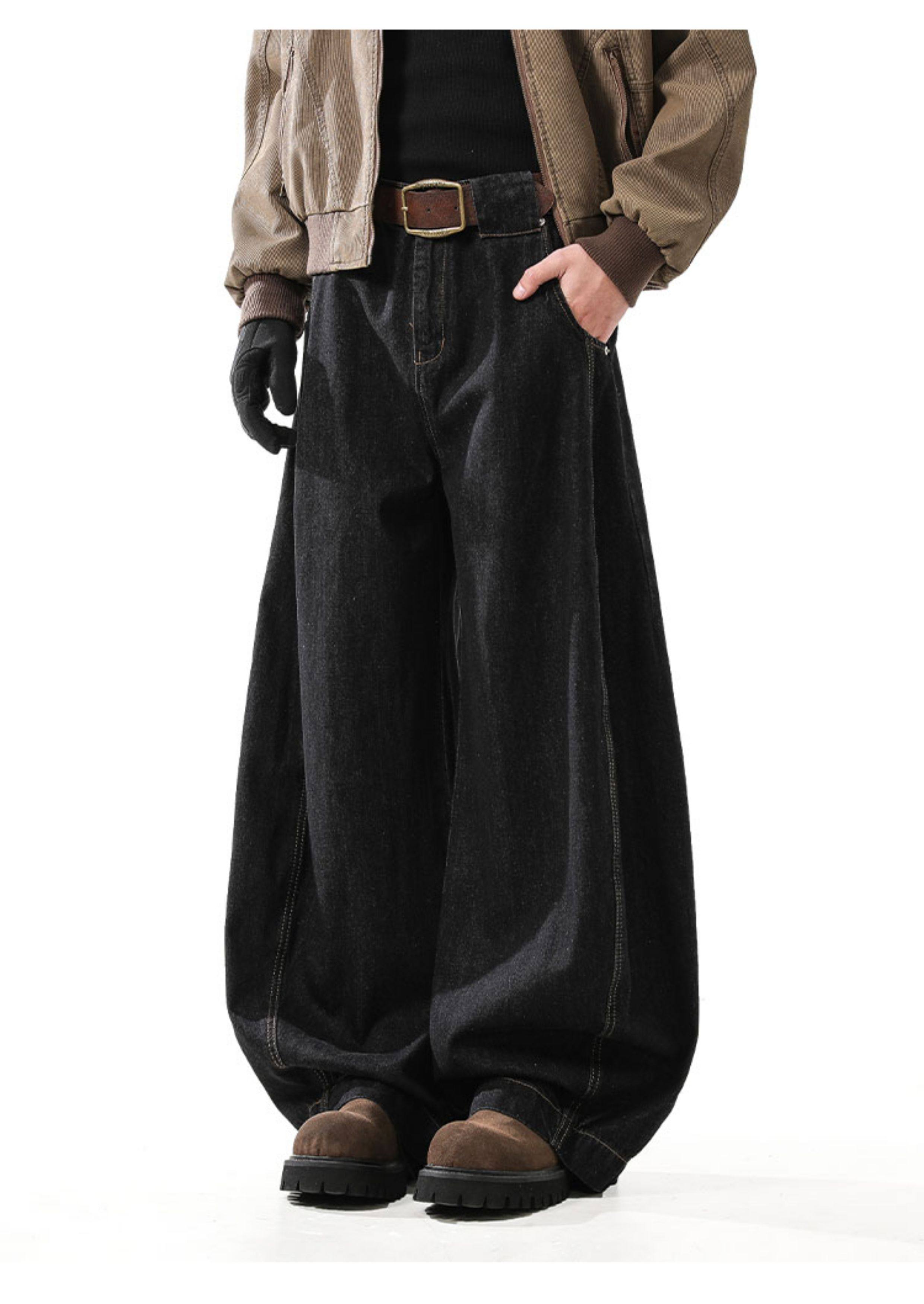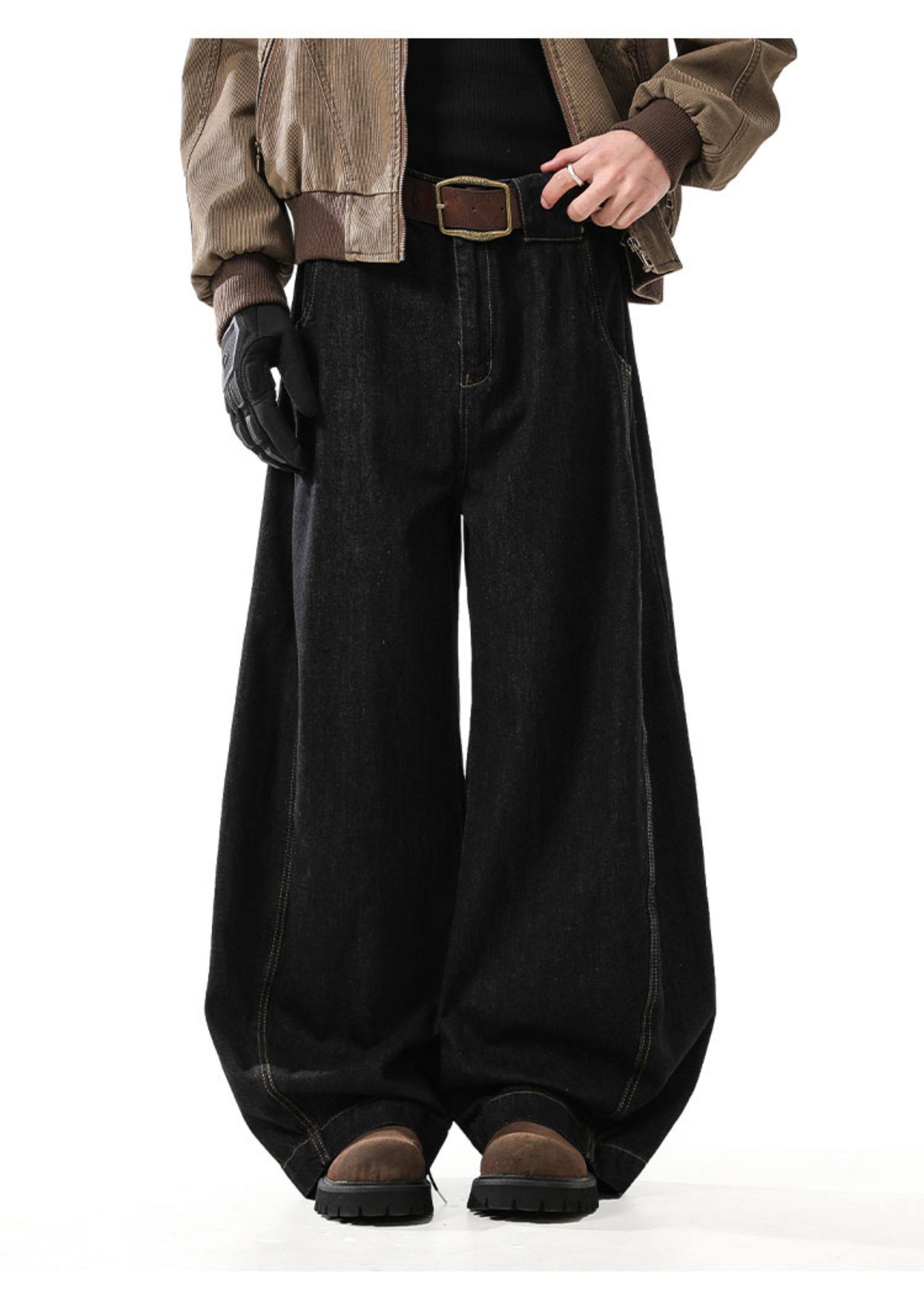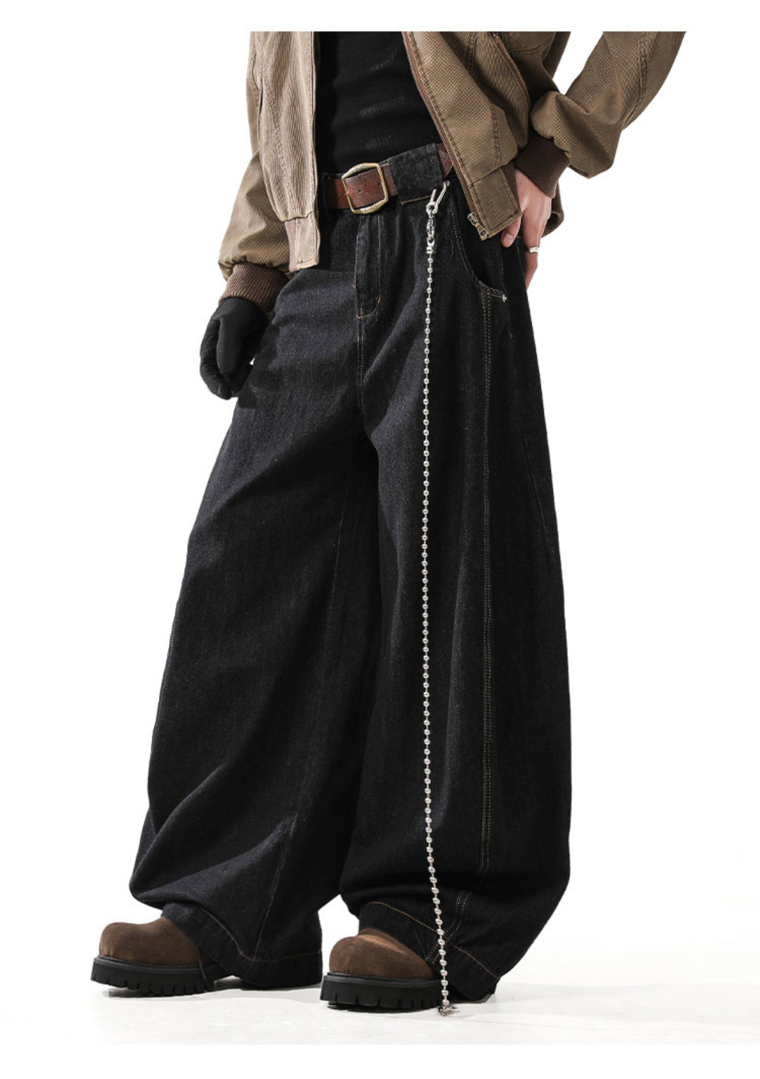 Blankin American Retro Denim Black Scimitar Jeans Men's Trendy Loose Baggy Wide-Leg Sickle Pants