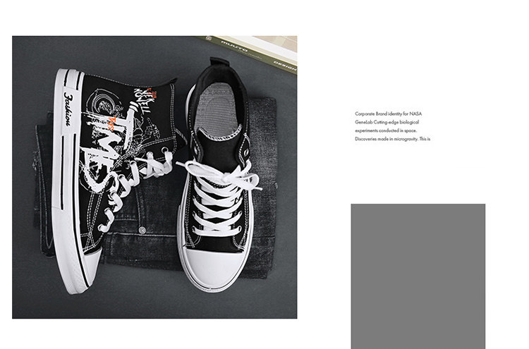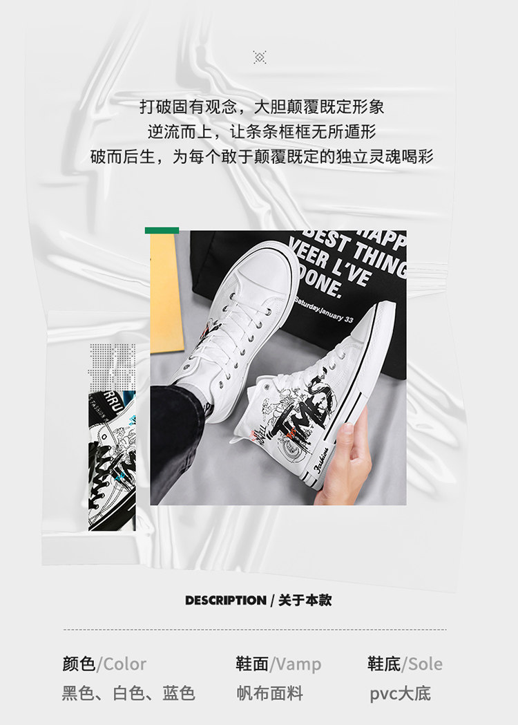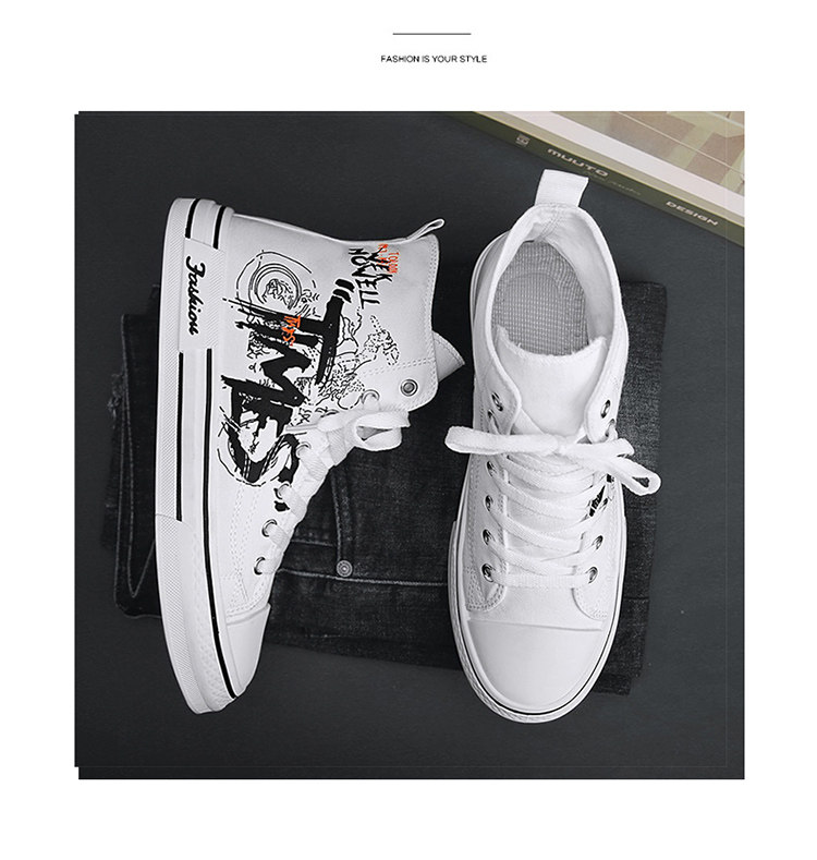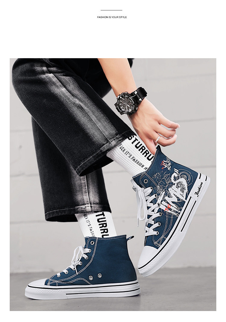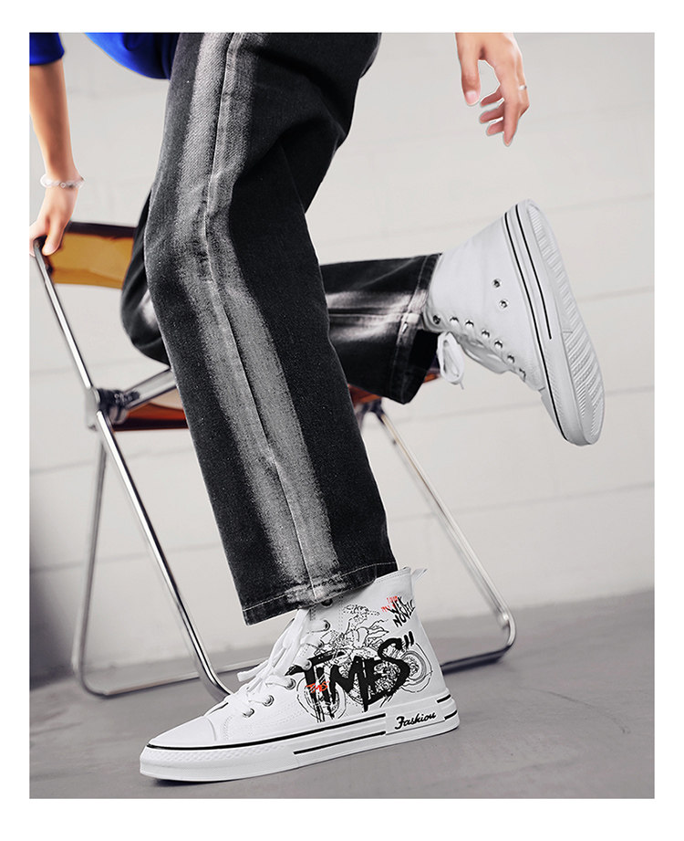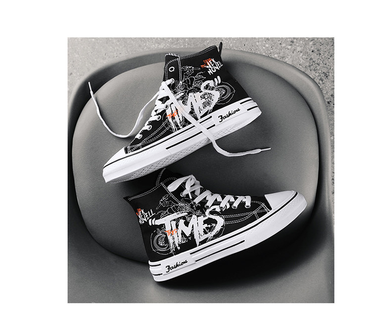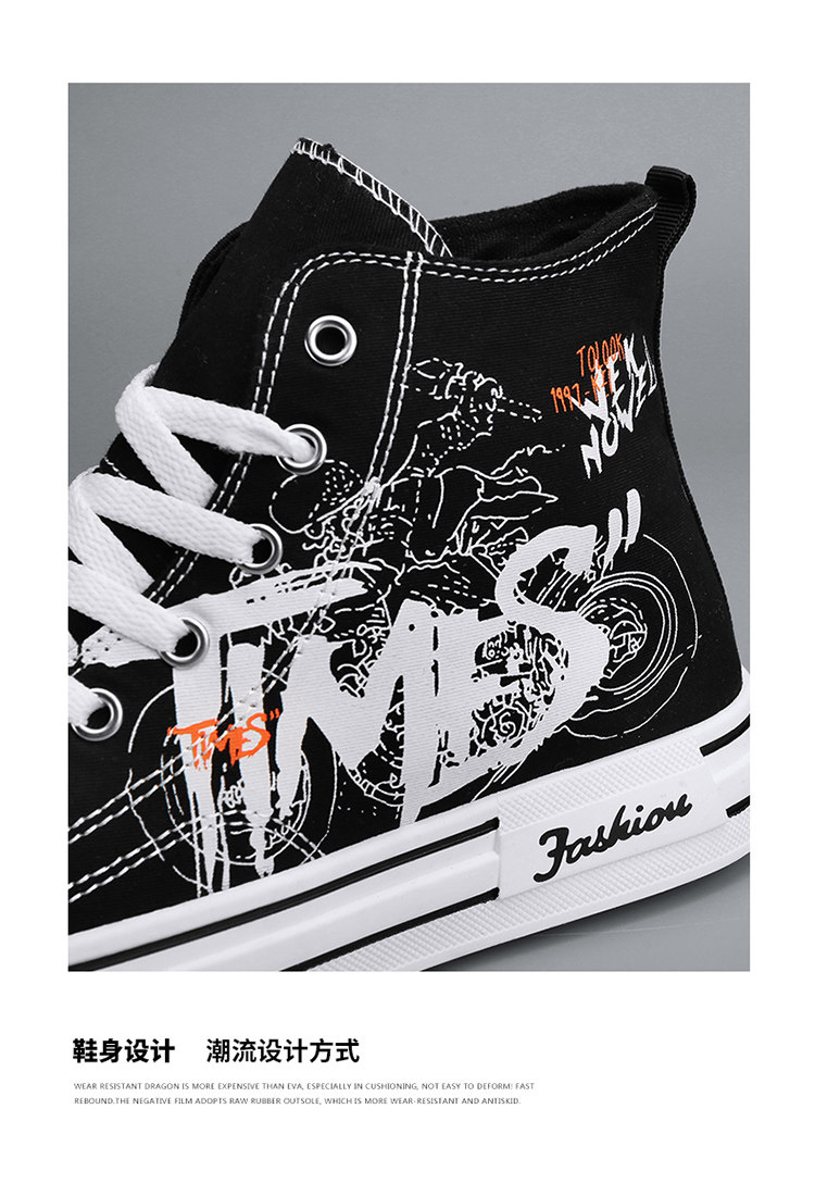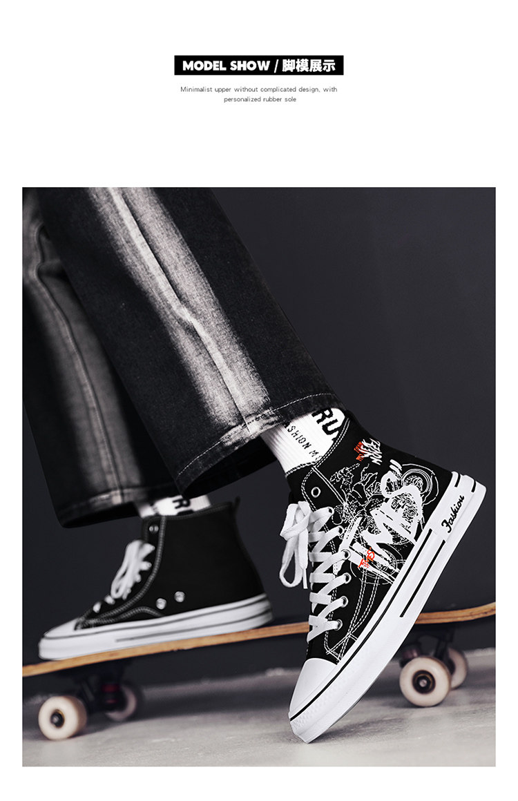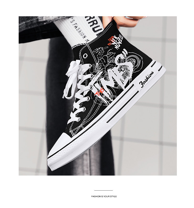 Scarecrow Canvas Shoes Men's High-Top Shoes Autumn and Winter National Trend Black Sports Youth Versatile Casual Sneakers Trendy Shoes