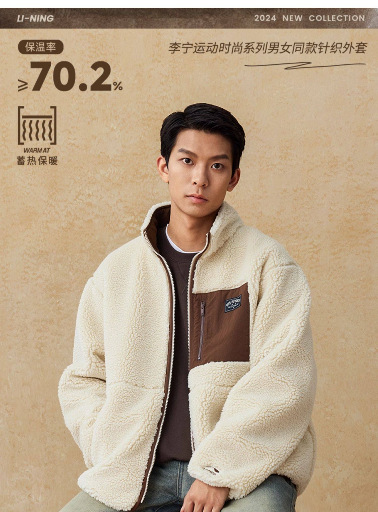 Li-Ning Women's Thick Windproof Fleece Jacket, Couple's Fleece Top, Warm Cotton Coat, Windproof Retro Jacket for Men