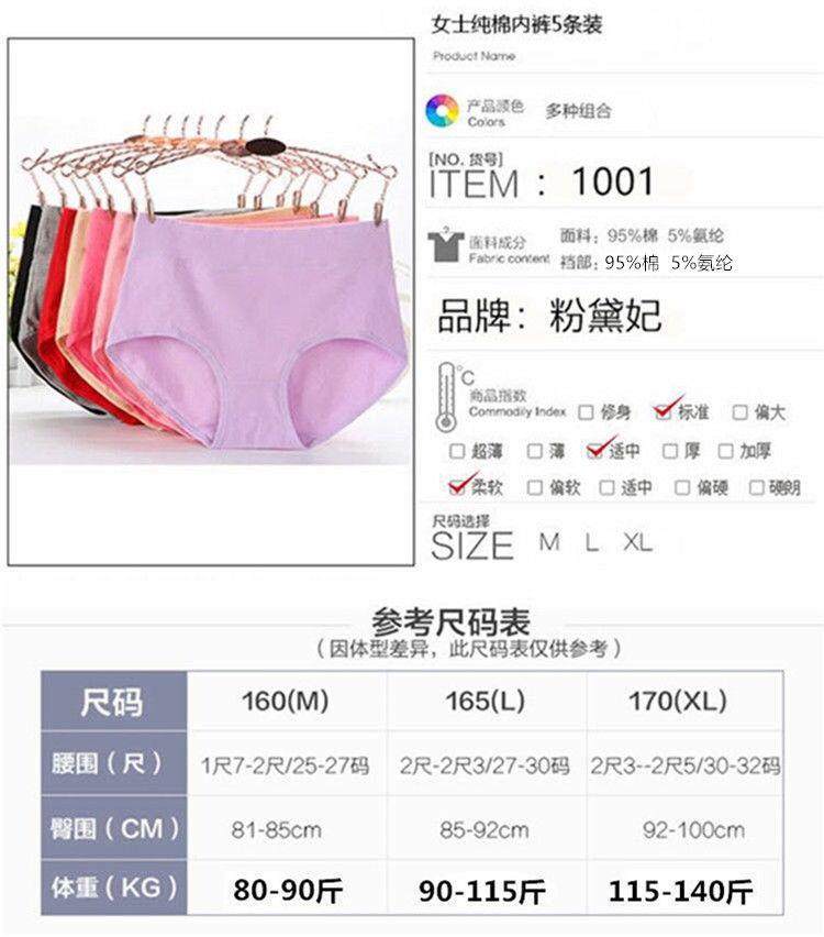 [5 Pieces in 5 Colors] Women's Mid-Waist 95% Cotton Solid Color Tummy Control Butt-Lifting Shapewear Panties Cotton Material Underwear