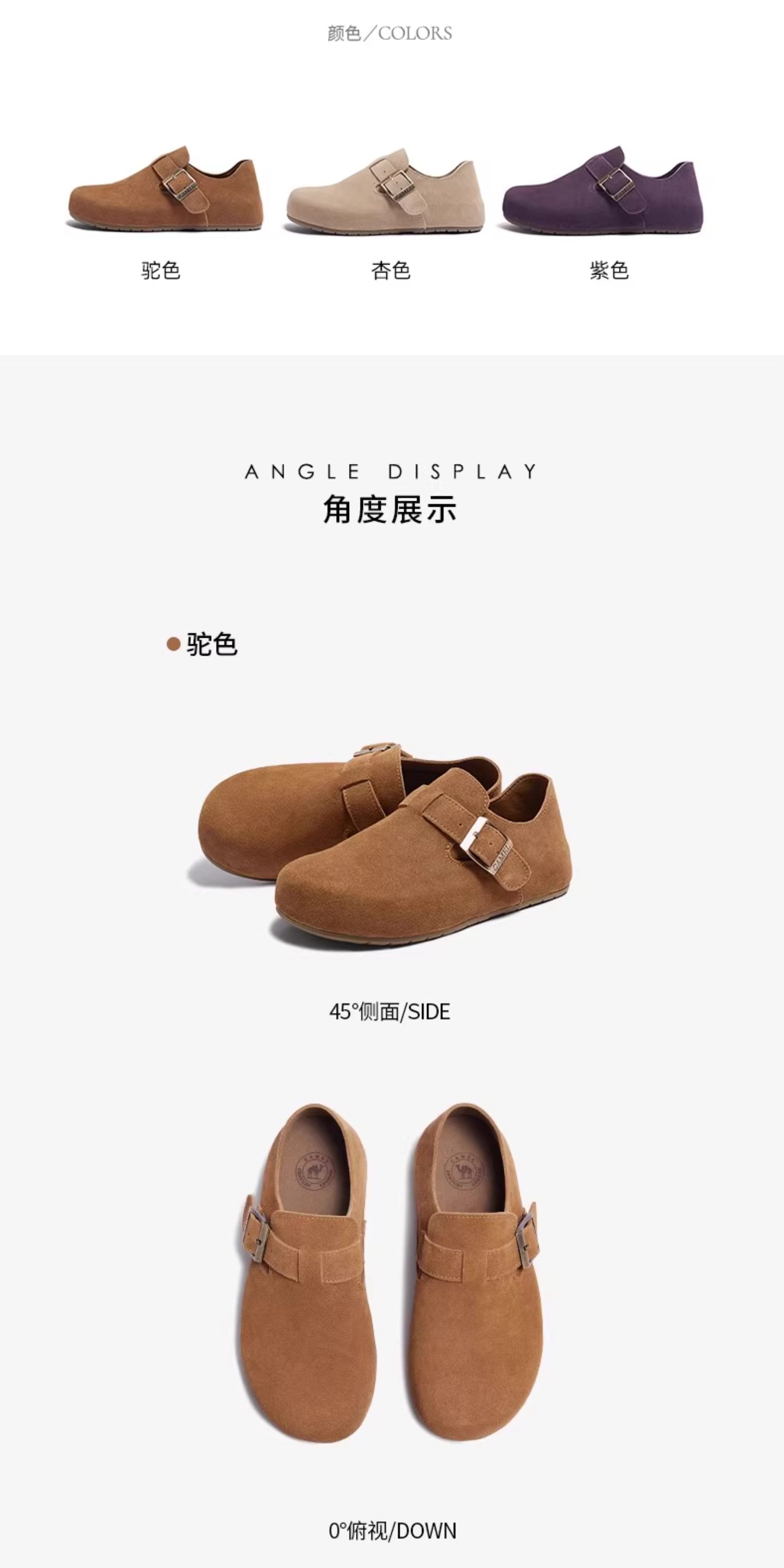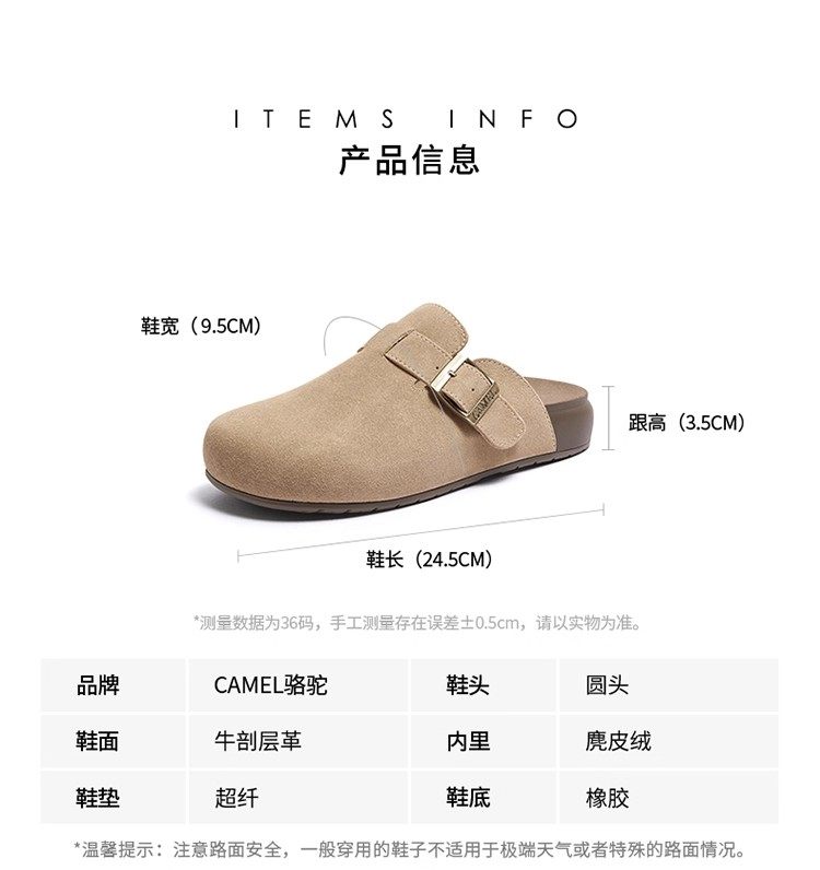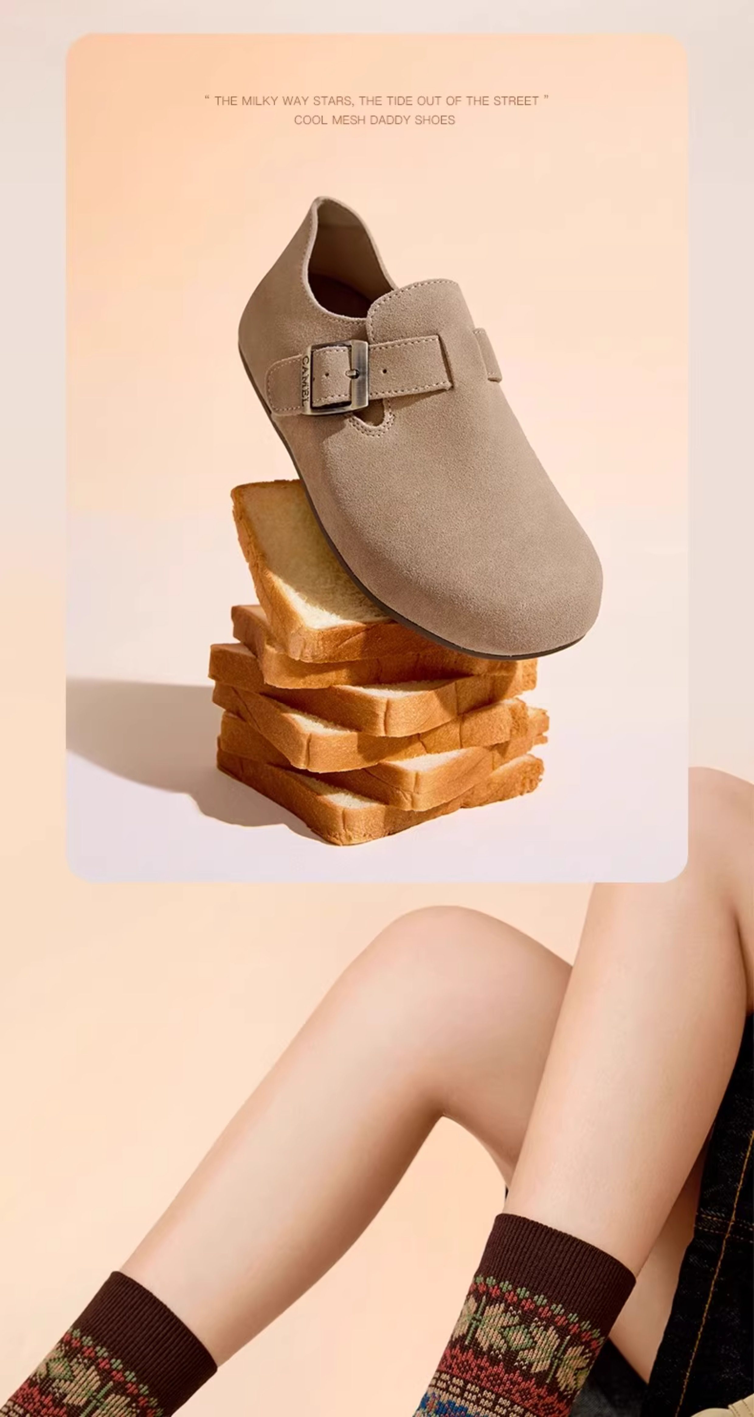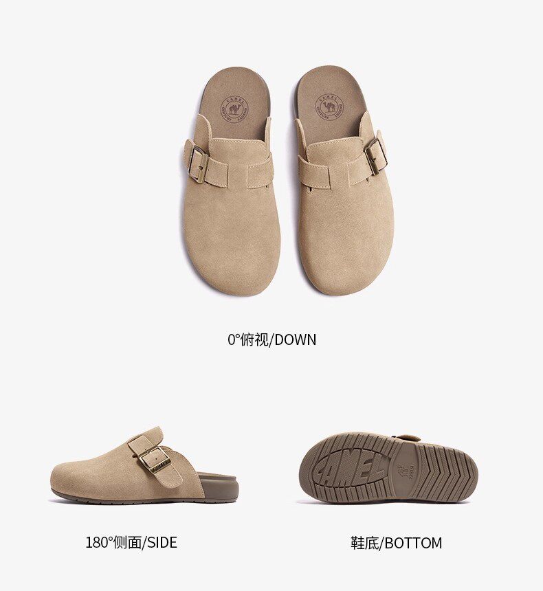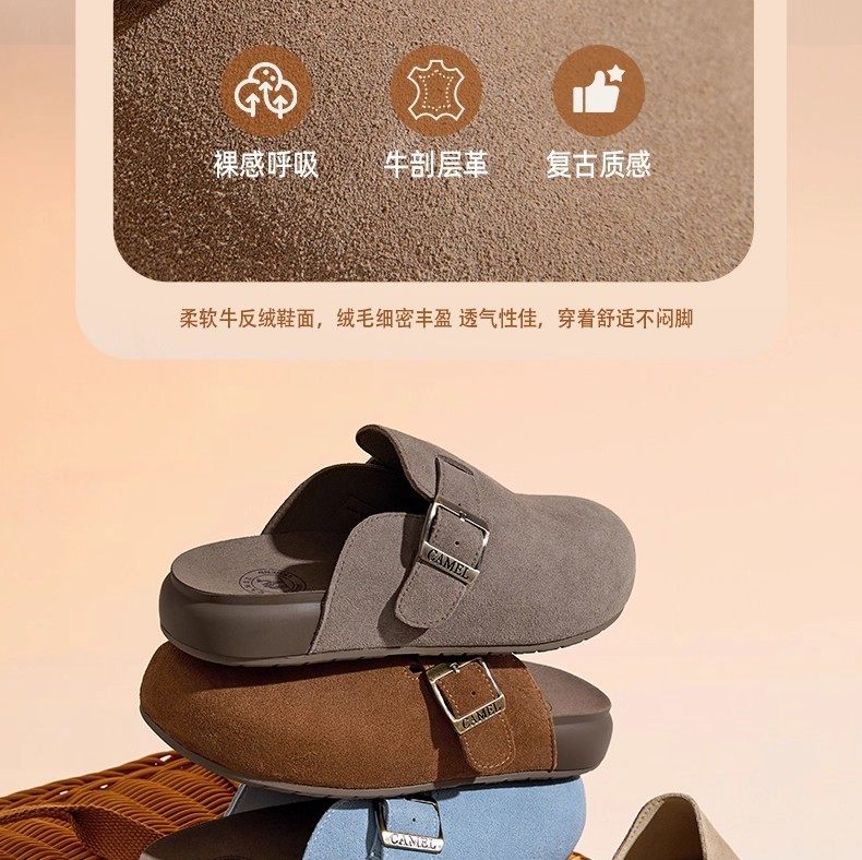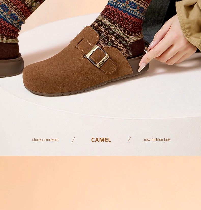 Camel Outdoor Casual Shoes 2025 New Thick-Soled Birkenstock Shoes for Women, Retro Slip-On Loafers, Closed-Toe Half Slippers