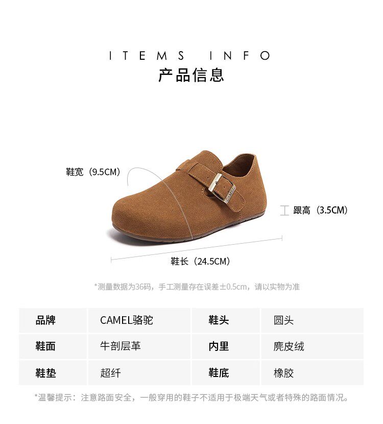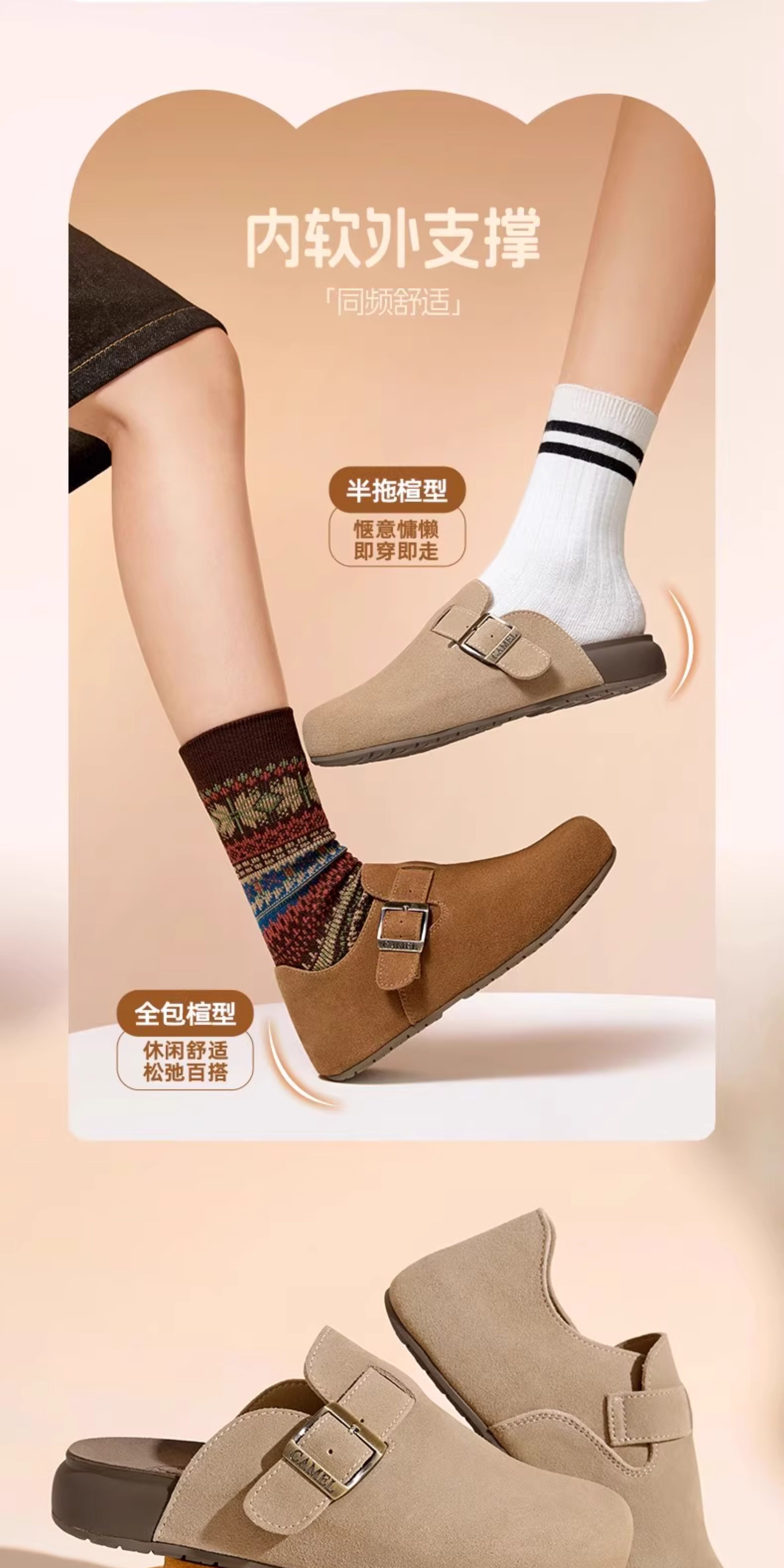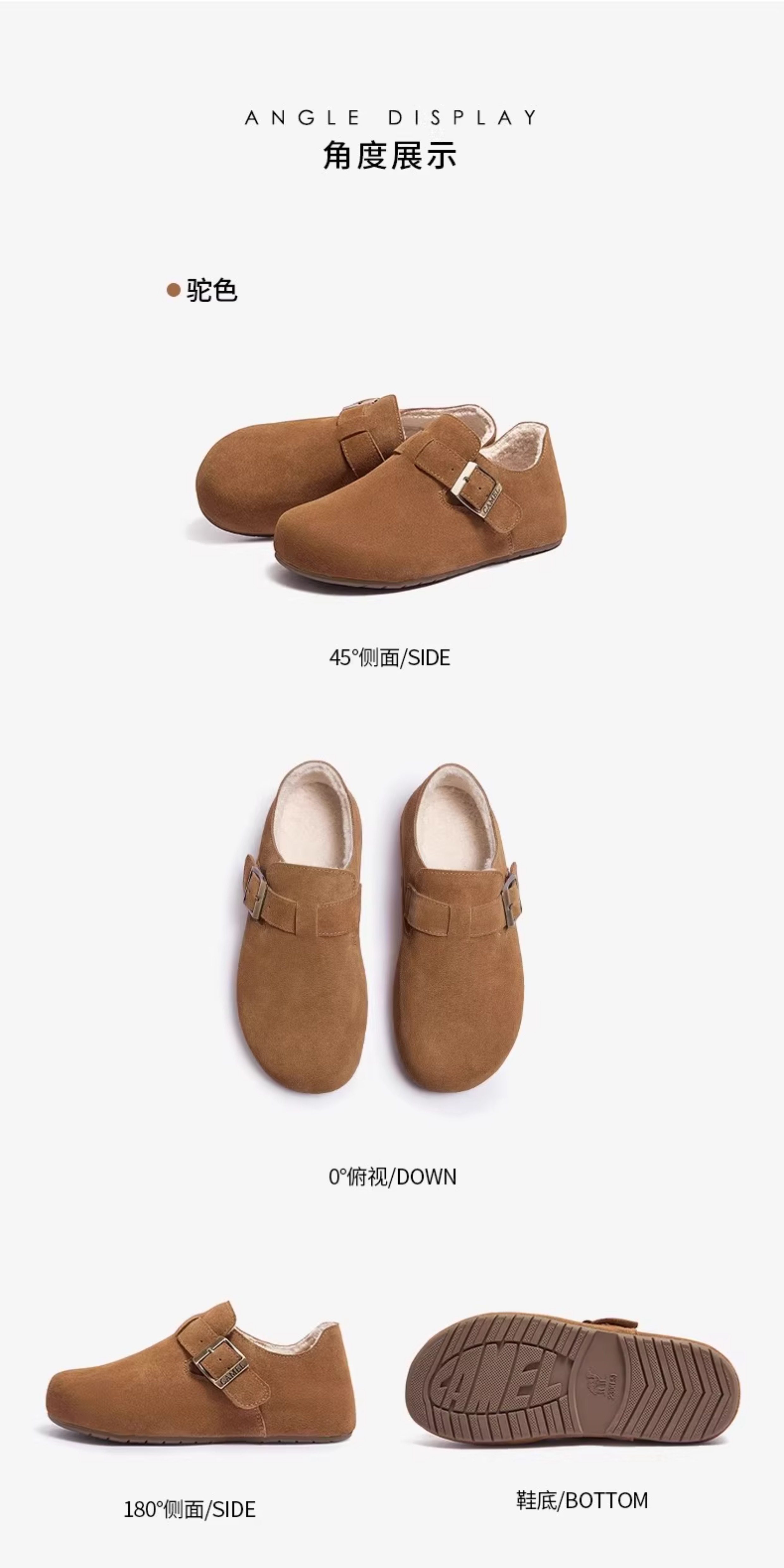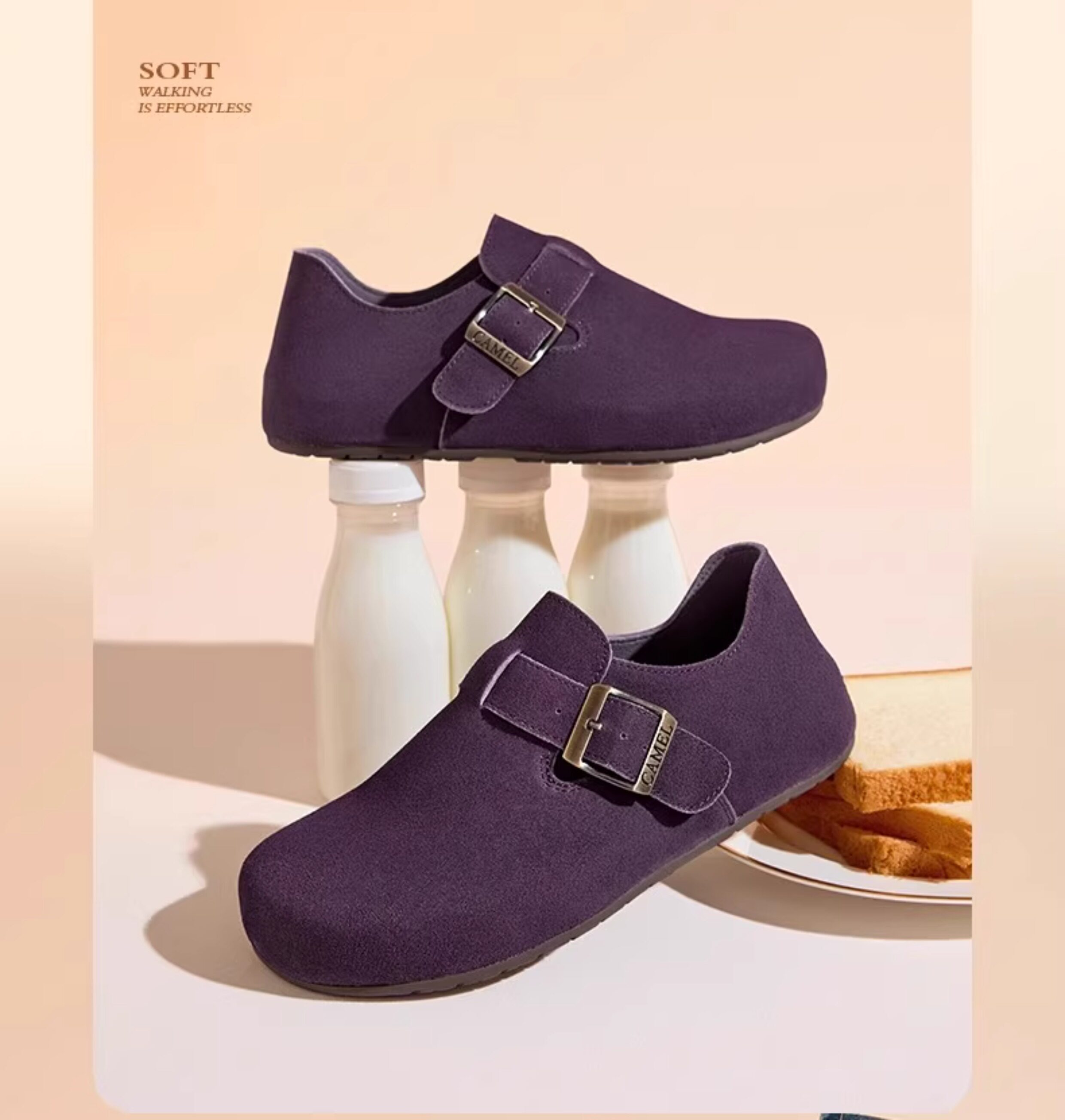 Camel Outdoor Casual Shoes 2025 New Thick-Soled Birkenstock Shoes for Women, Retro Slip-On Loafers, Closed-Toe Half Slippers