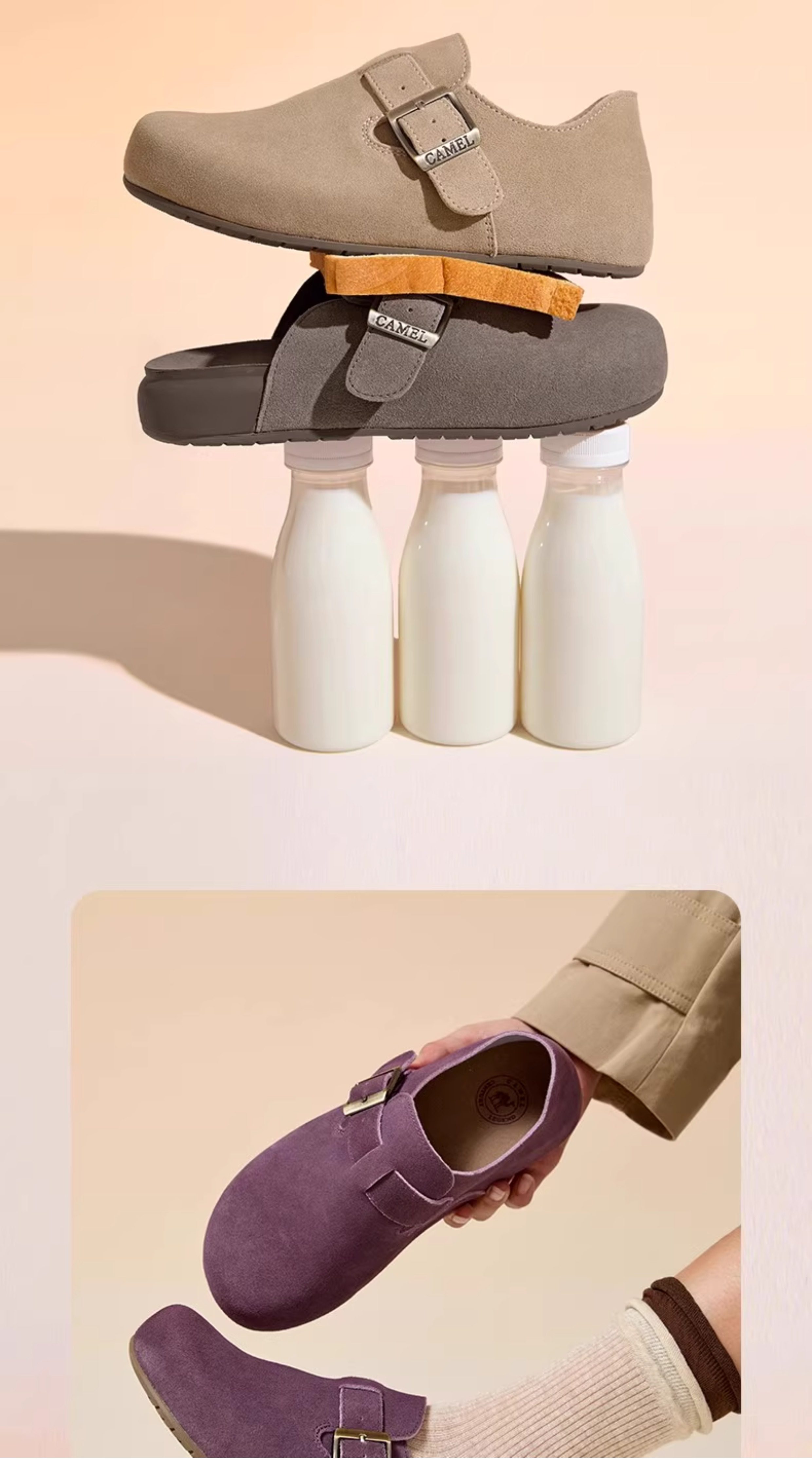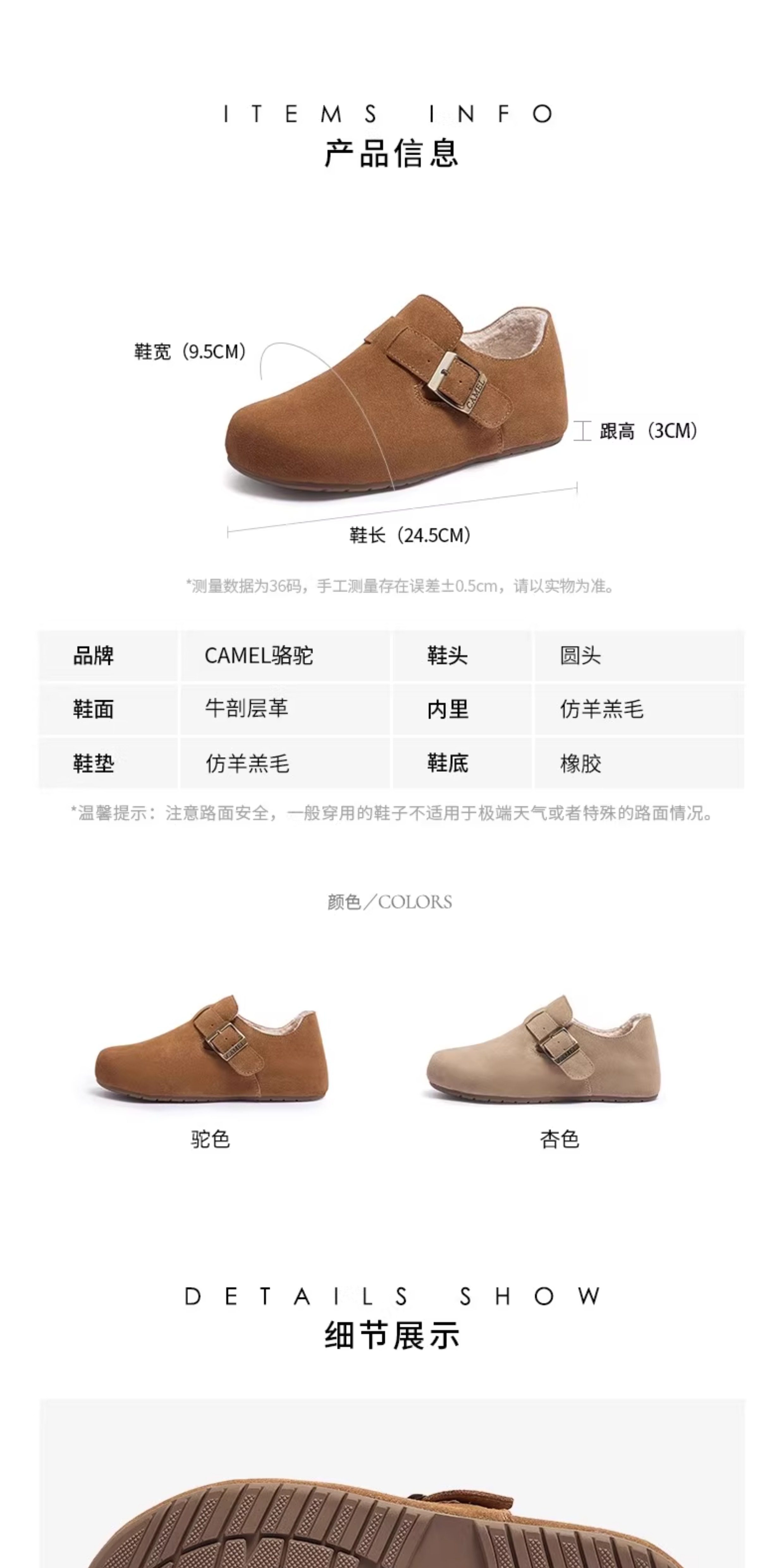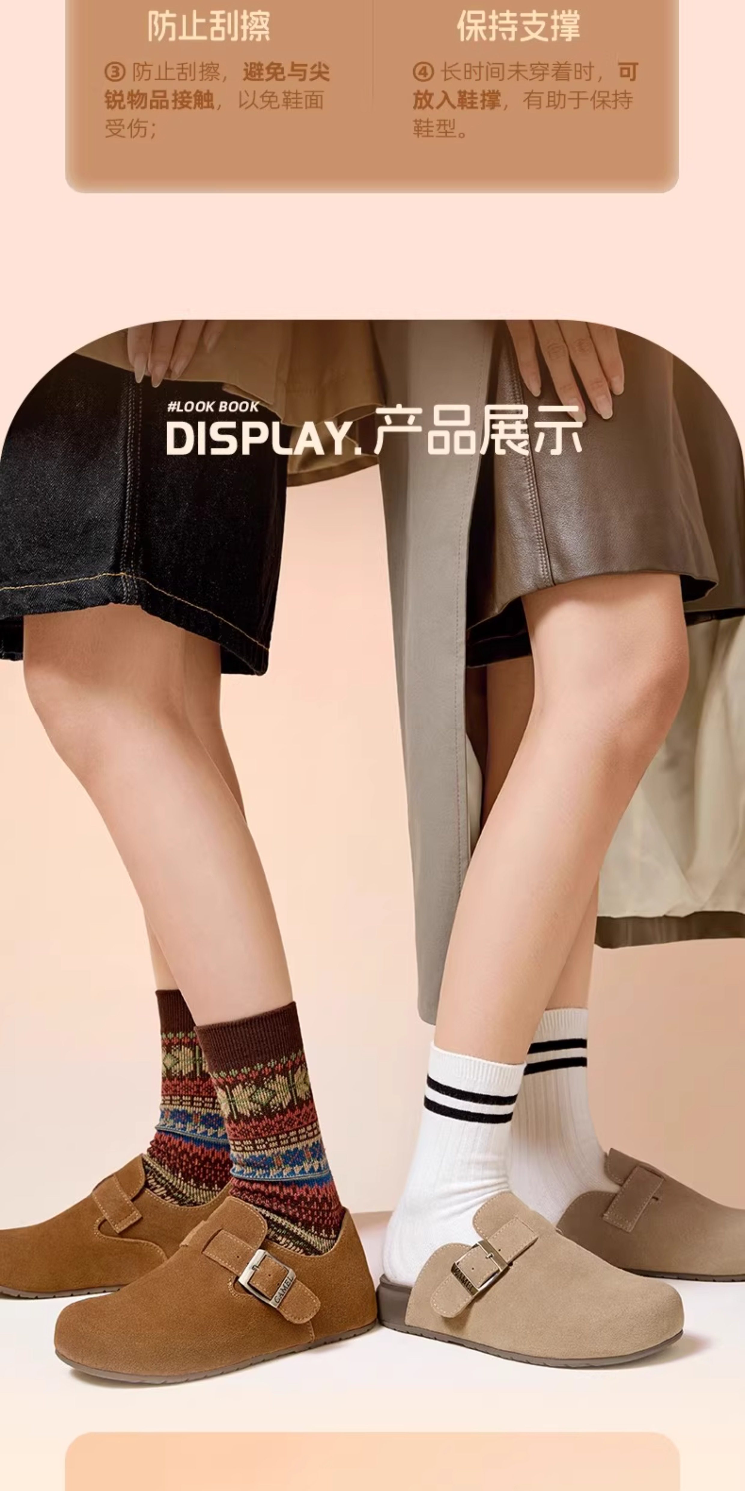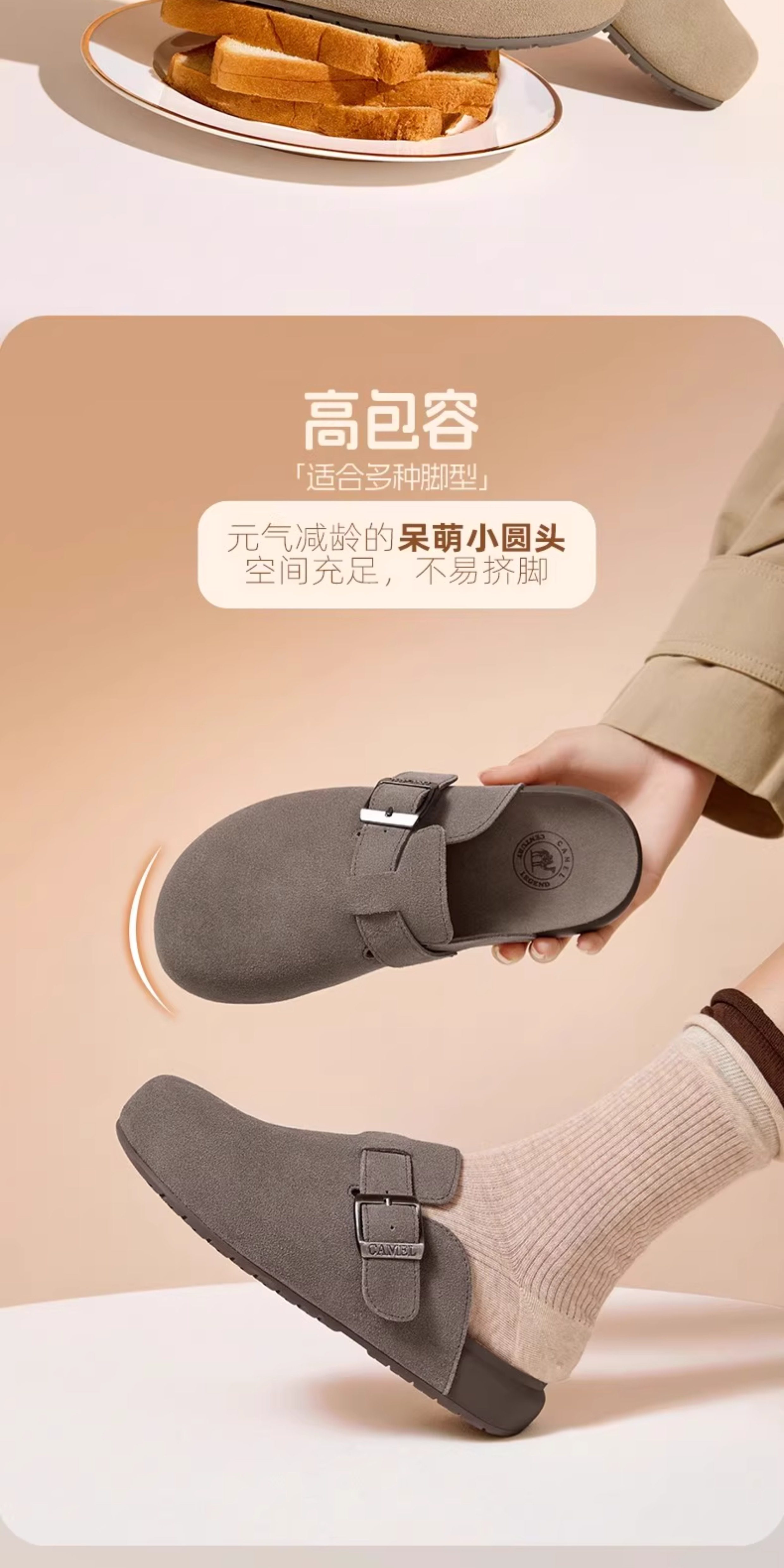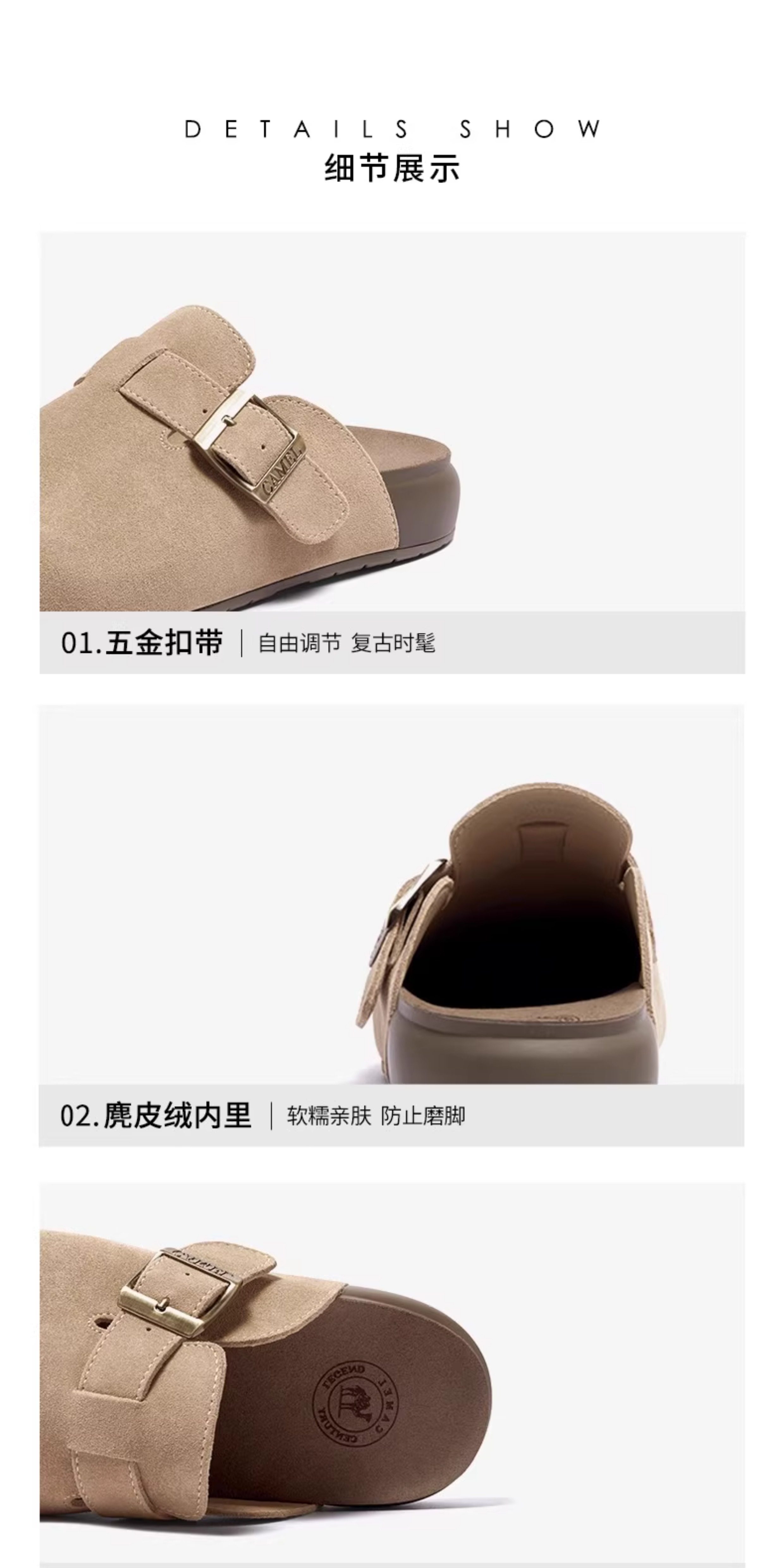Camel Outdoor Casual Shoes 2025 New Thick-Soled Birkenstock Shoes for Women, Retro Slip-On Loafers, Closed-Toe Half Slippers