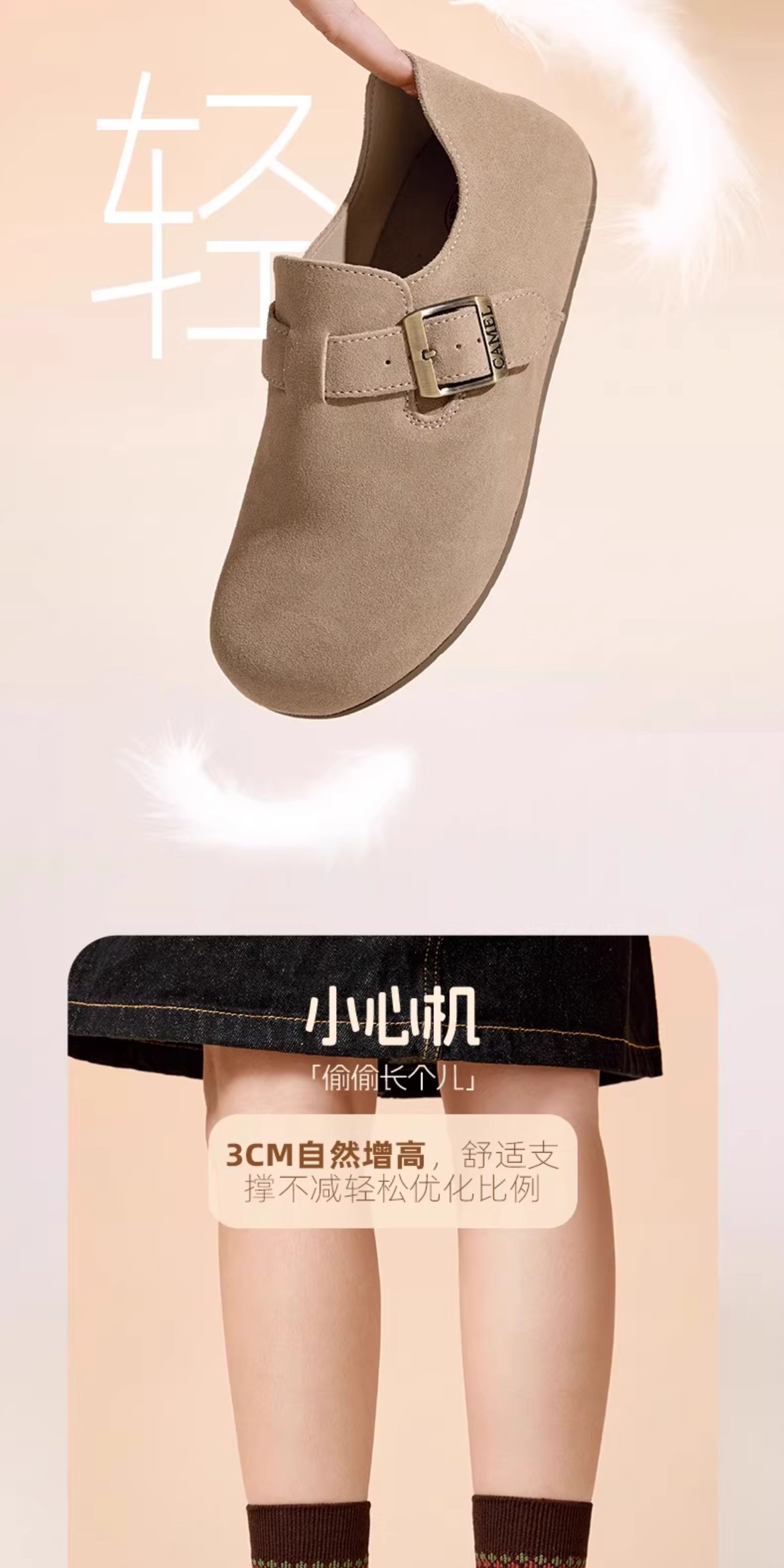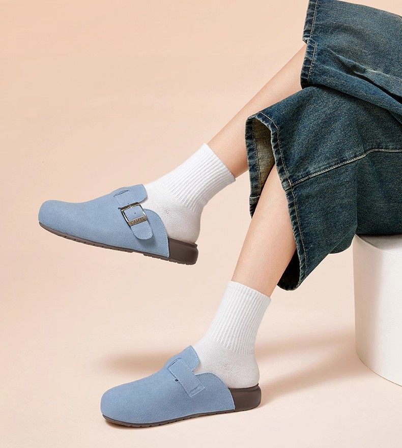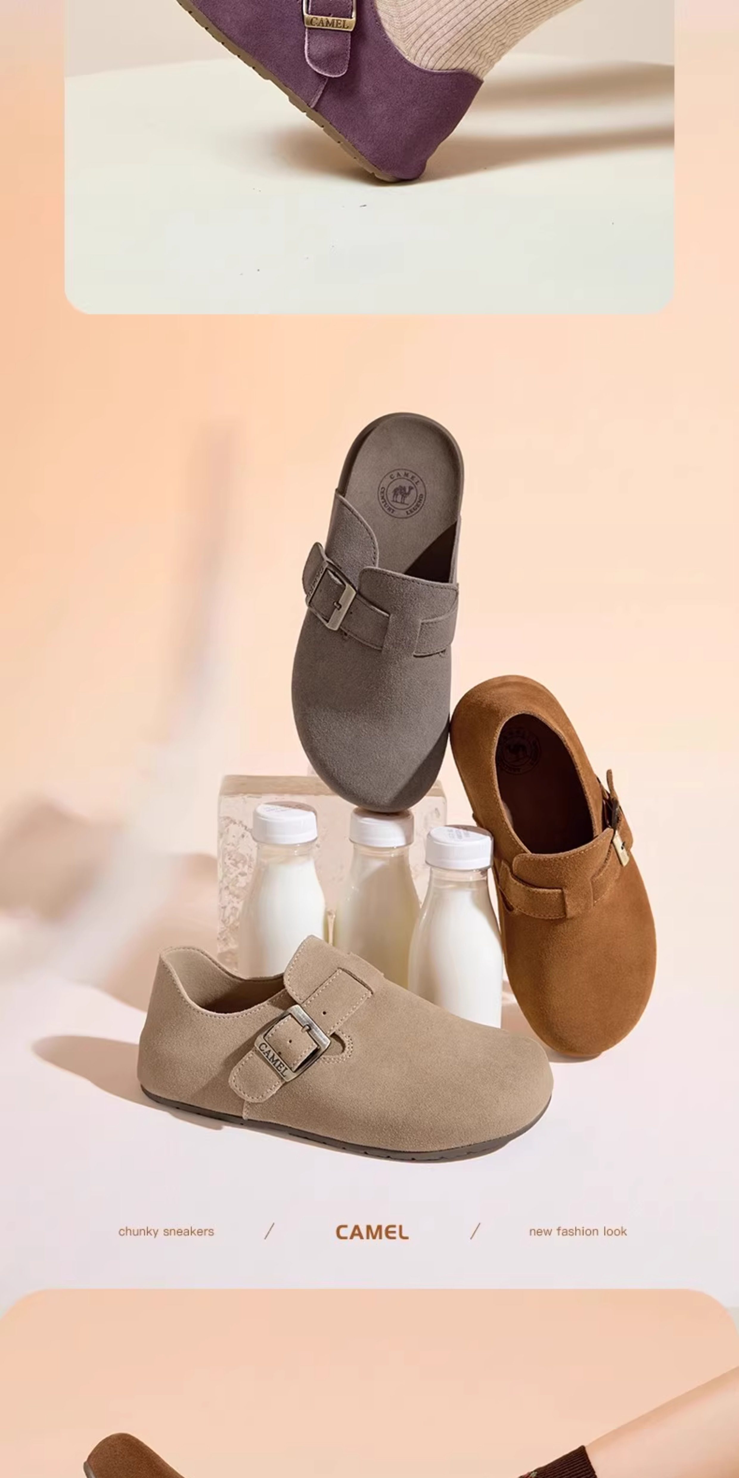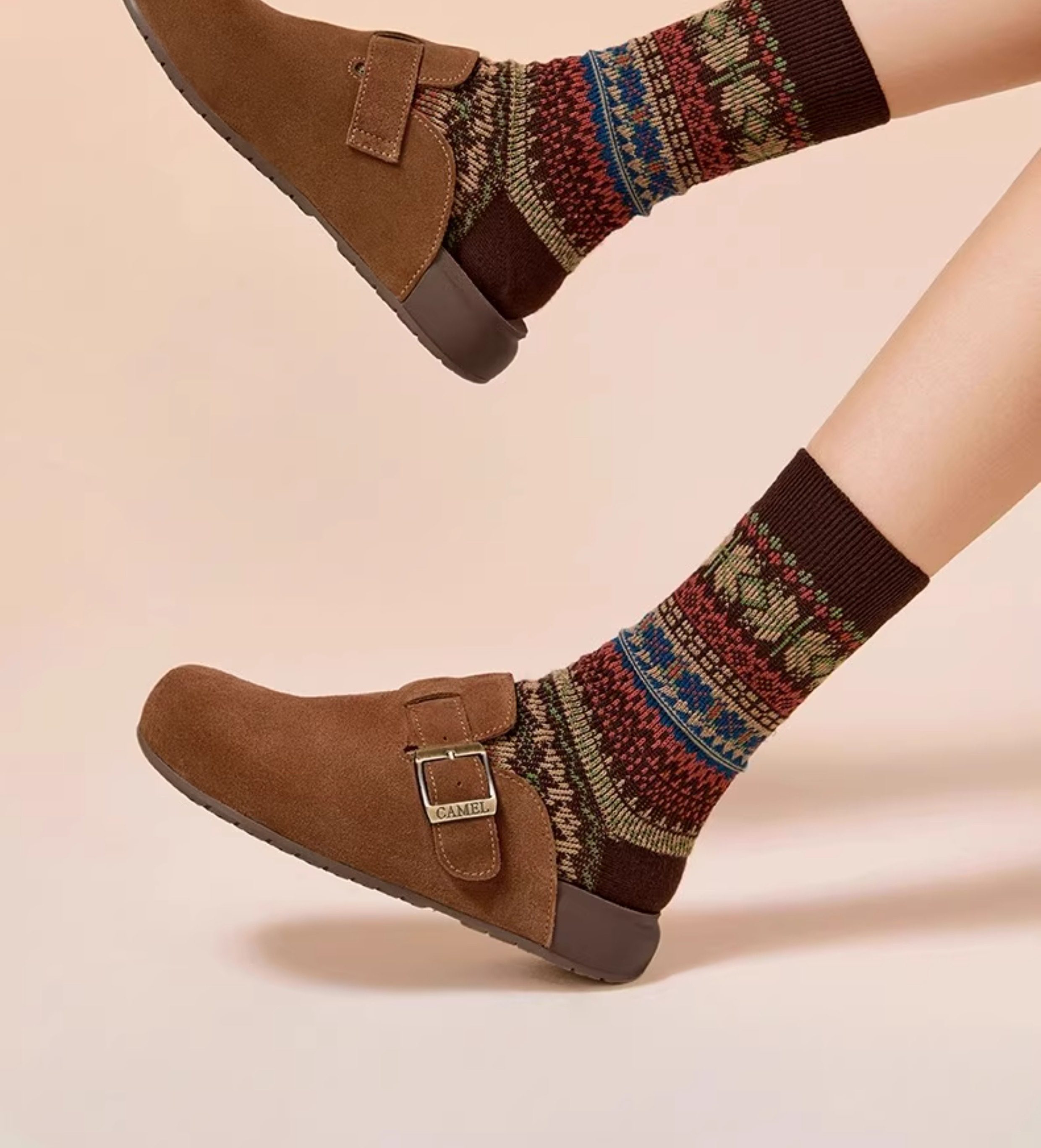 Camel Outdoor Casual Shoes 2025 New Thick-Soled Birkenstock Shoes for Women, Retro Slip-On Loafers, Closed-Toe Half Slippers