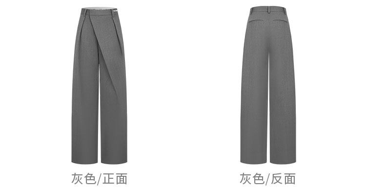 Ann Andelman Simple Commuter Casual Pants with Front Cross-Over Design, Straight Loose-Fitting Elegant Dress Pants