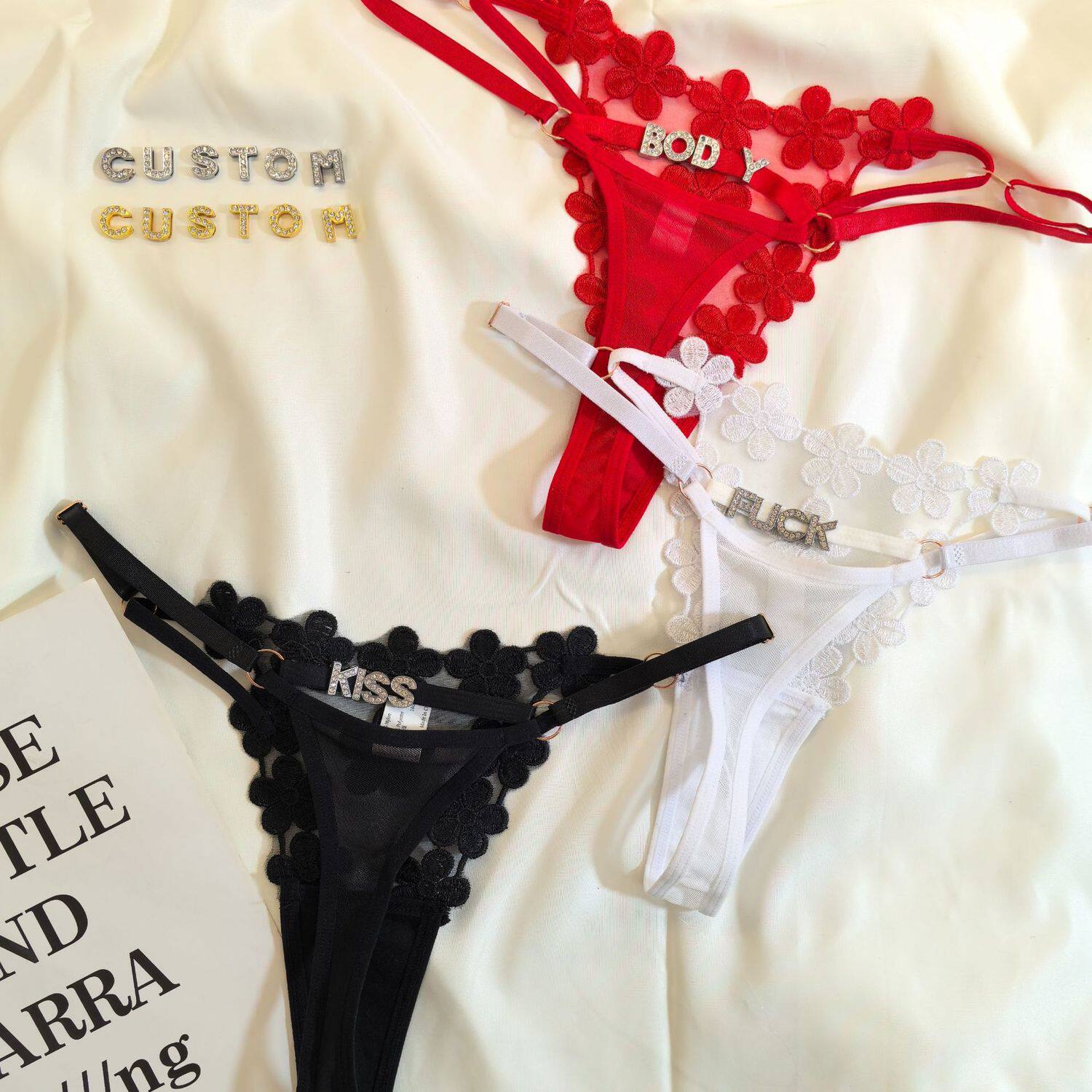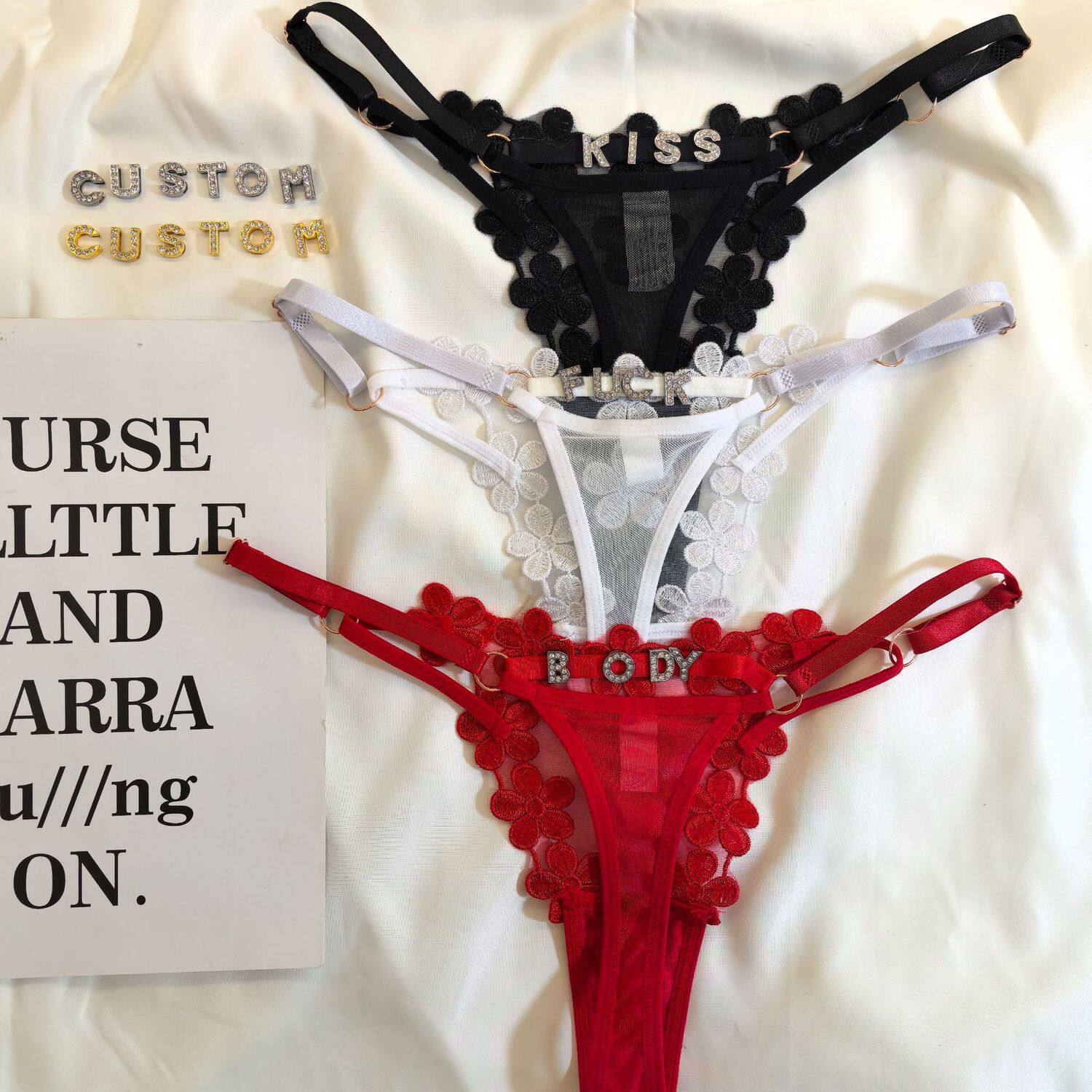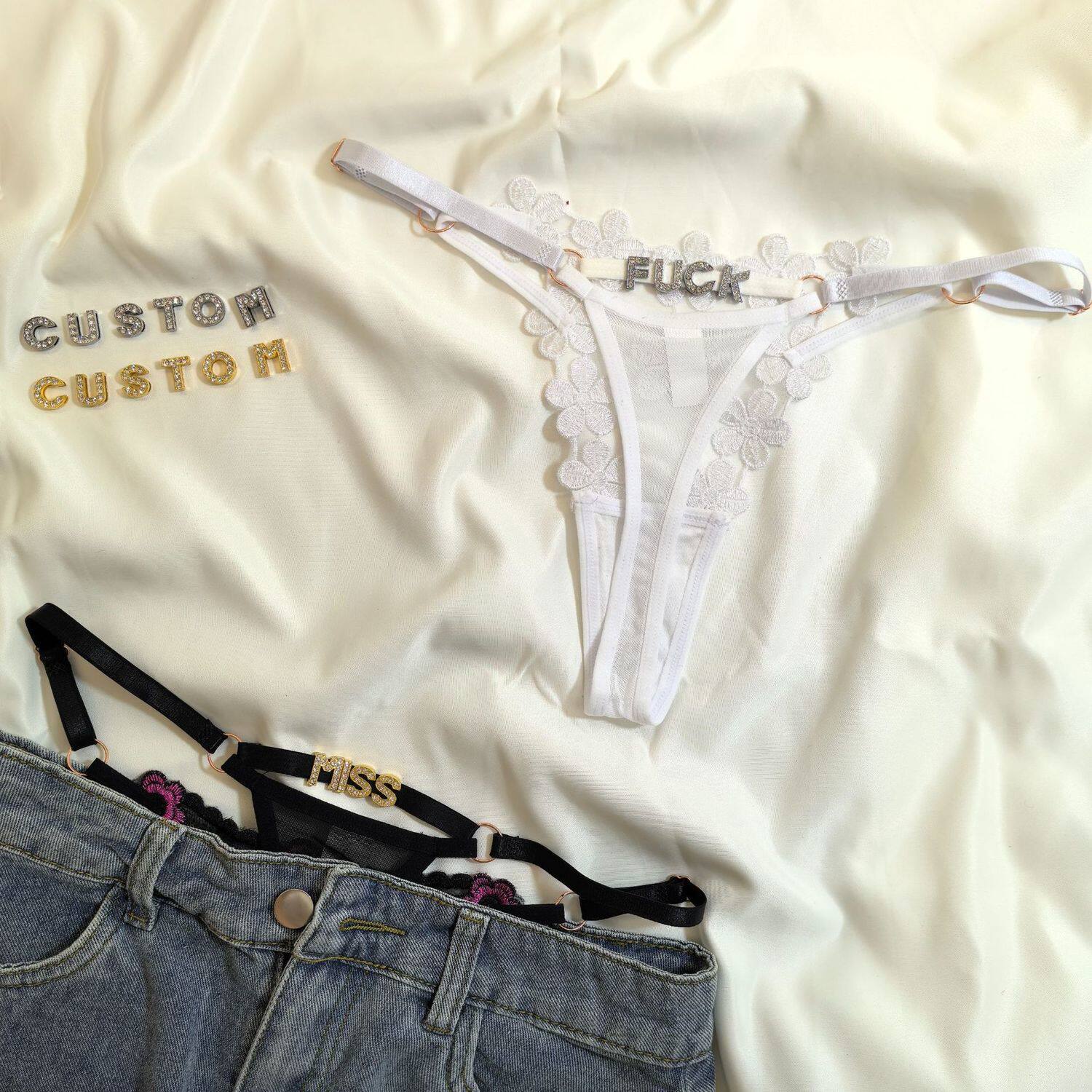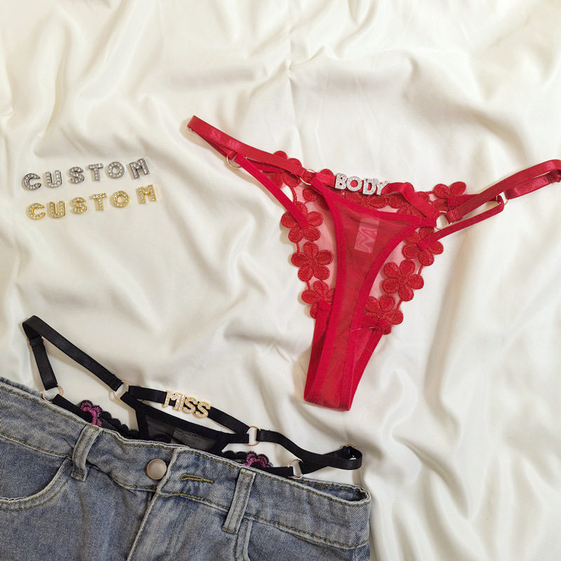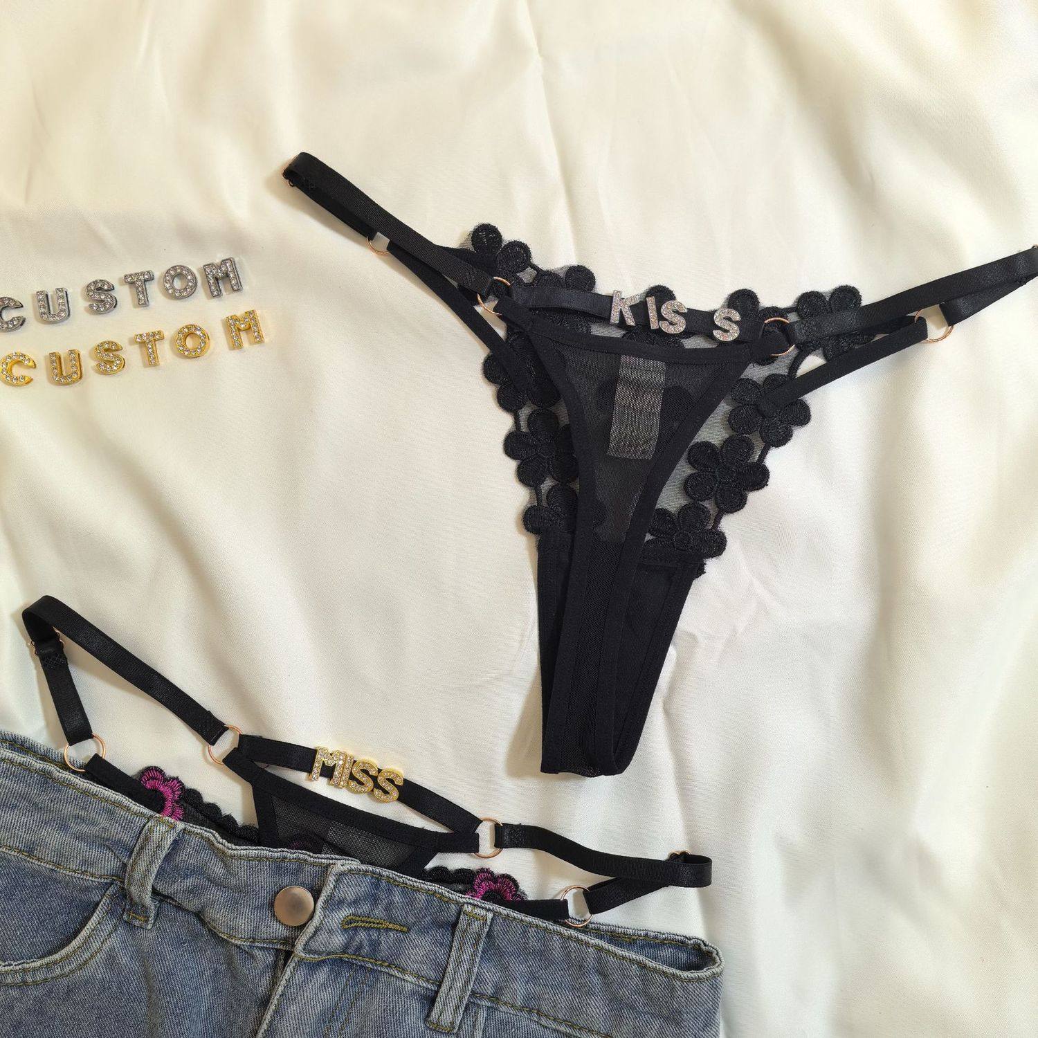 Customized Letter DIY Sexy Underwear for Women, Adjustable Size, Diamond-Embellished Letters, Sexy Thong for Women, Hot Girl Shorts