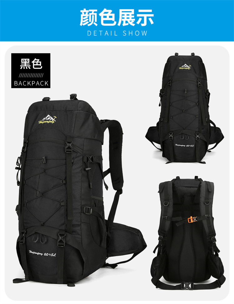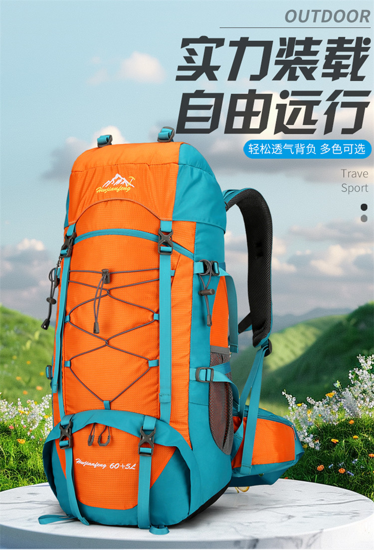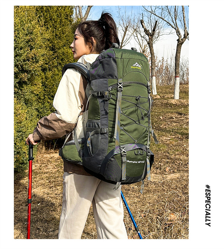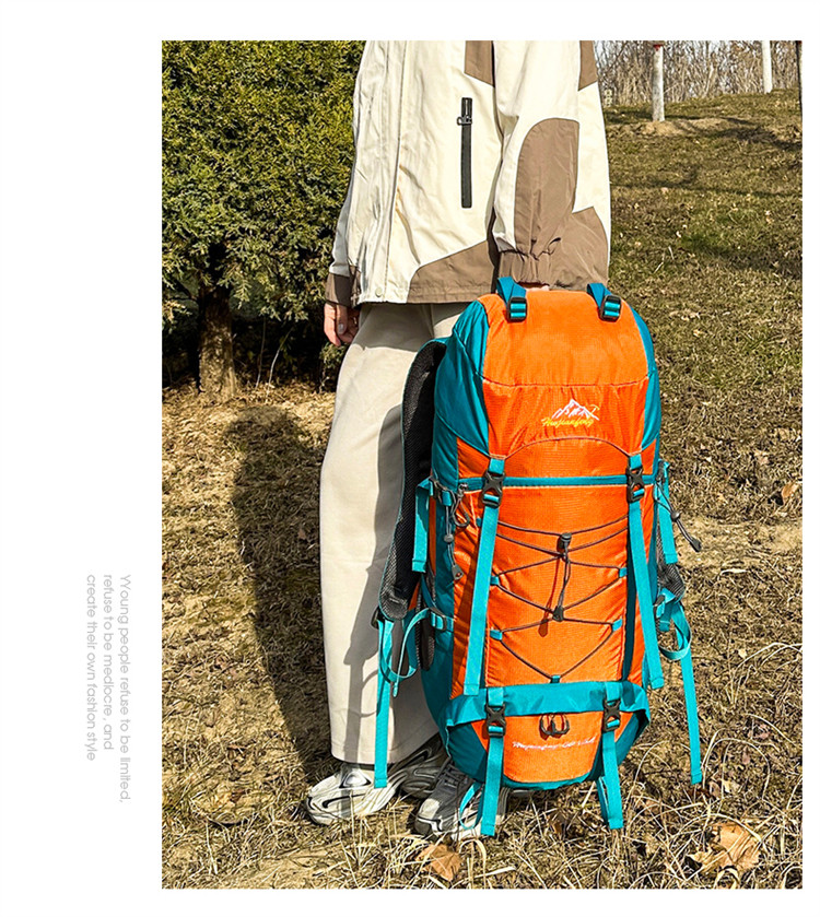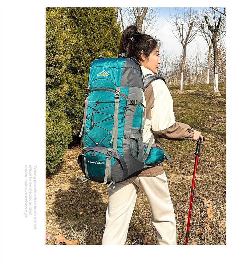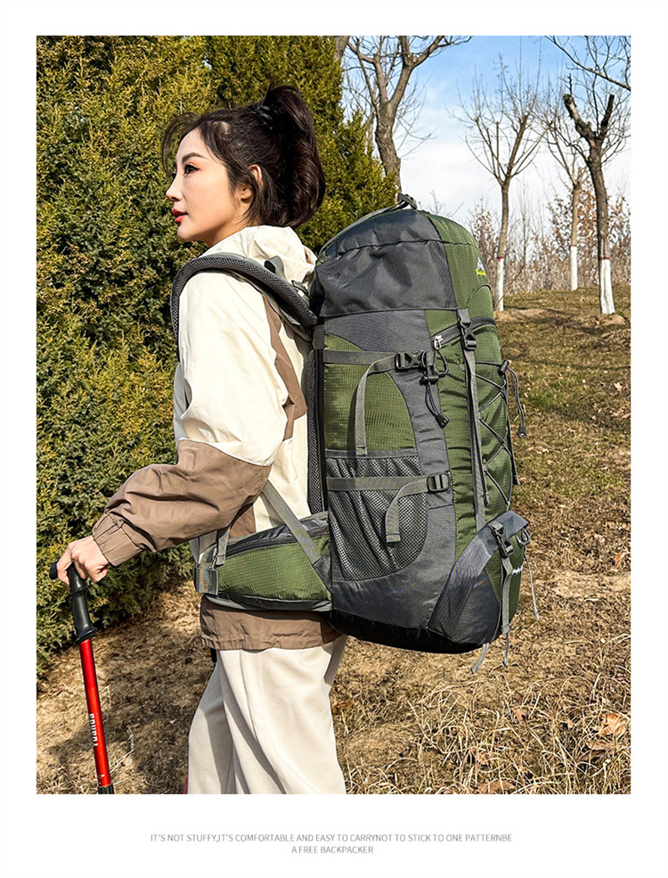 New Outdoor Mountaineering Bag for Men, 65L Large Capacity, Lightweight, Waterproof, Professional Hiking, Camping and Travel Backpack for Women