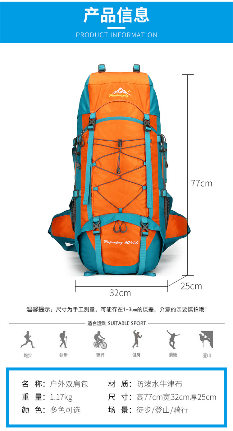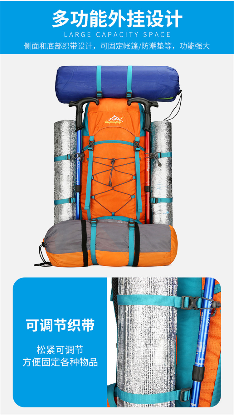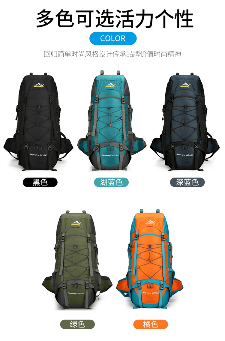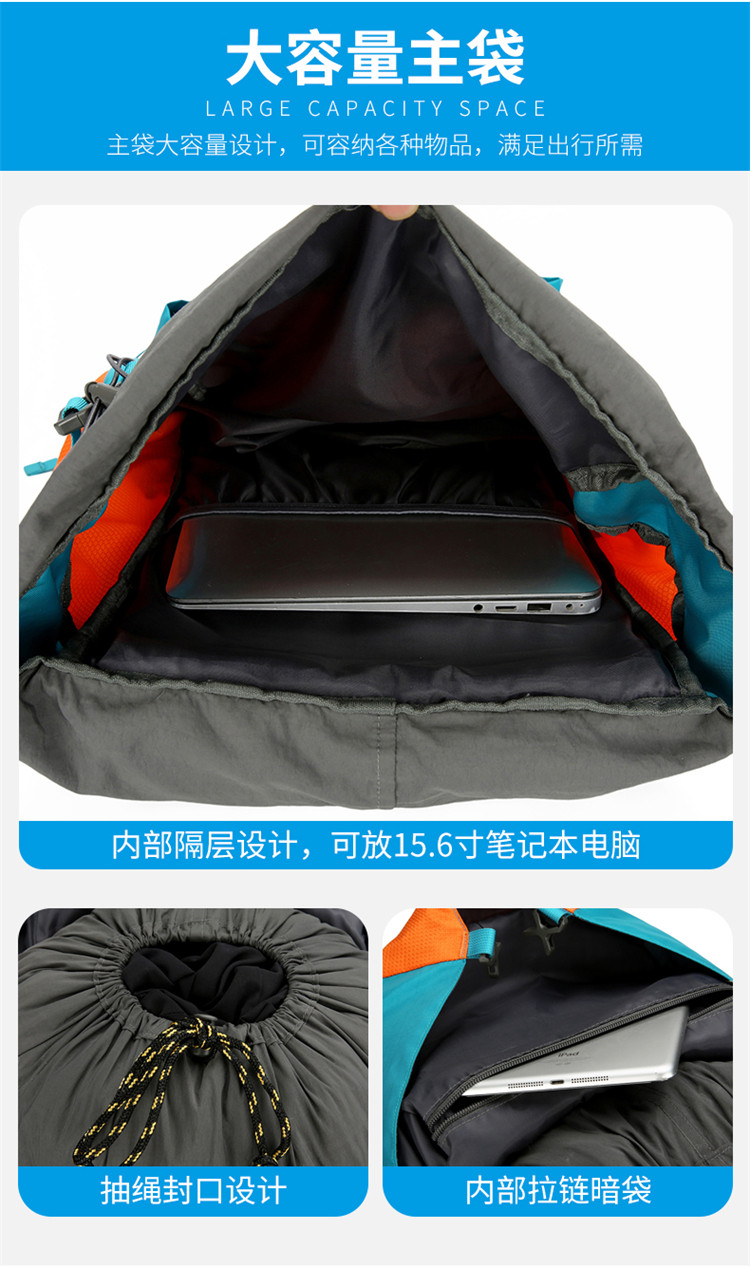 New Outdoor Mountaineering Bag for Men, 65L Large Capacity, Lightweight, Waterproof, Professional Hiking, Camping and Travel Backpack for Women