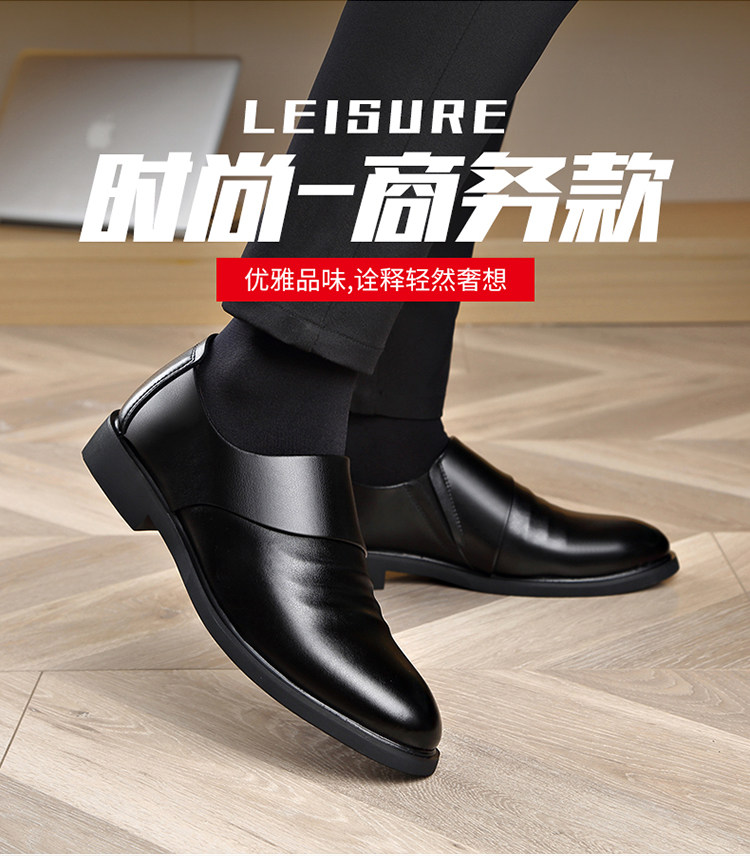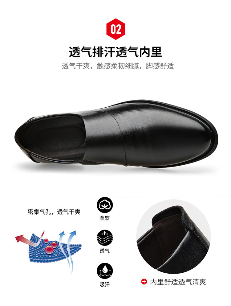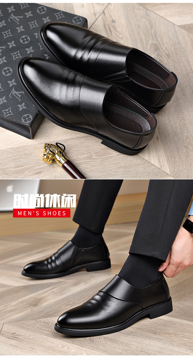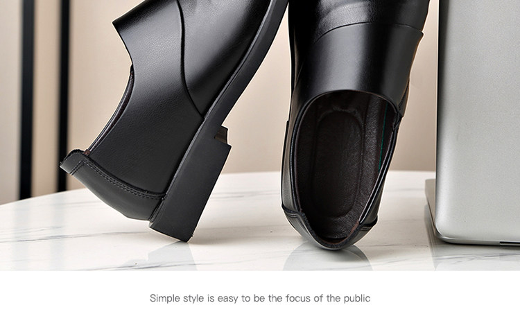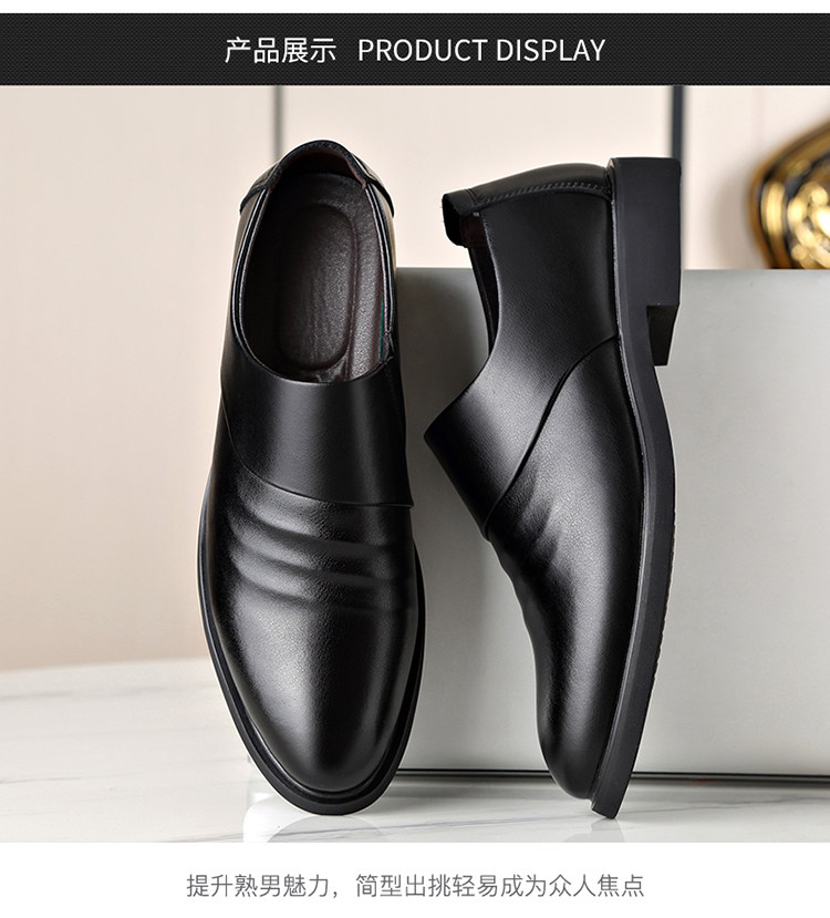 Men's Genuine Leather Shoes for Winter, Fleece-Lined for Warmth, Casual Business Formal Wear, Height-Increasing Slip-On, Black Derby Shoes for Work