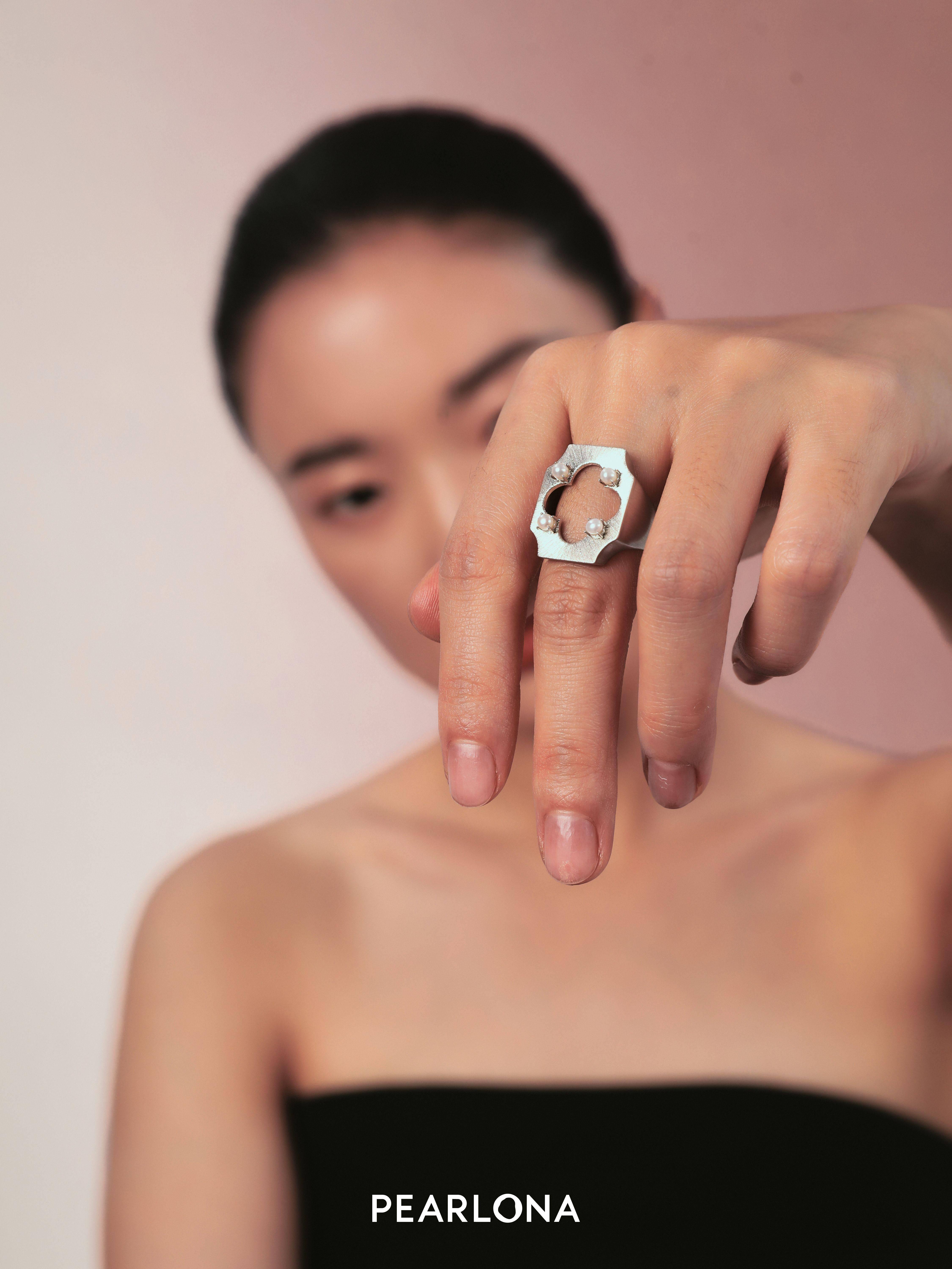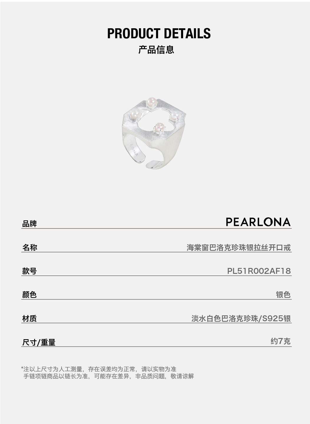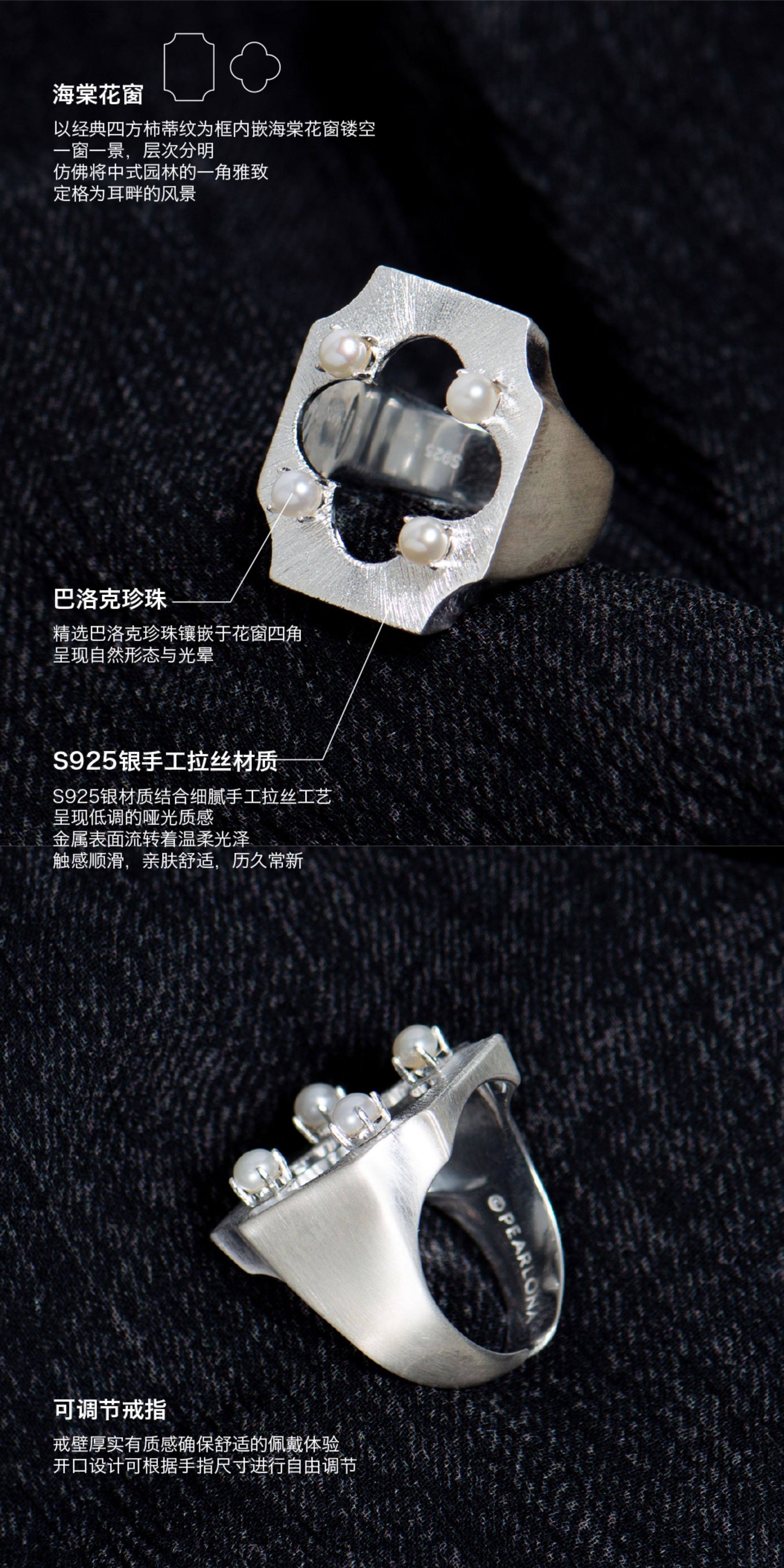 Pearlona Rock Cloud Pine-Begonia Window Baroque Pearl Silver Open Ring New Chinese Style Ring Silver Jewelry