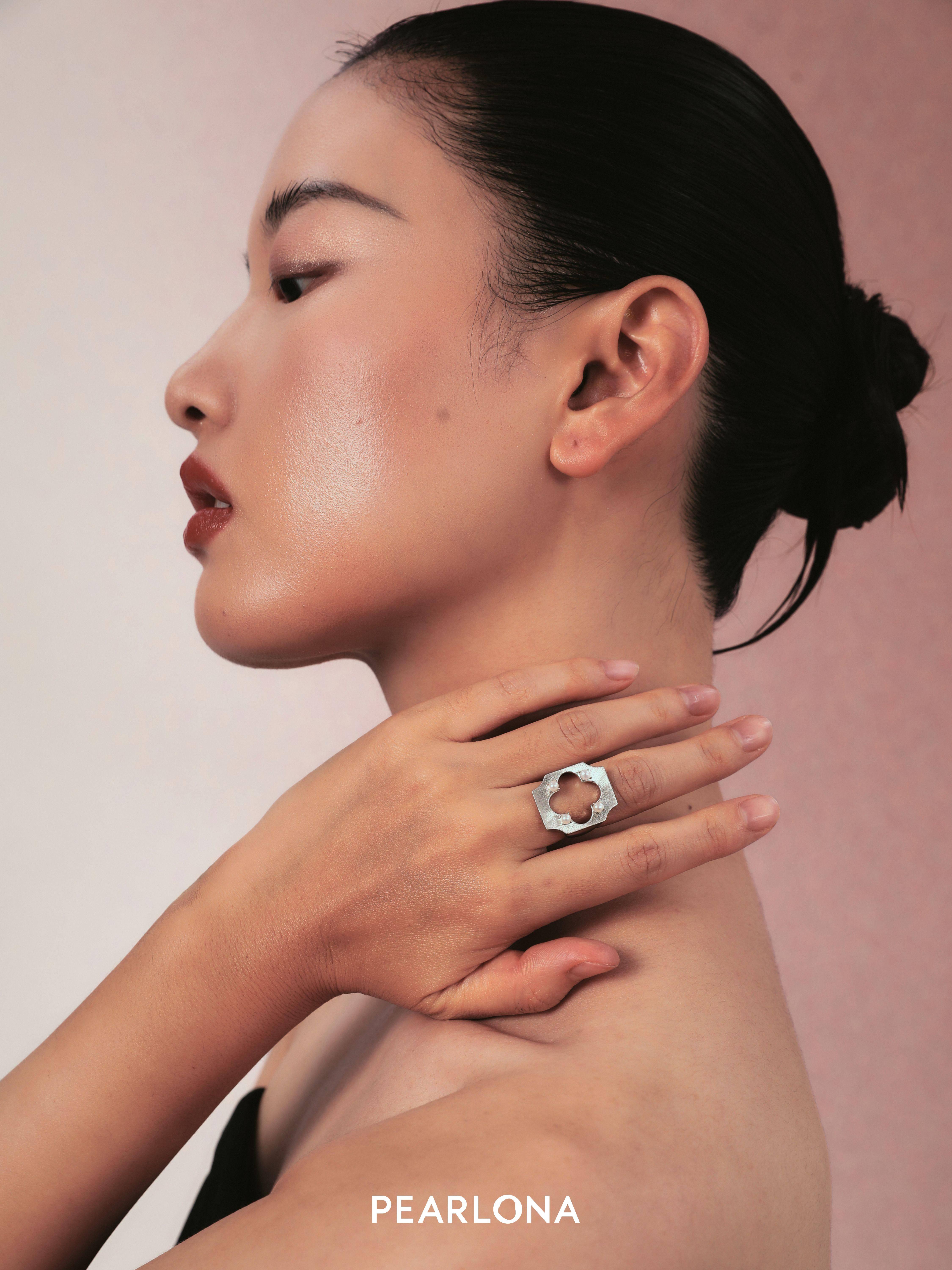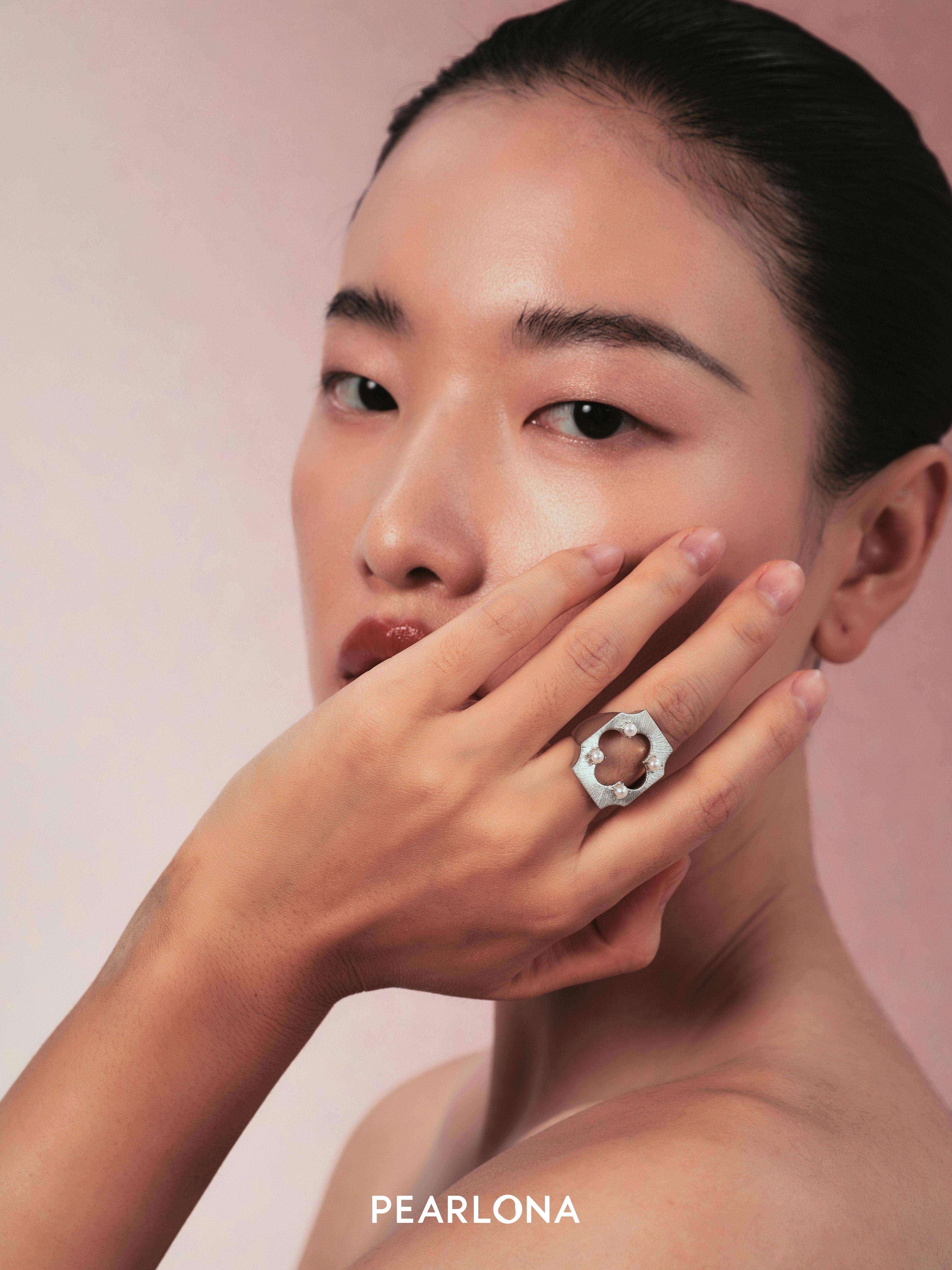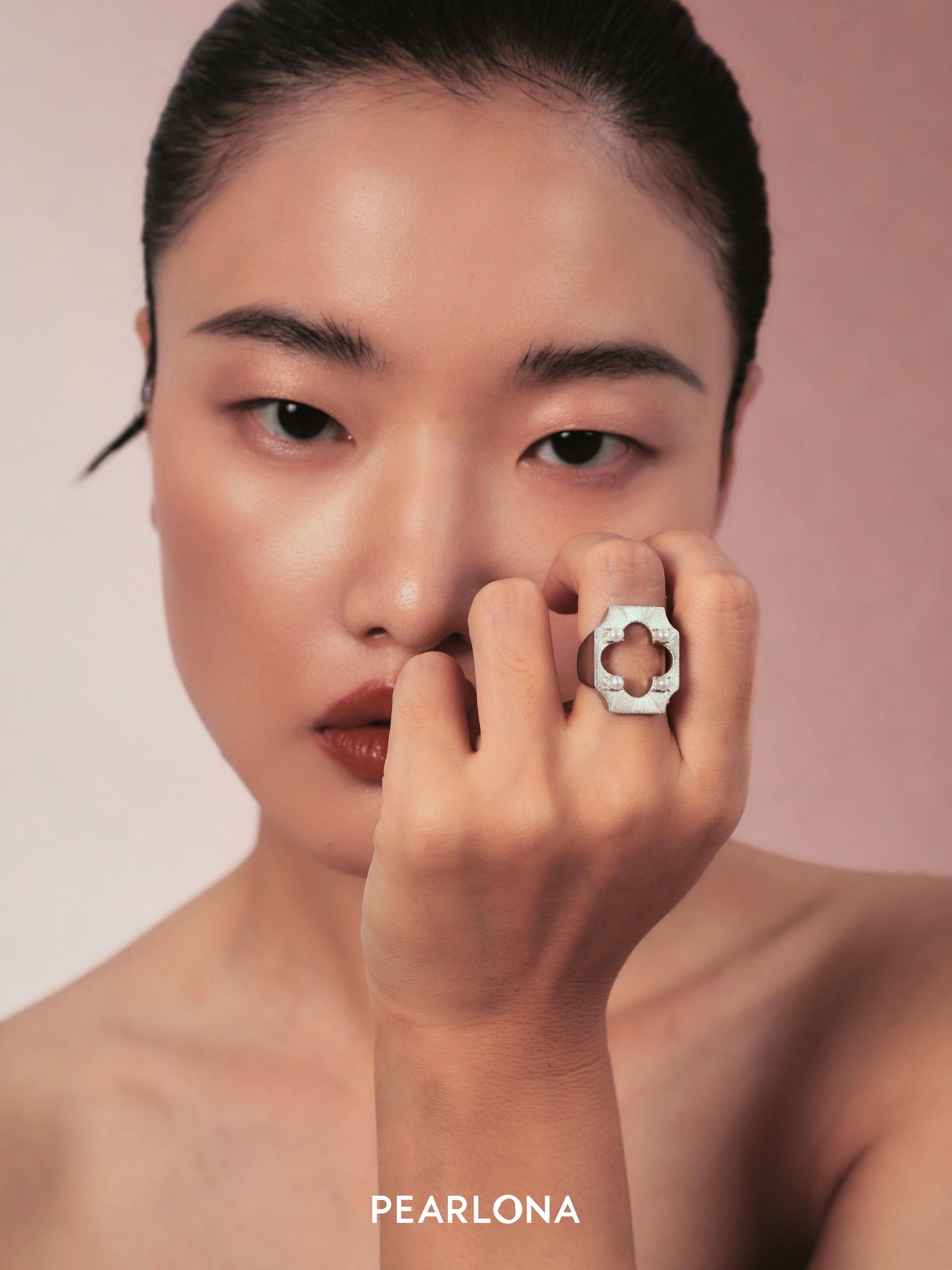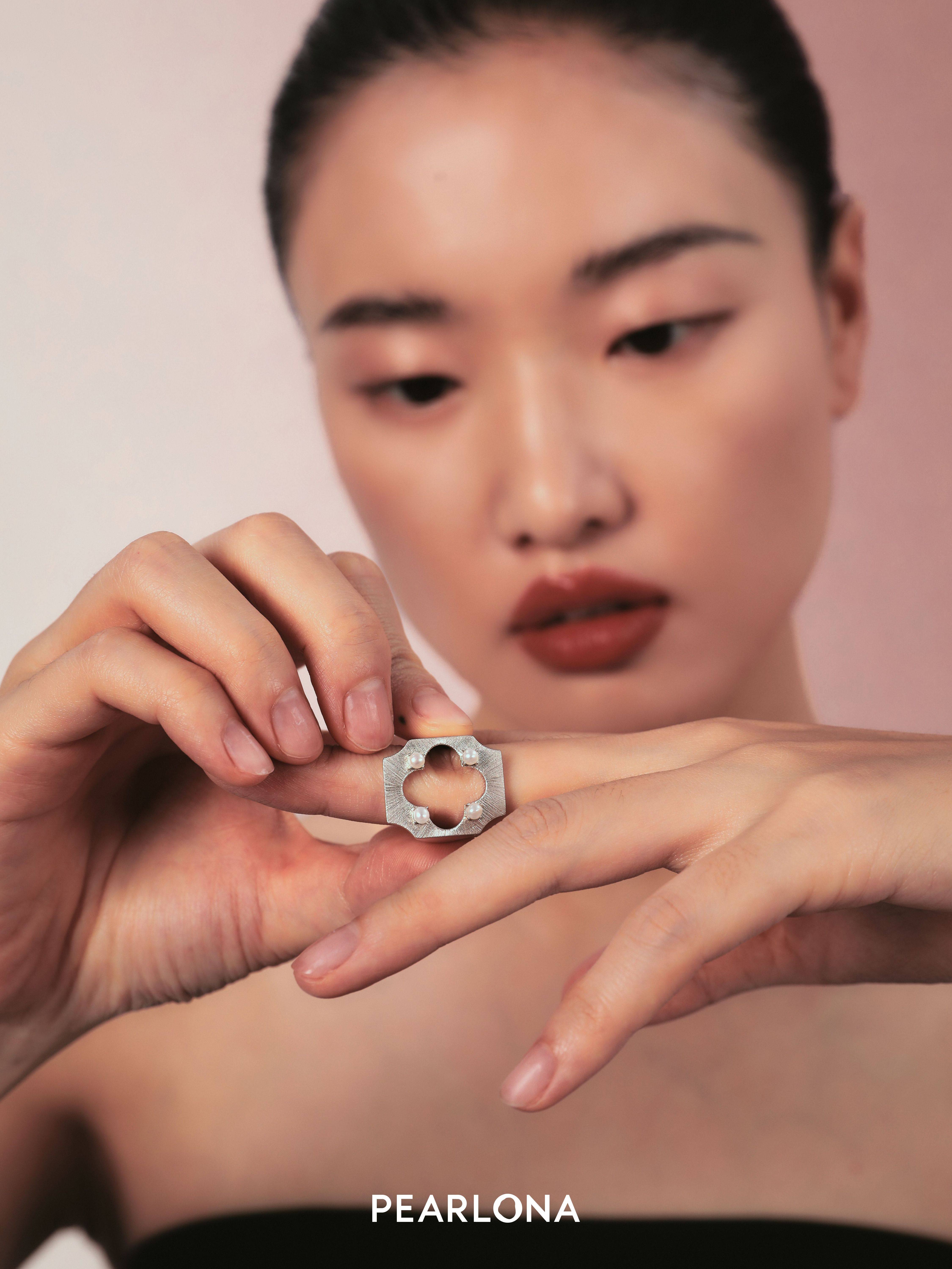 Pearlona Rock Cloud Pine-Begonia Window Baroque Pearl Silver Open Ring New Chinese Style Ring Silver Jewelry