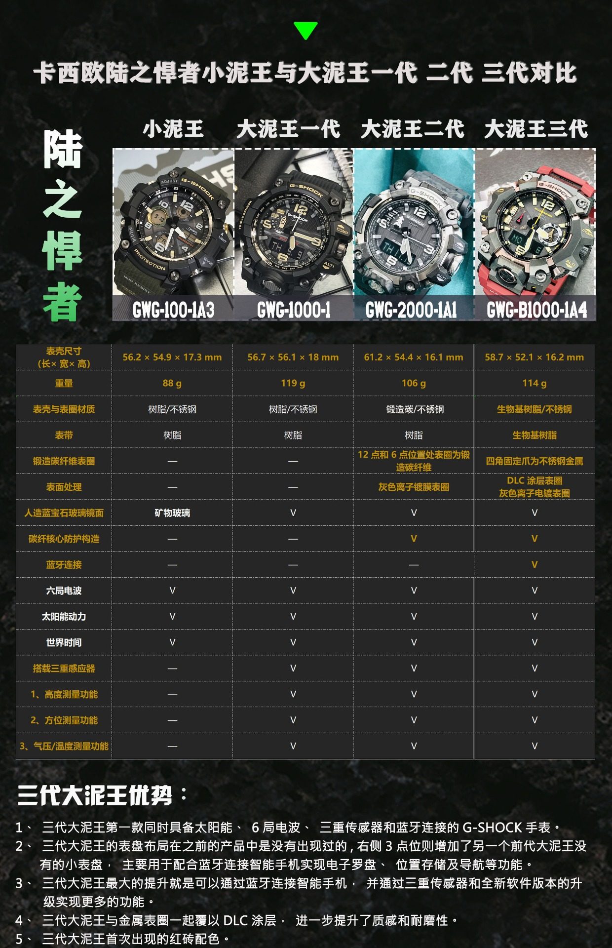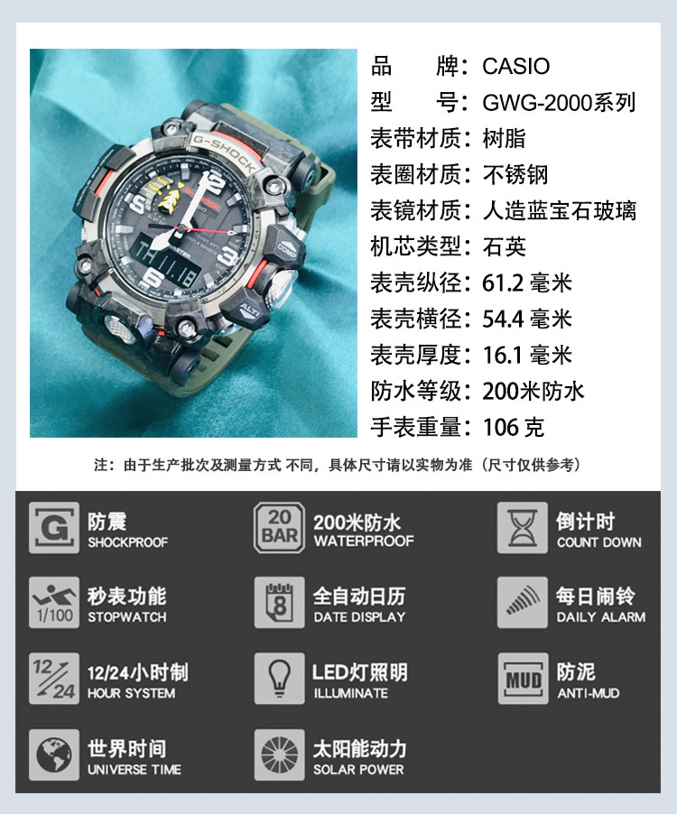 Casio Big Mud King Third Generation Gshock Solar Radio Bluetooth Watch for Men Gwg-B1000 Gwg2000