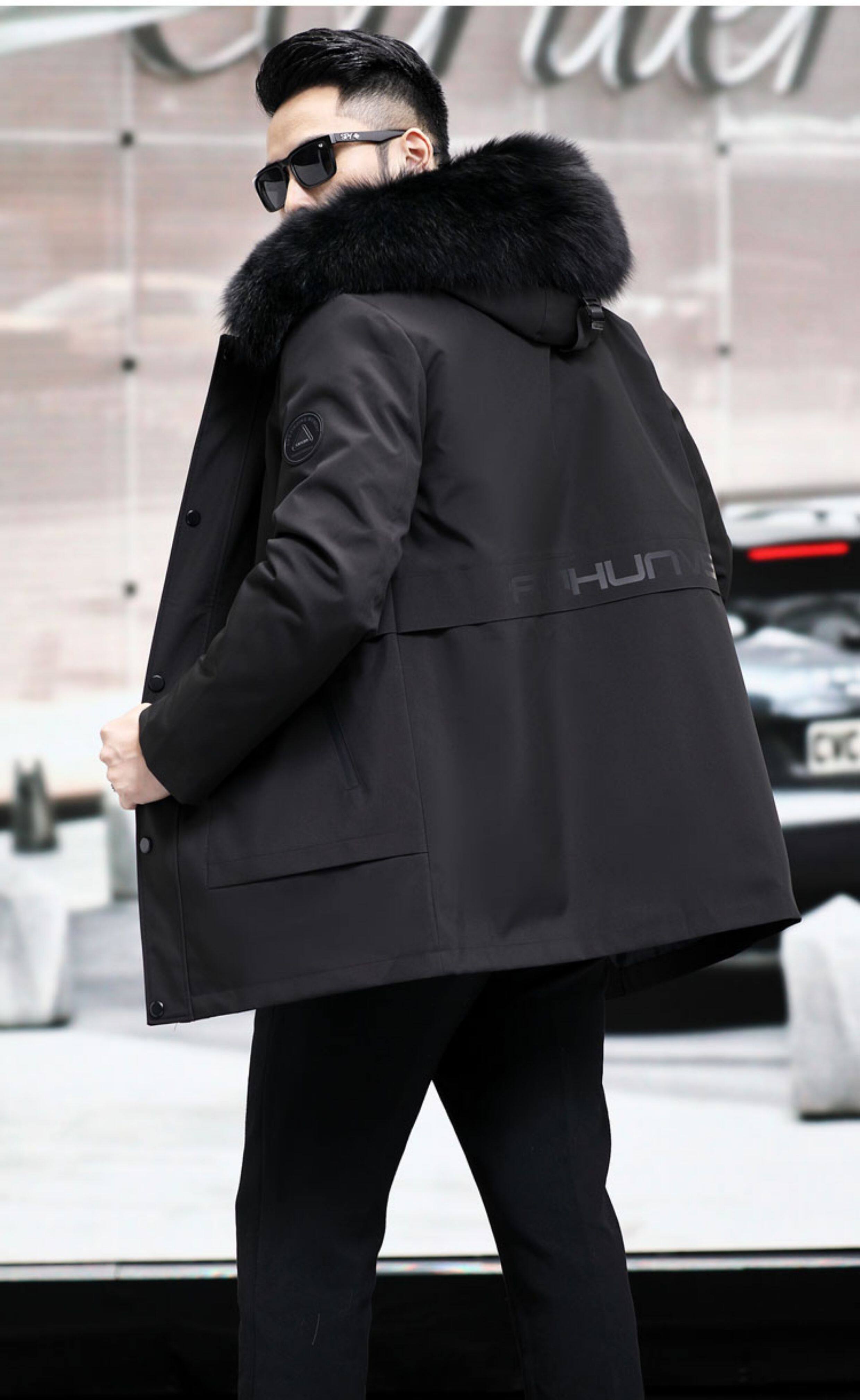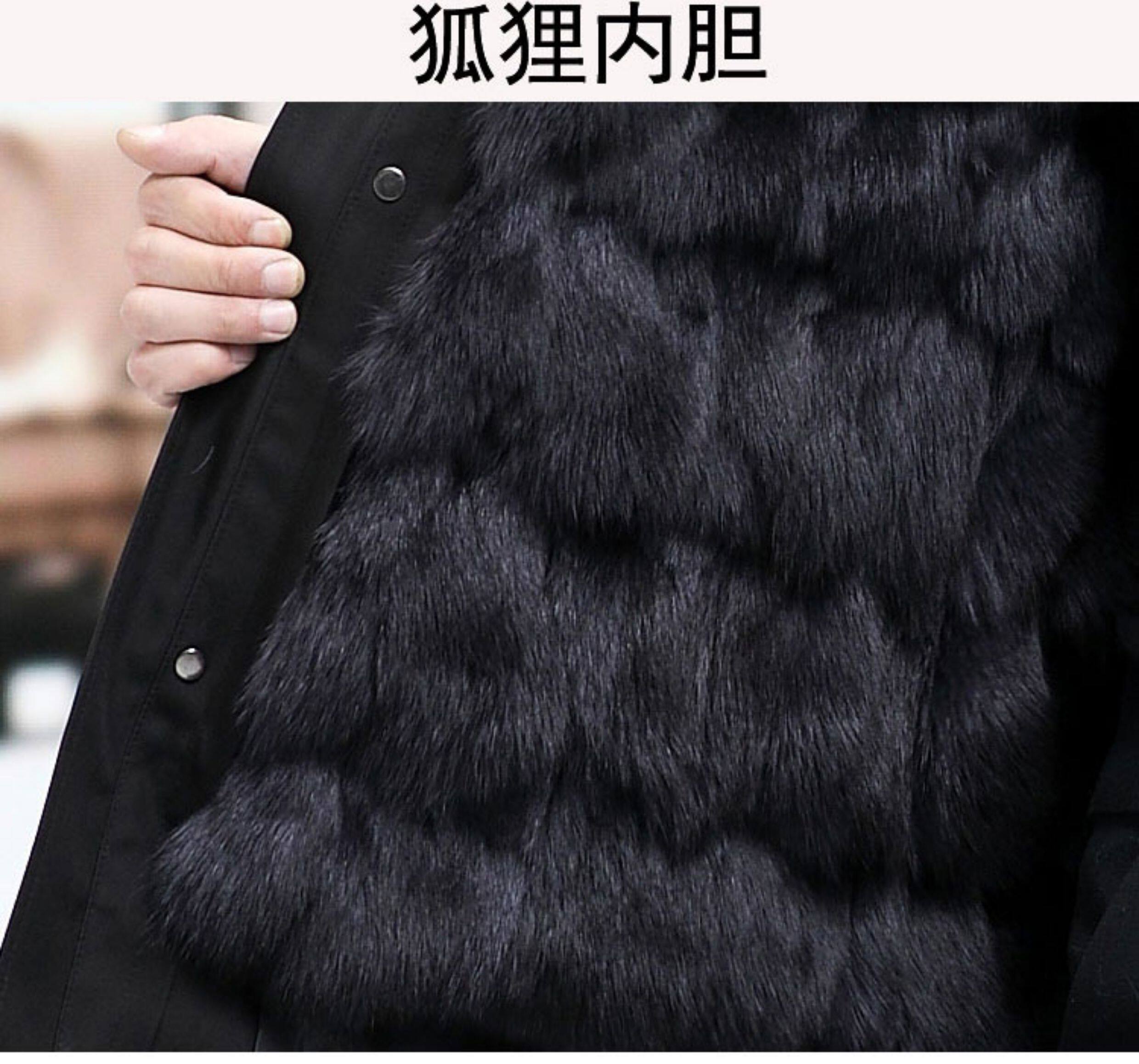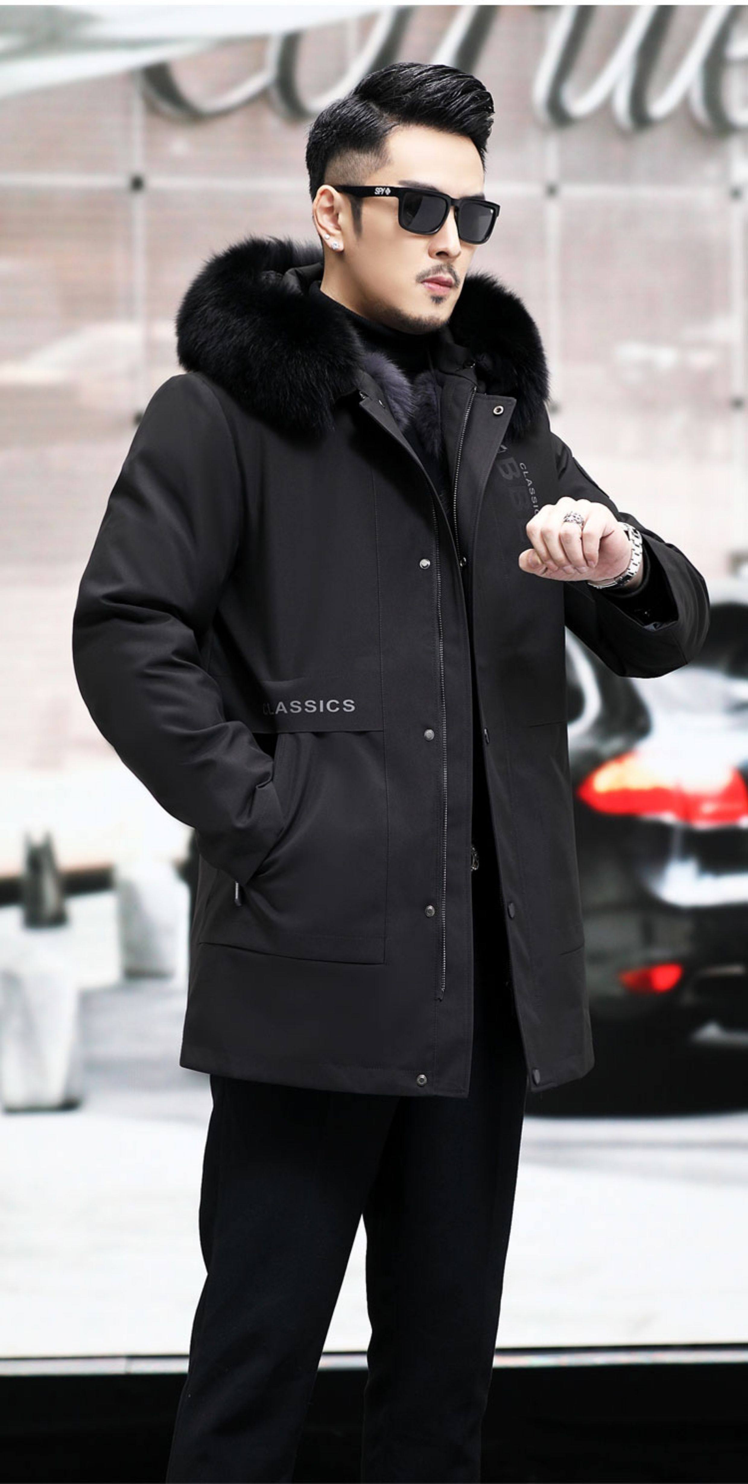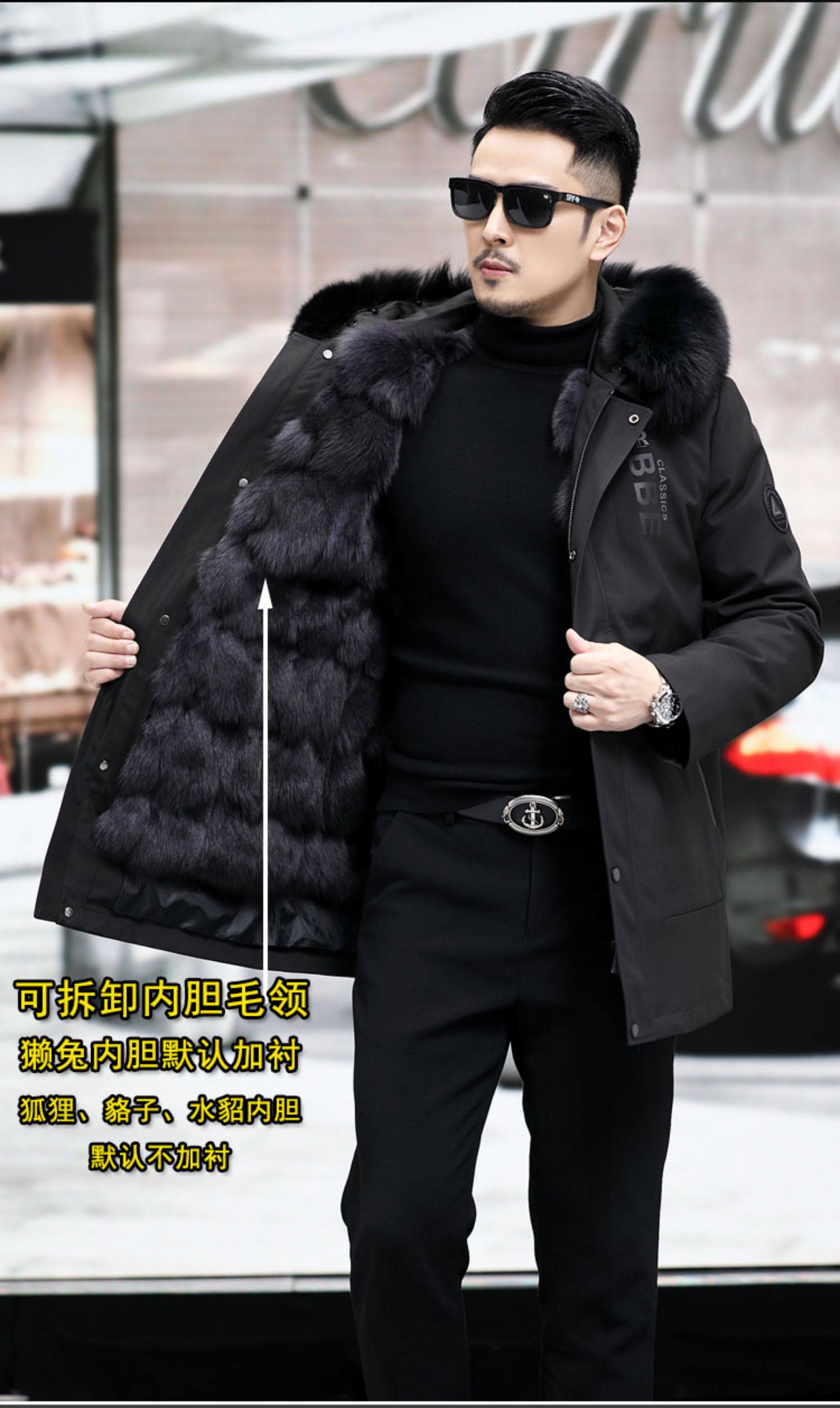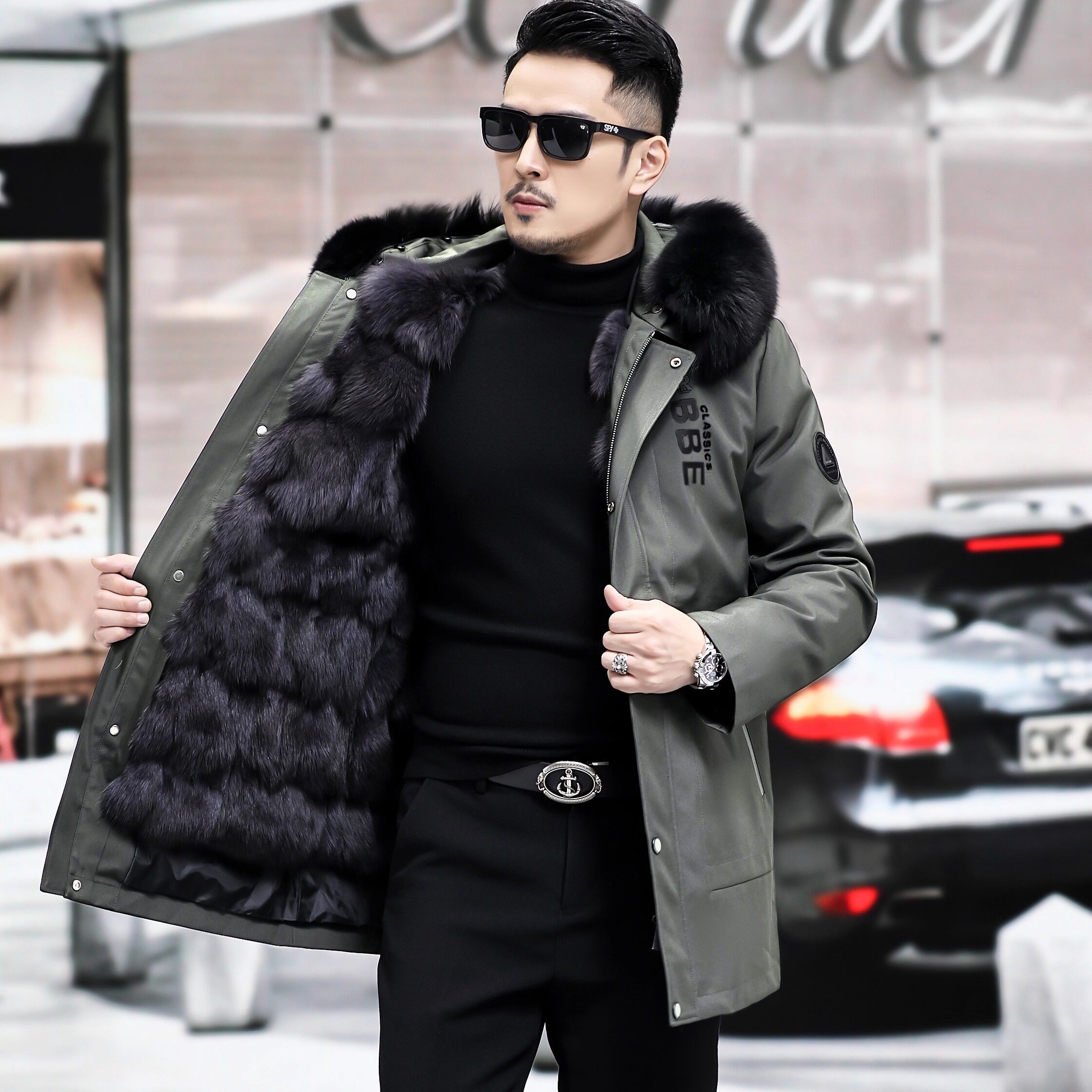 2025 New Style Fur-Lined Parka Men's Fox Fur Coat with Mink Fur Lining Mid-Length Winter Coat