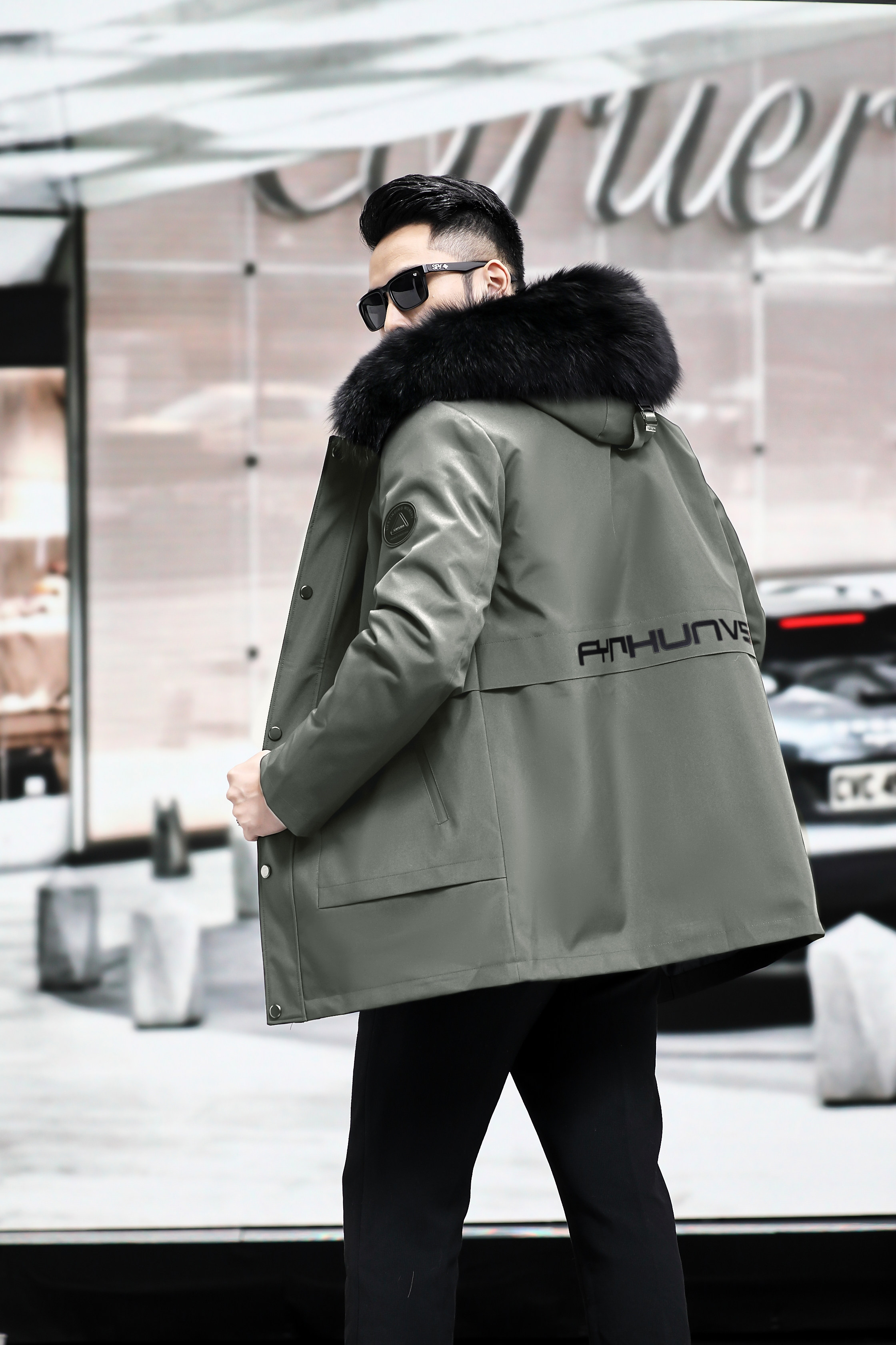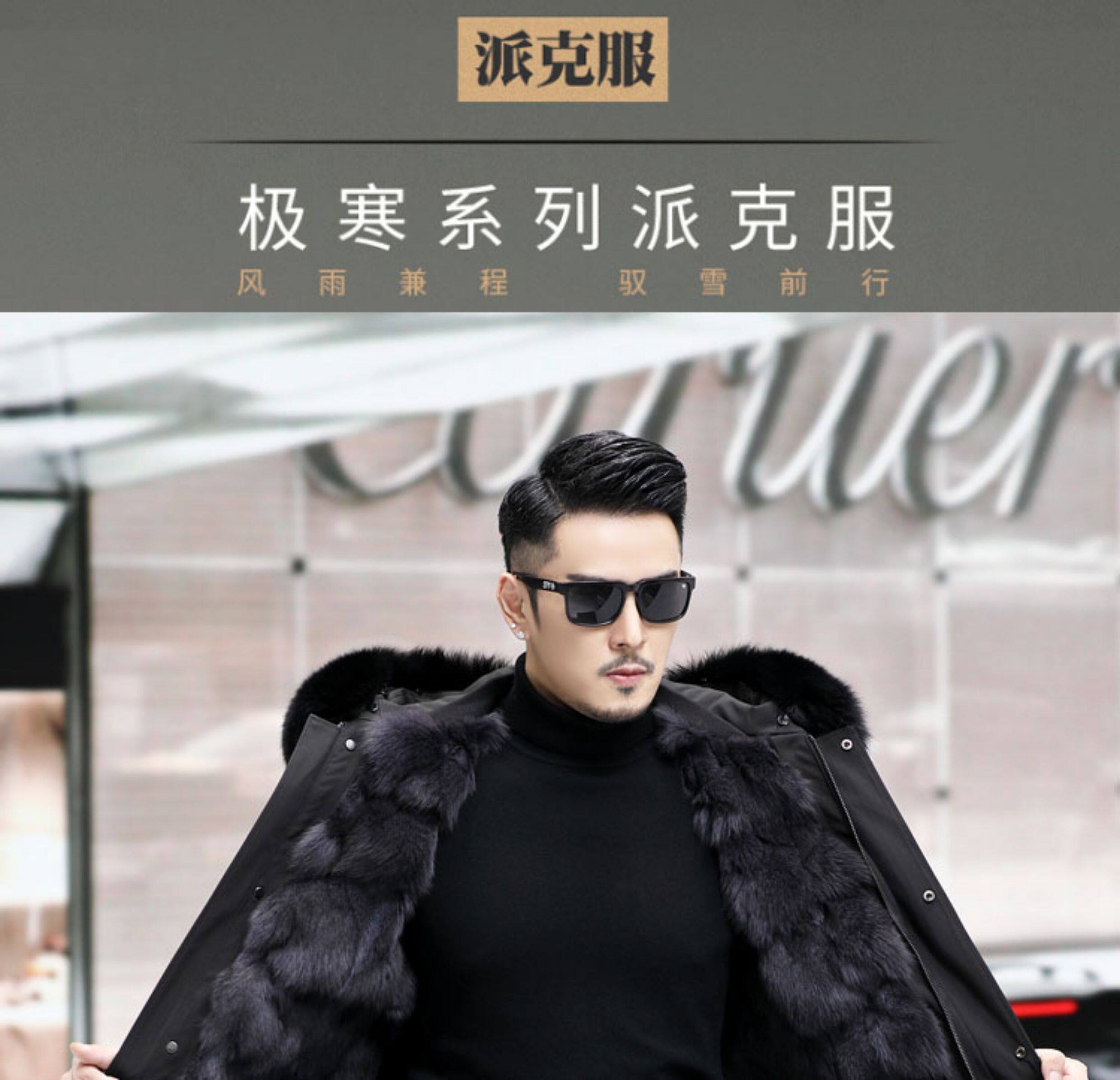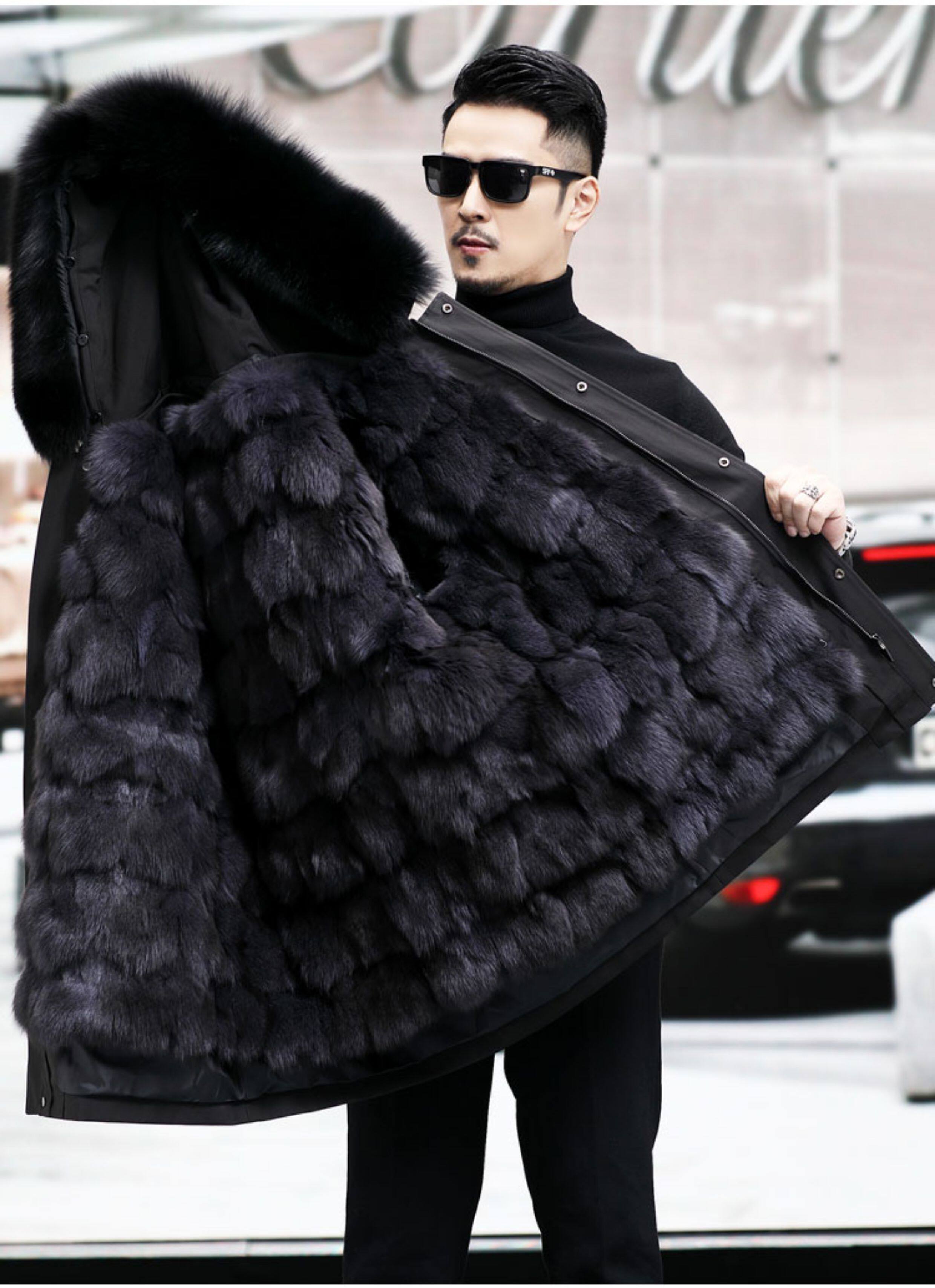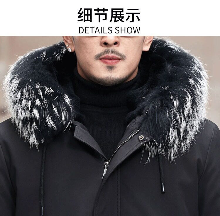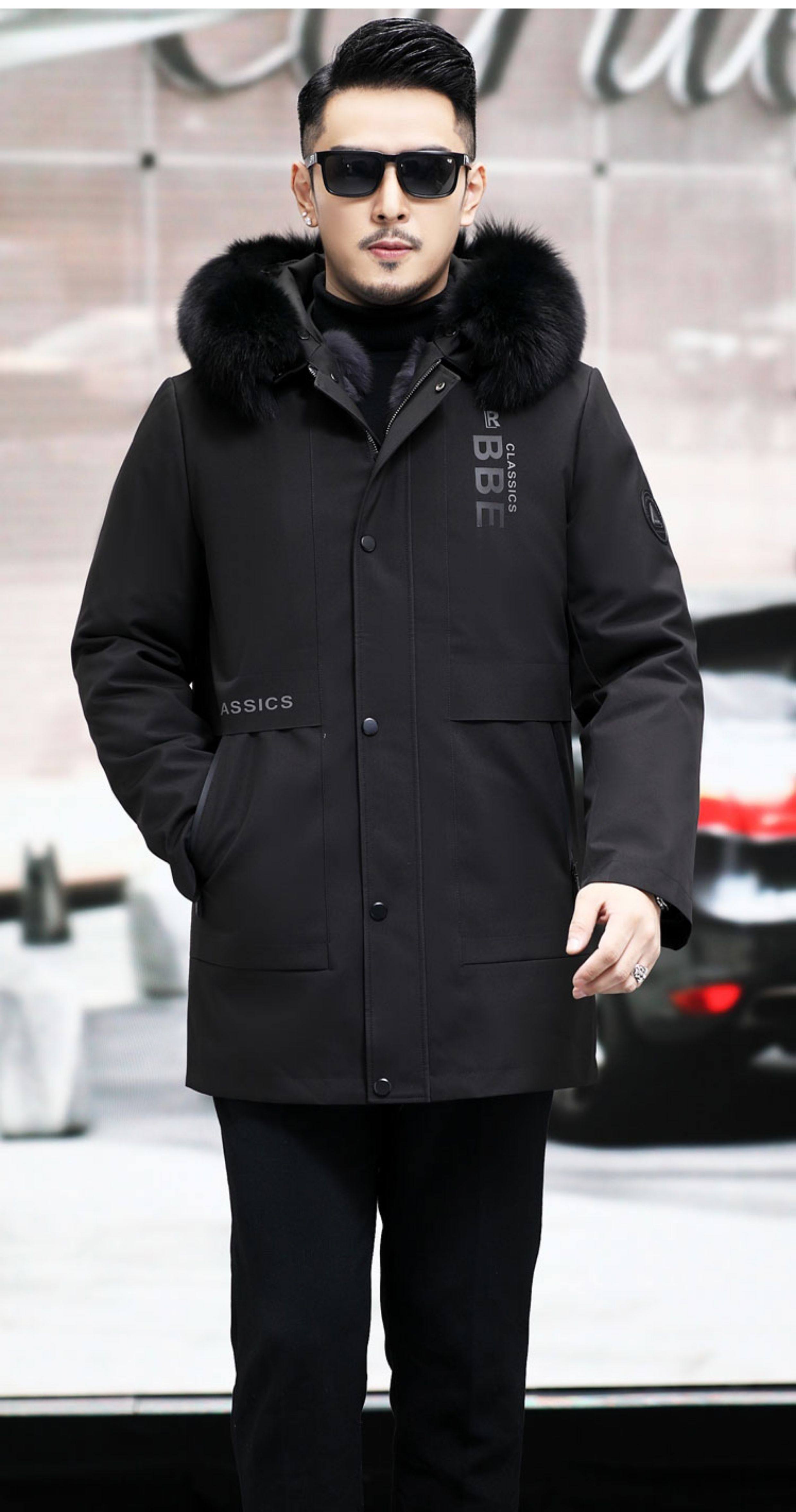 2025 New Style Fur-Lined Parka Men's Fox Fur Coat with Mink Fur Lining Mid-Length Winter Coat