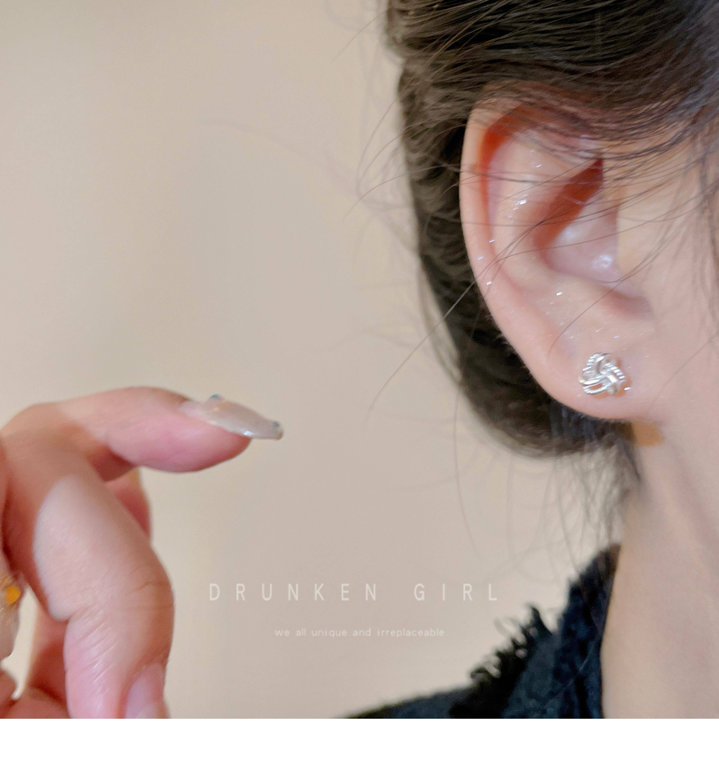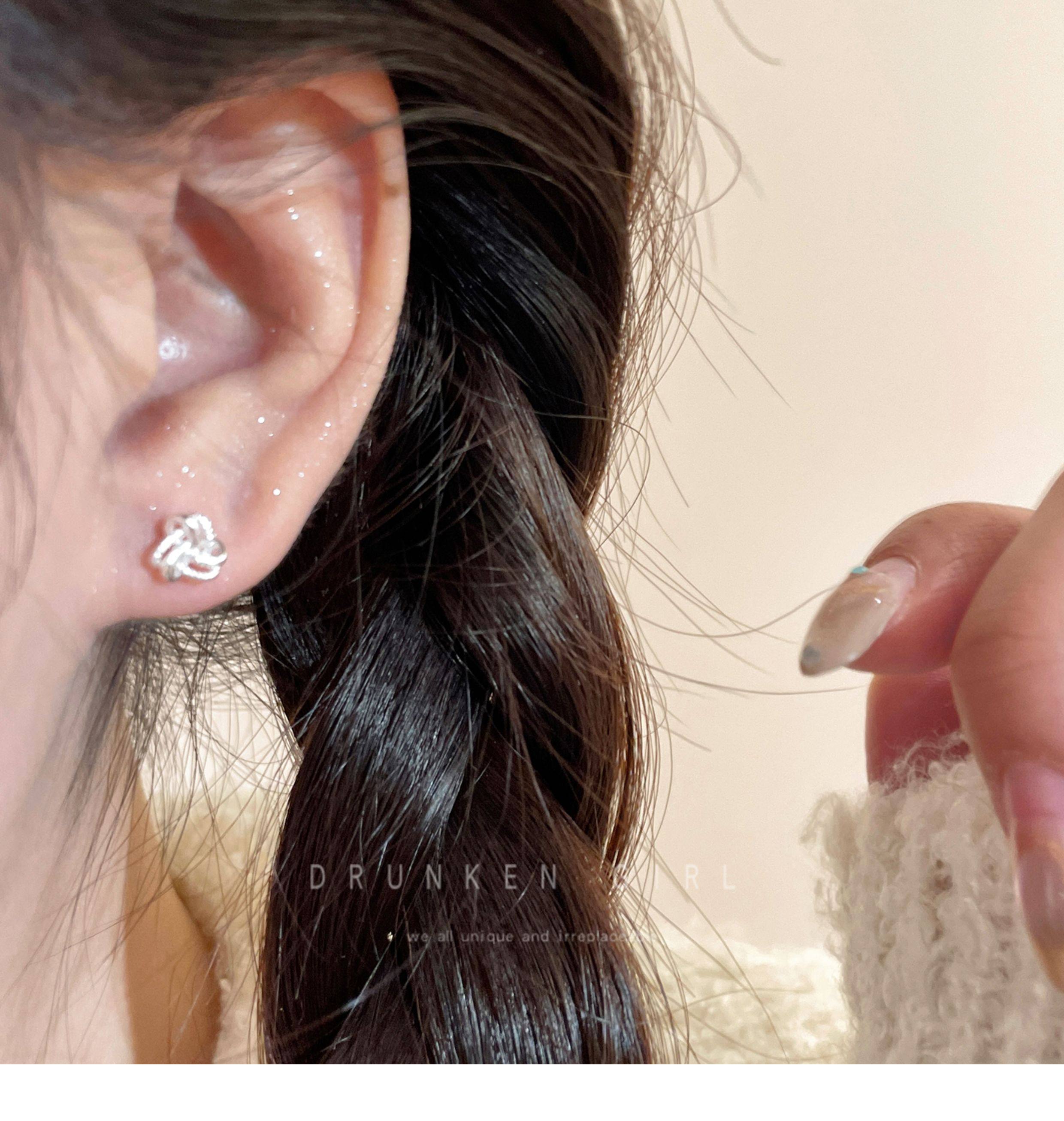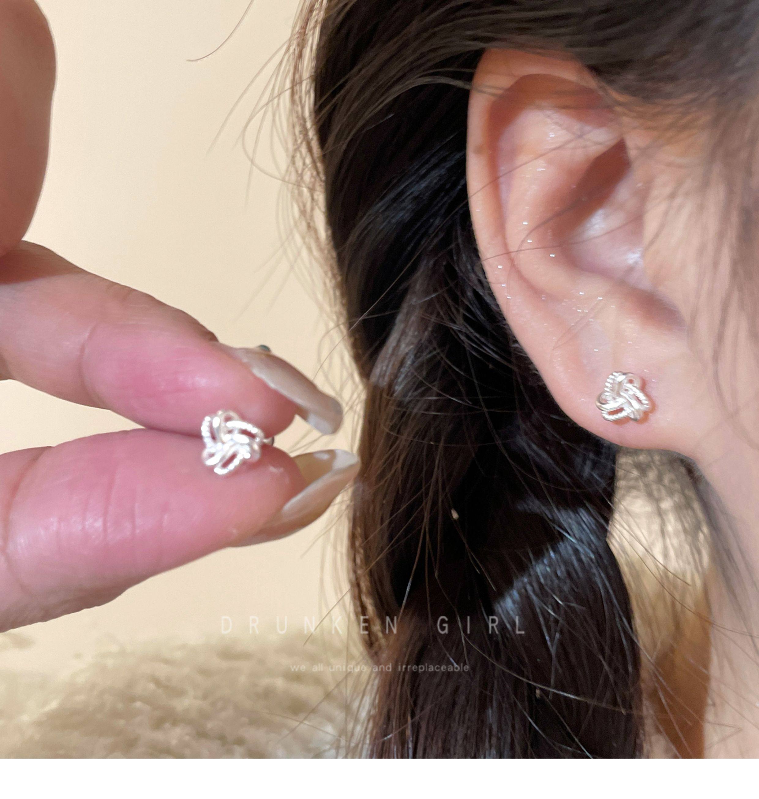 Delicate and Heartwarming 925 Sterling Silver Ruyi Knot Earrings for Women, Exquisite, Small, and High-End Earrings That Don'T Need to Be Removed for Sleeping