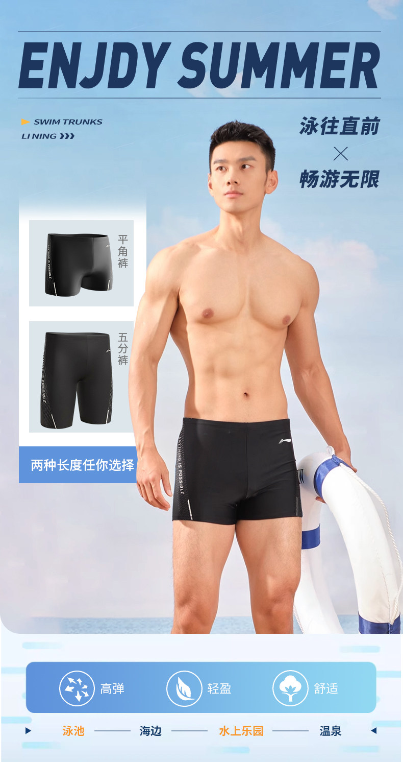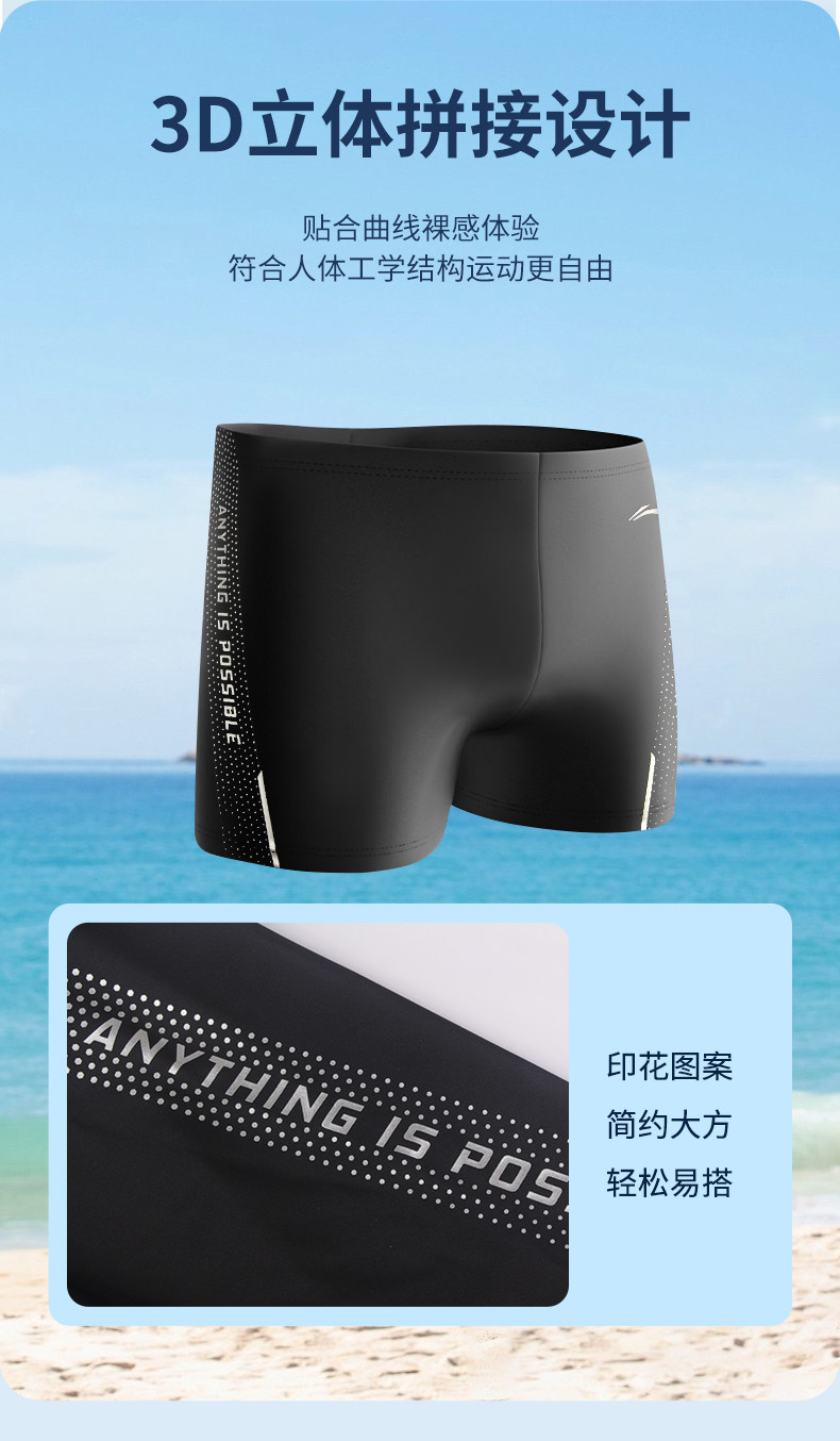 Li Ning Men's Swimming Trunks Adult Youth Professional Hot Spring Swimming Gear Men's Anti-Embarrassment Swimwear