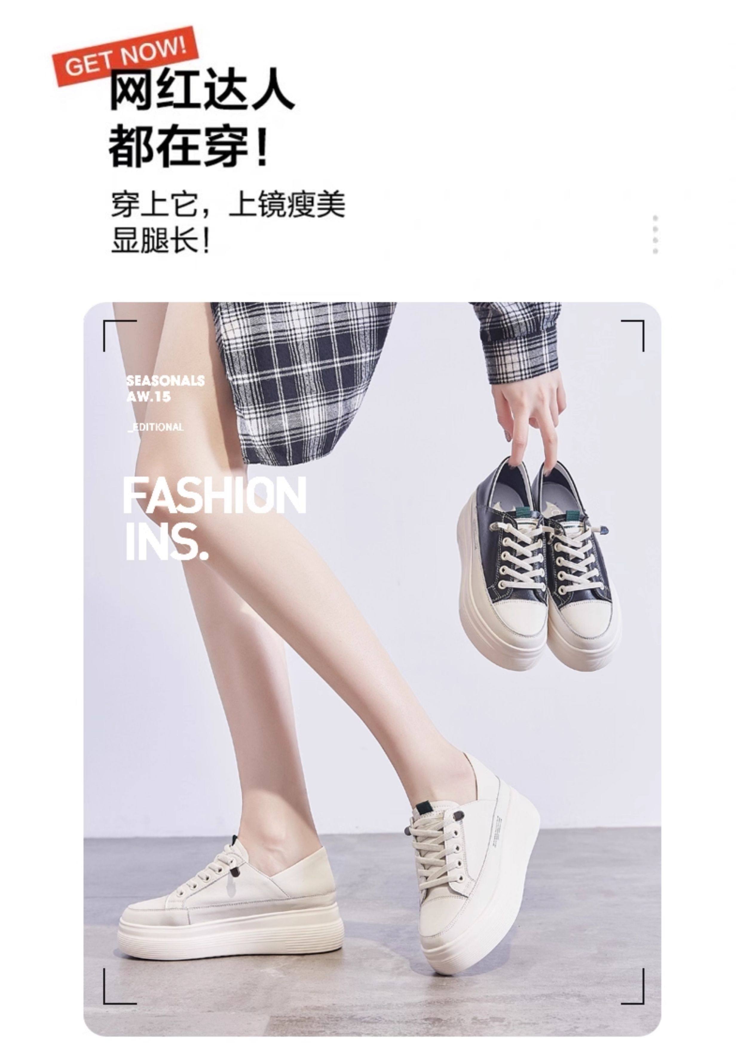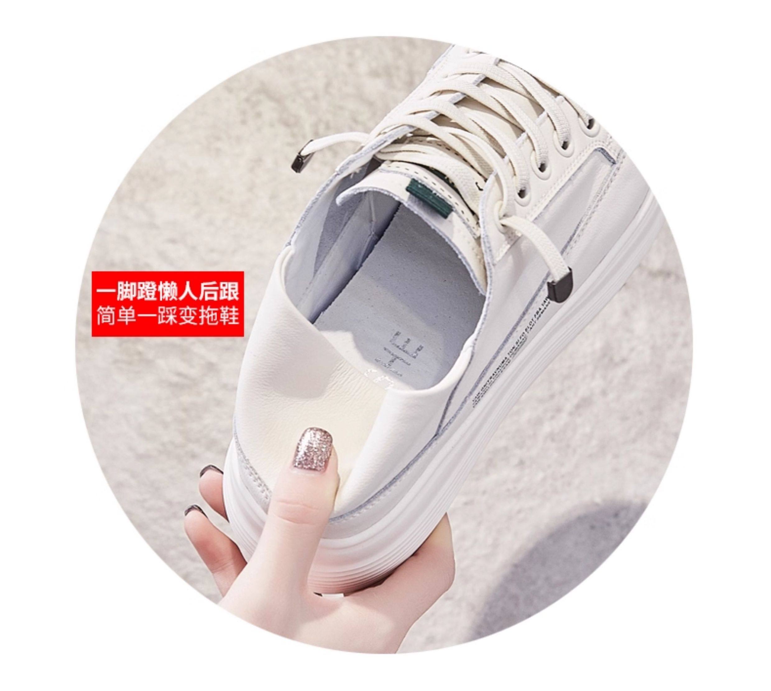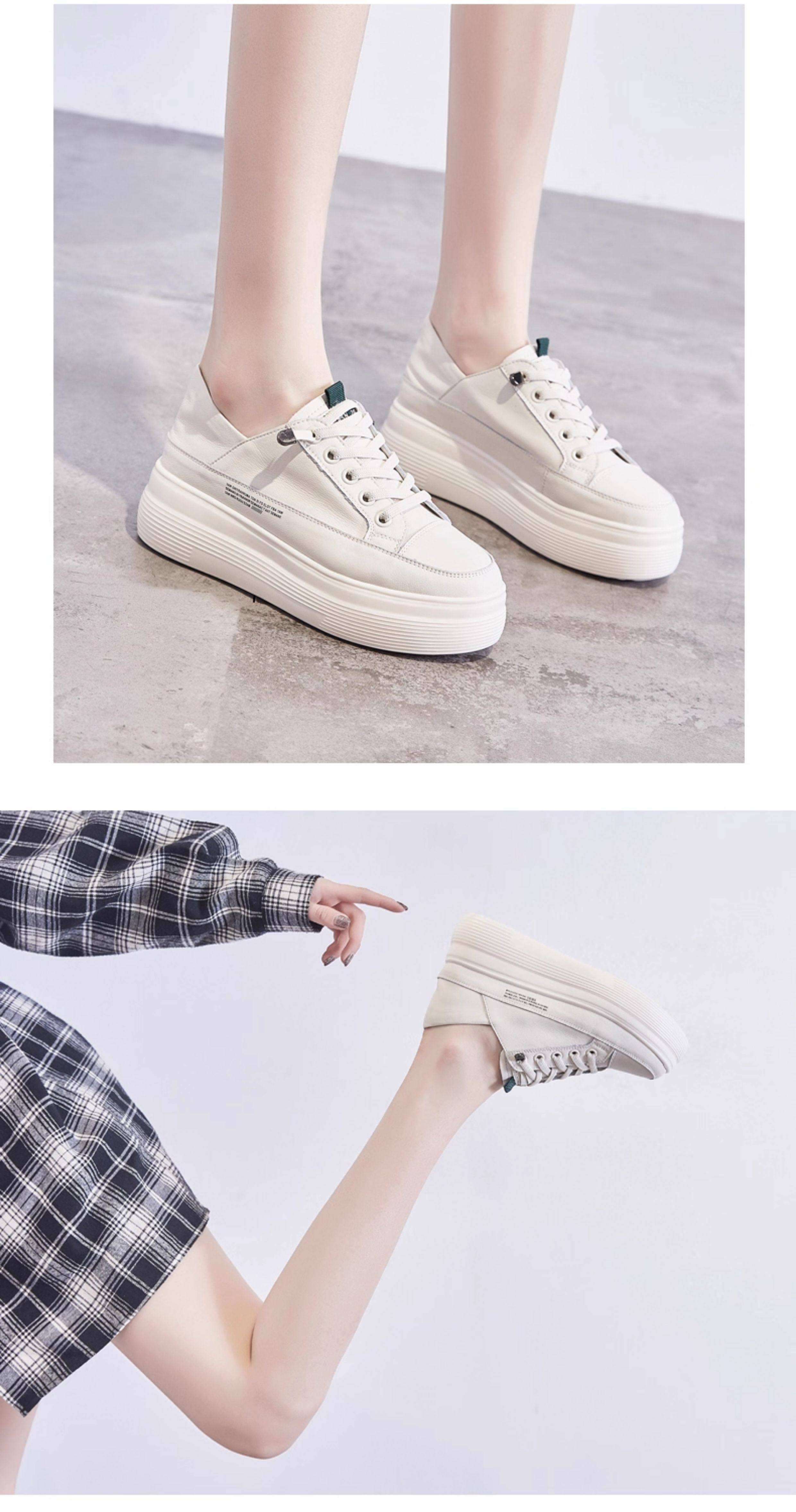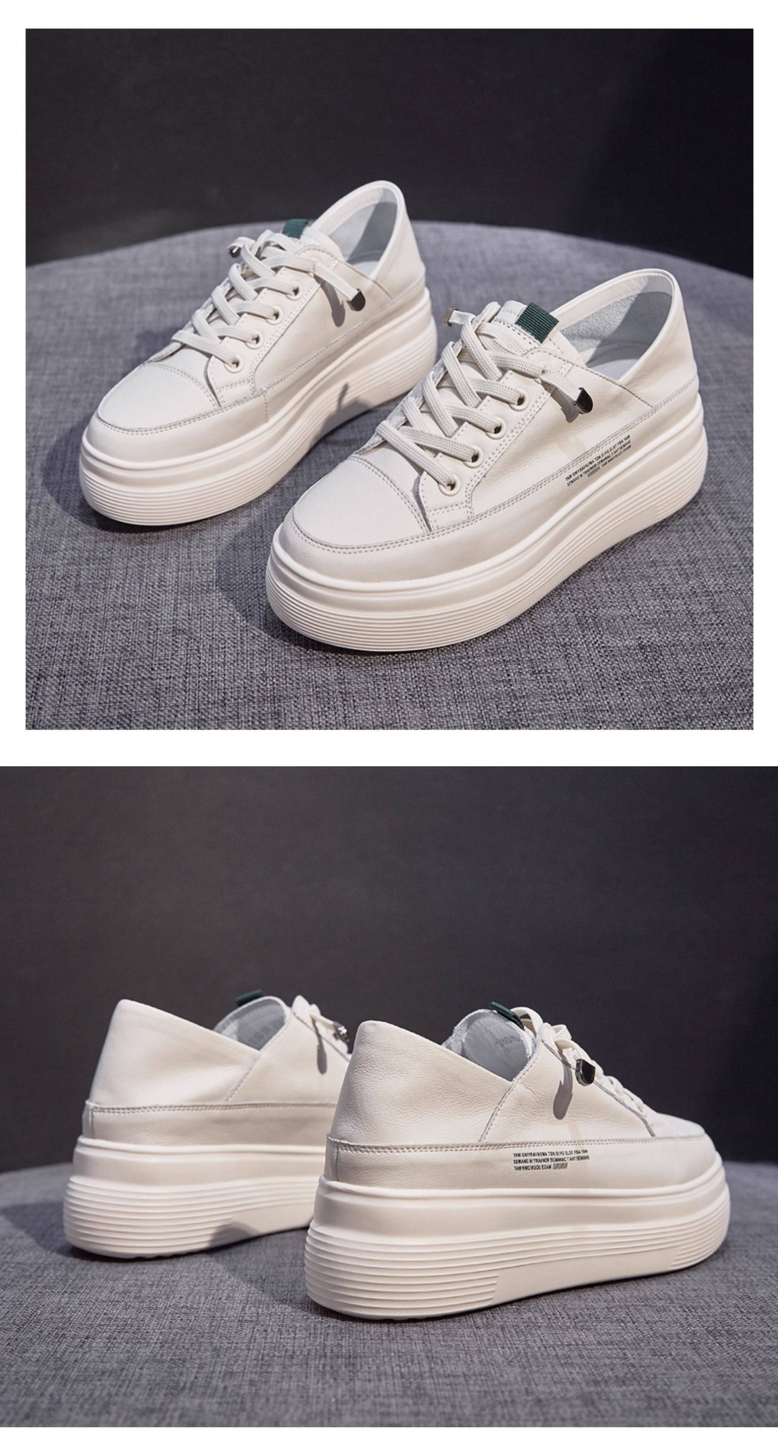 Inner Height-Increasing Sports Women's Shoes, White Shoes, Women's Spring and Autum New Platform Thick-Soled Genuine Leather Casual Versatile Popular Shoes