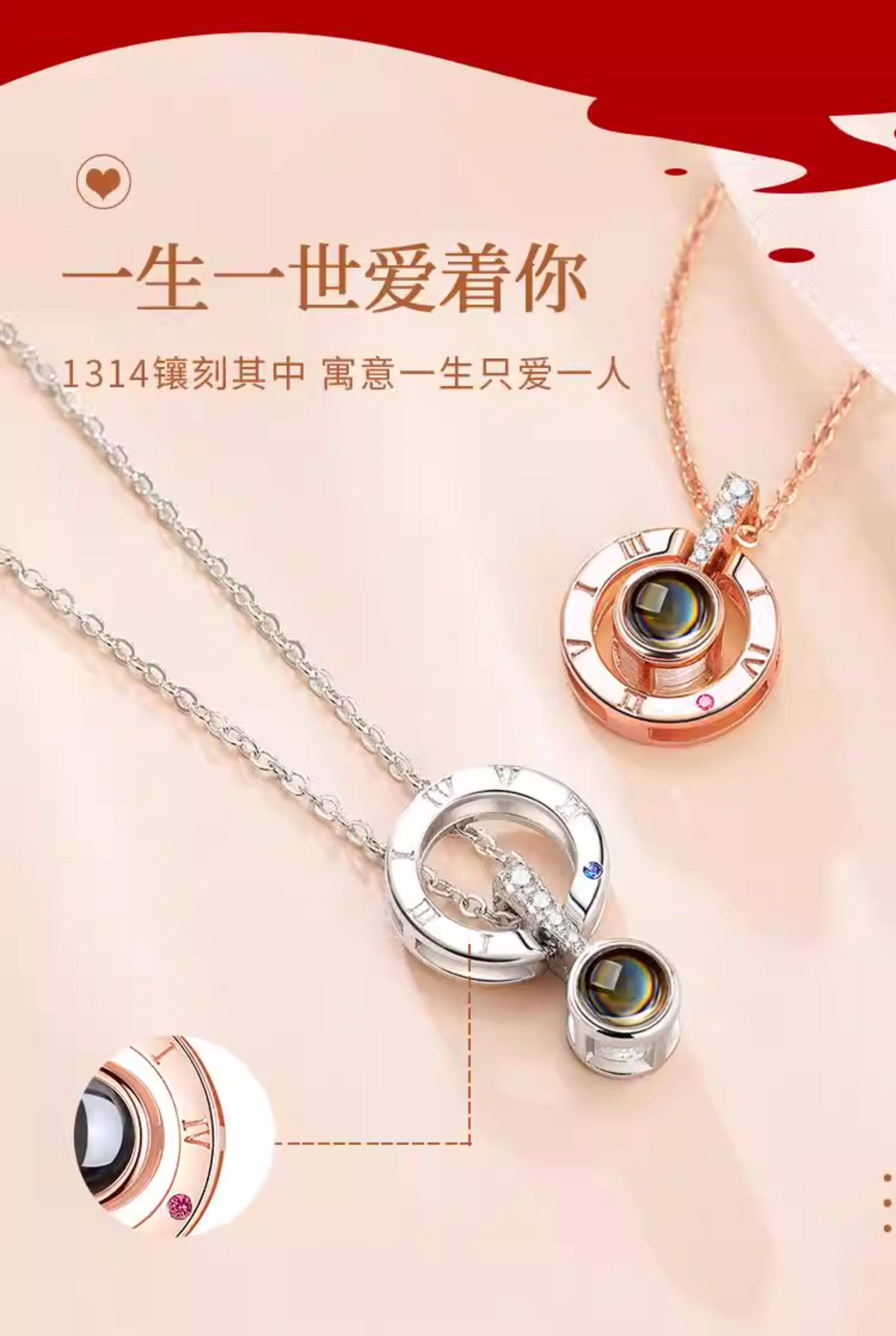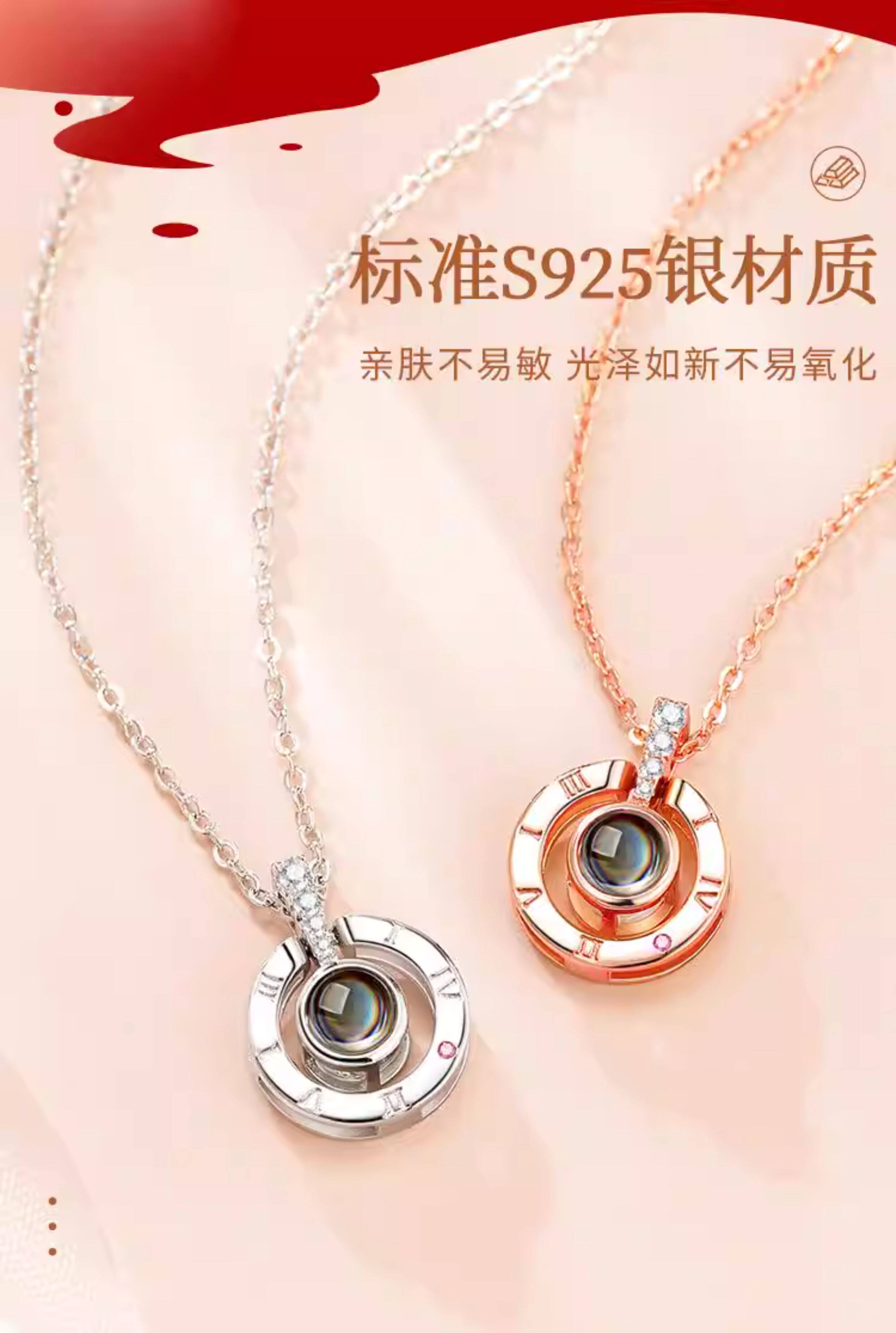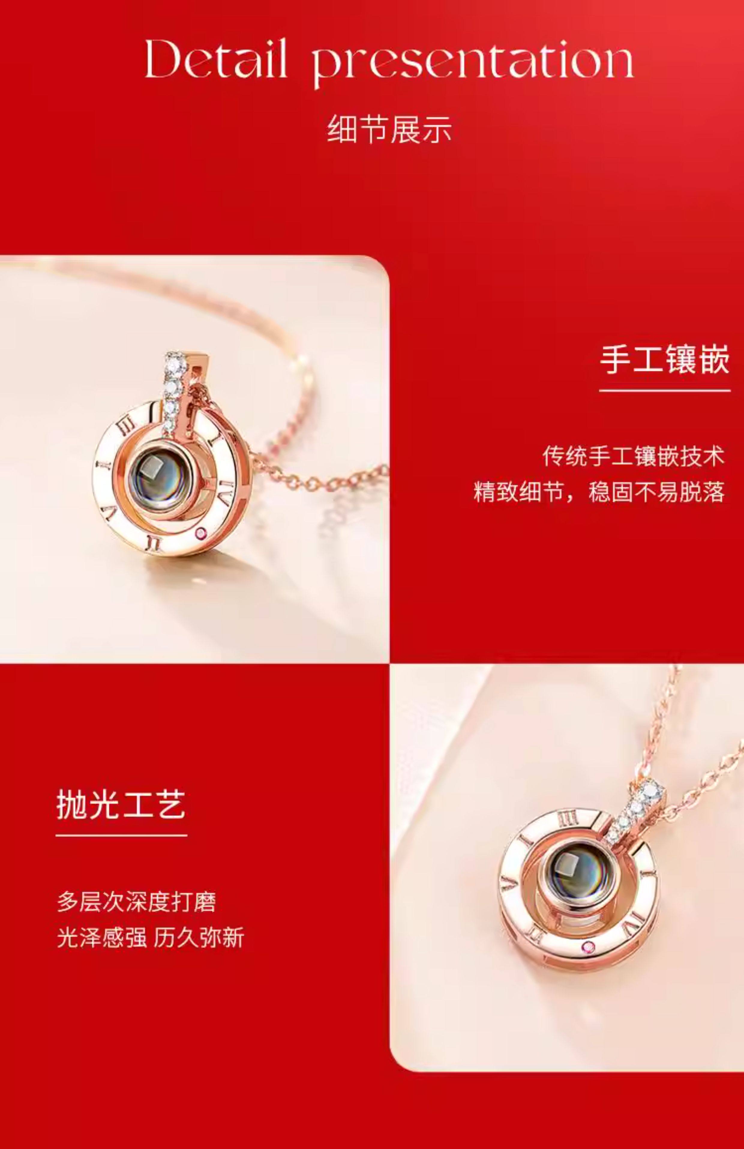 Niyu Love Memory Necklace Custom Projection 100 Ways to Say I Love You Gift for Girlfriend Wife New Year Valentine's Day Gift