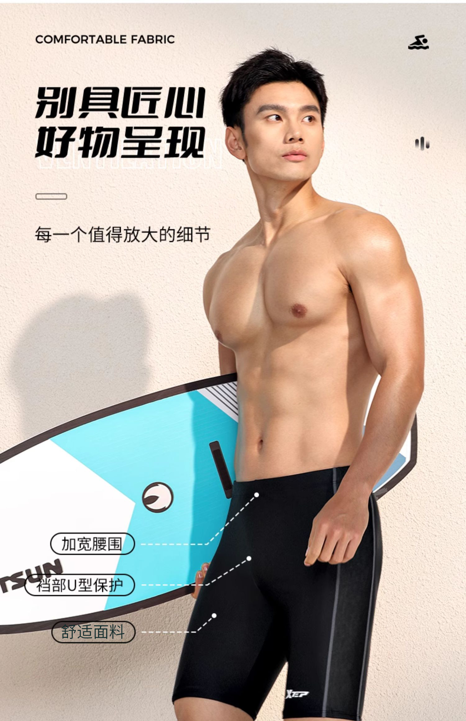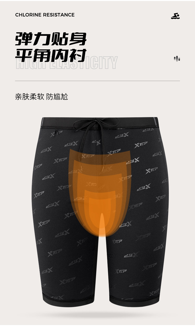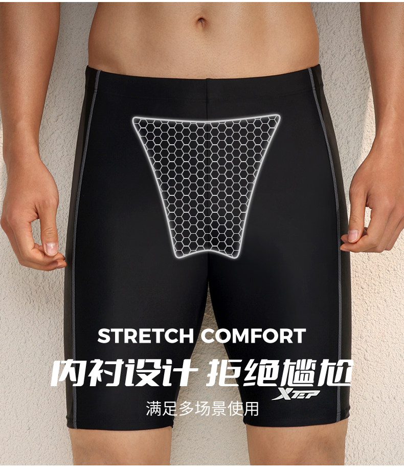 Xtep Men's Swim Trunks for Hot Springs, Five-Point Swim Trunks, Adult Men's Swimwear Three-Piece Set, Anti-Embarrassment Swimwear Set