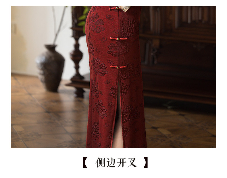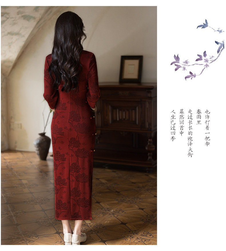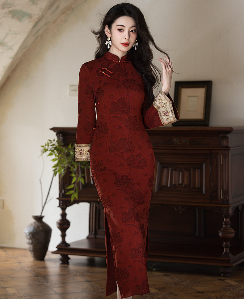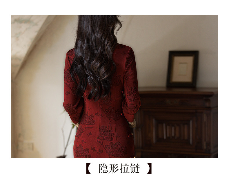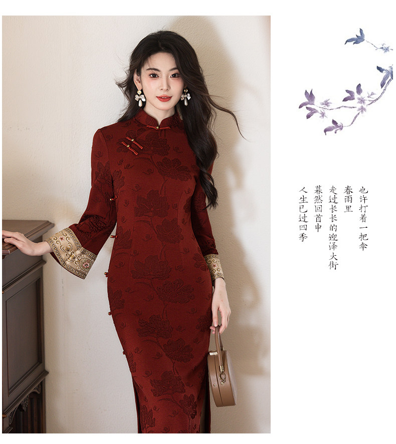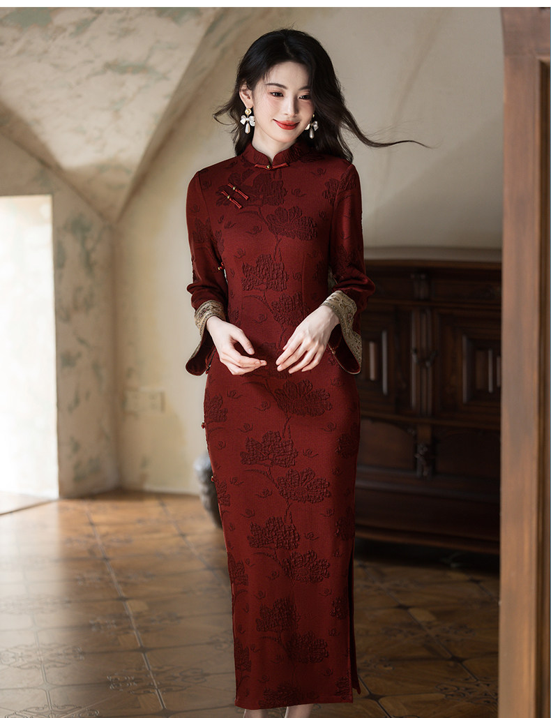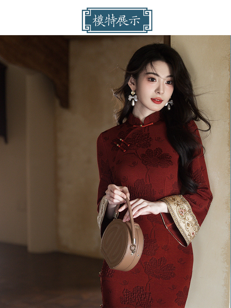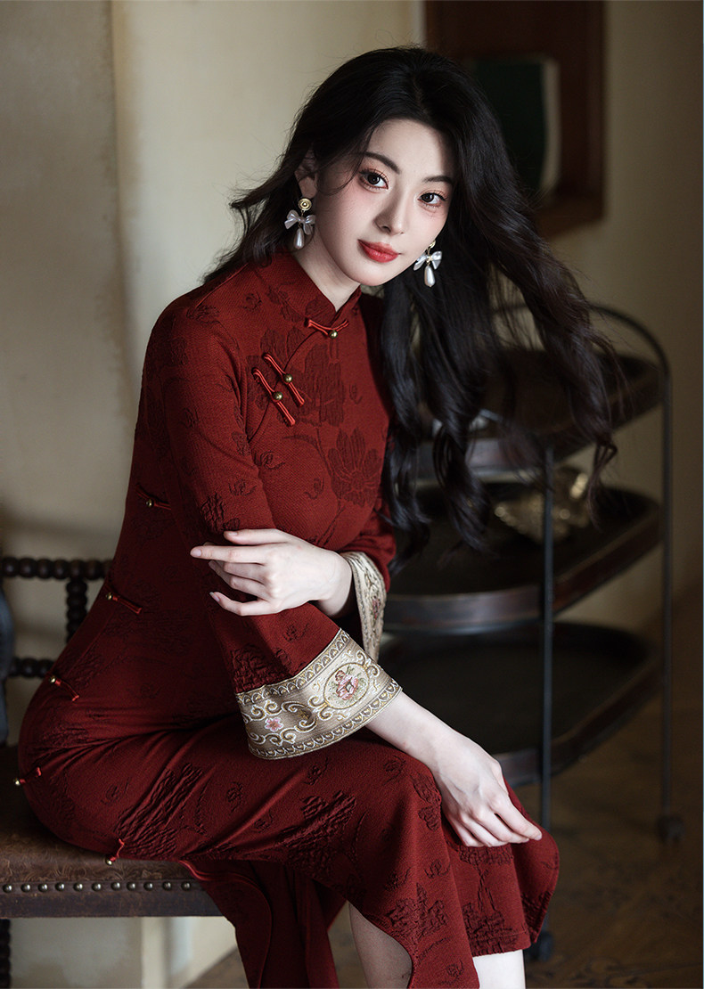 Harside's Stunning New Chinese-Style Retro High-End Red Long-Sleeved Cheongsam Modified Dress Is Elegant and Noble