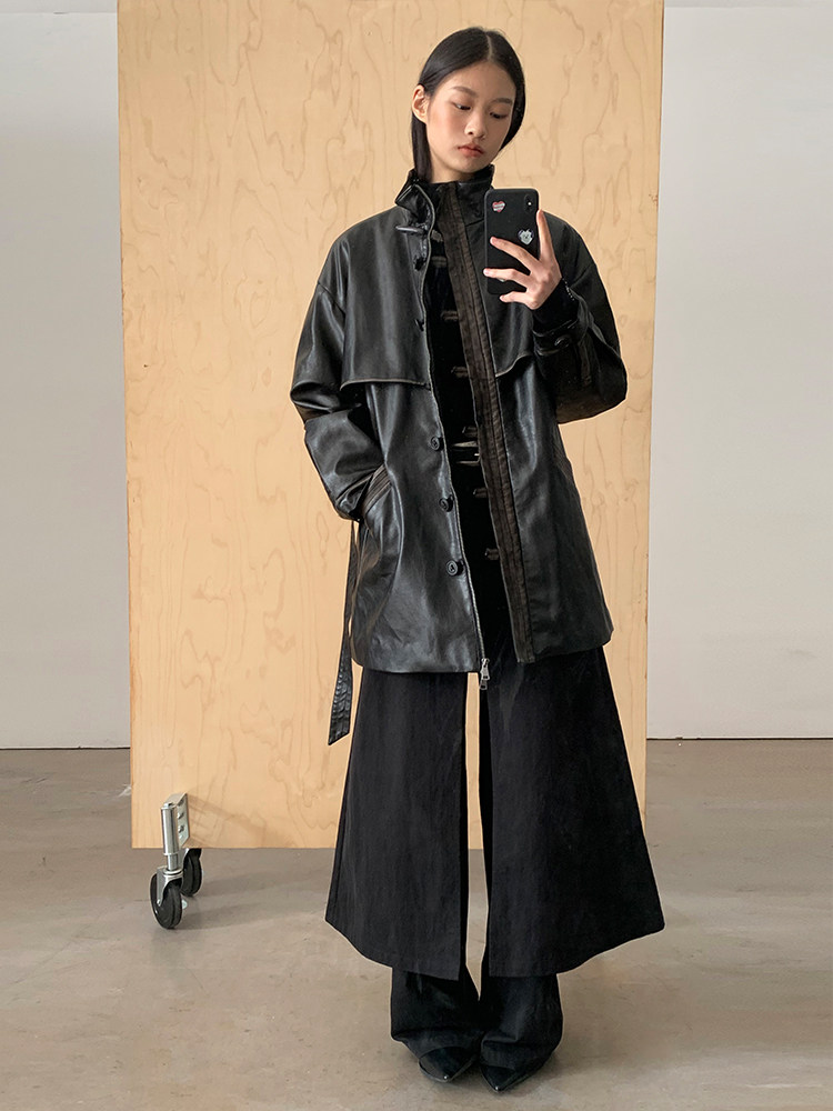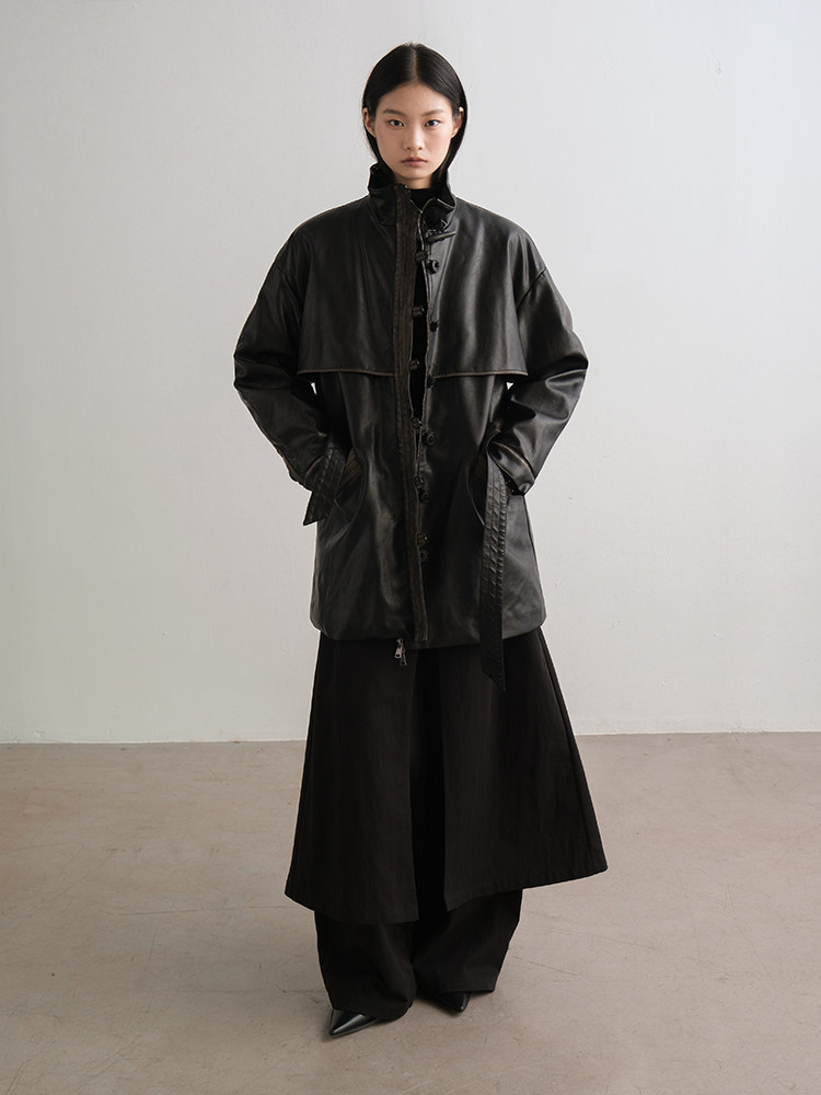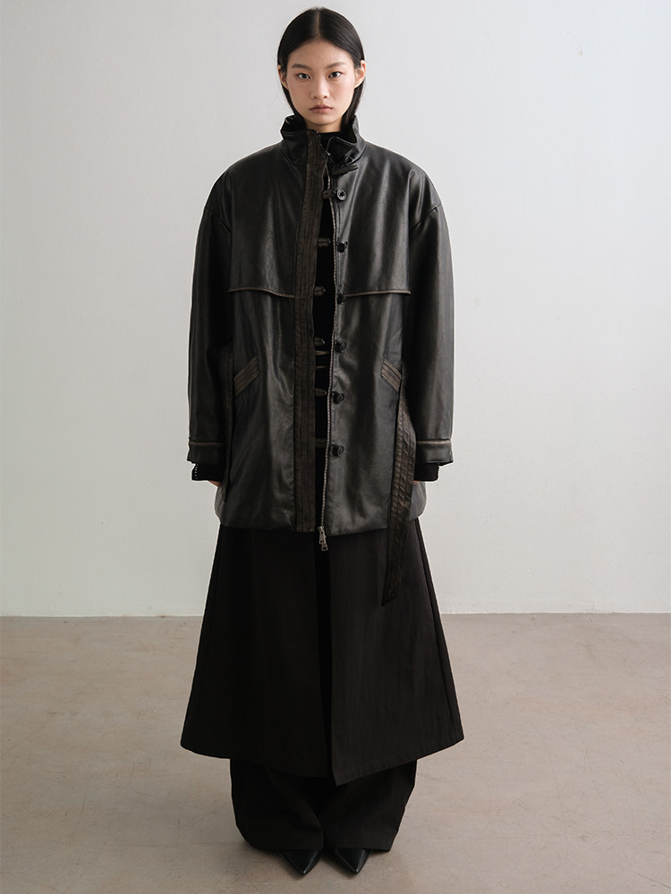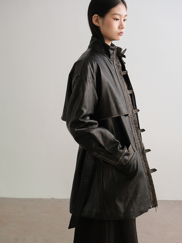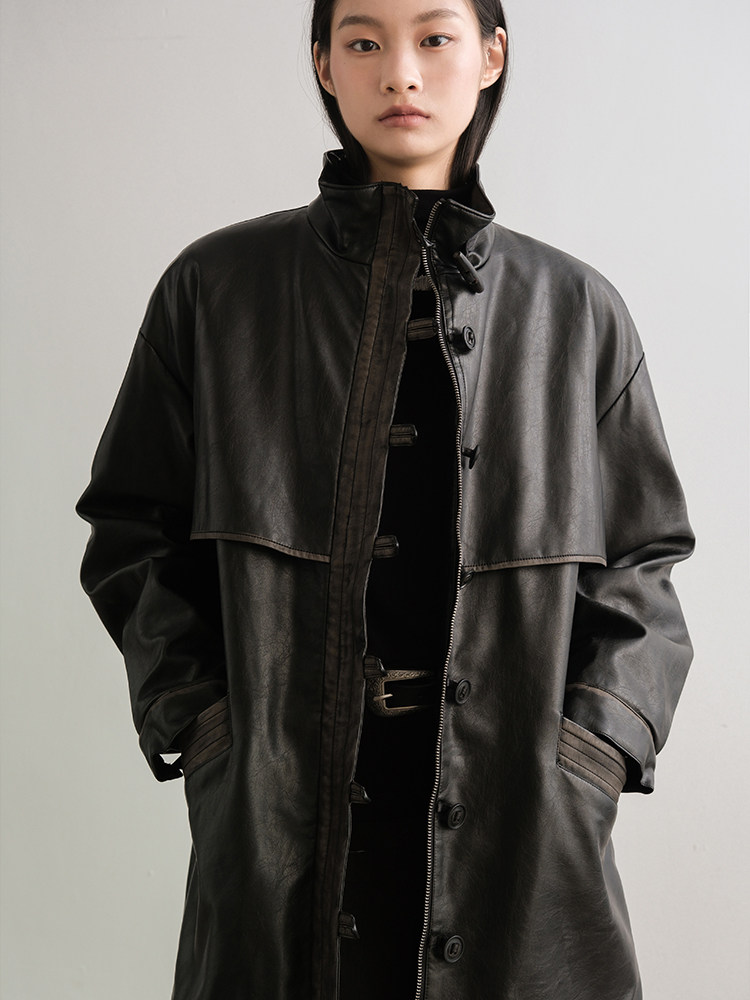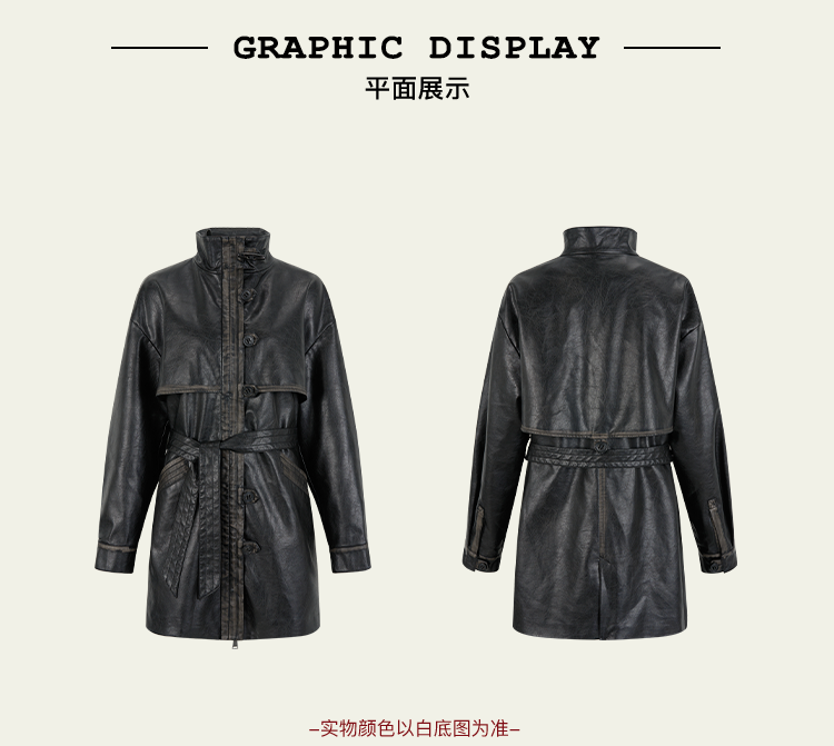 Genesis Era【Mottled Mark】Autumn Leather Jacket for Women, Cool and Stylish New Long Coat Trench Coat