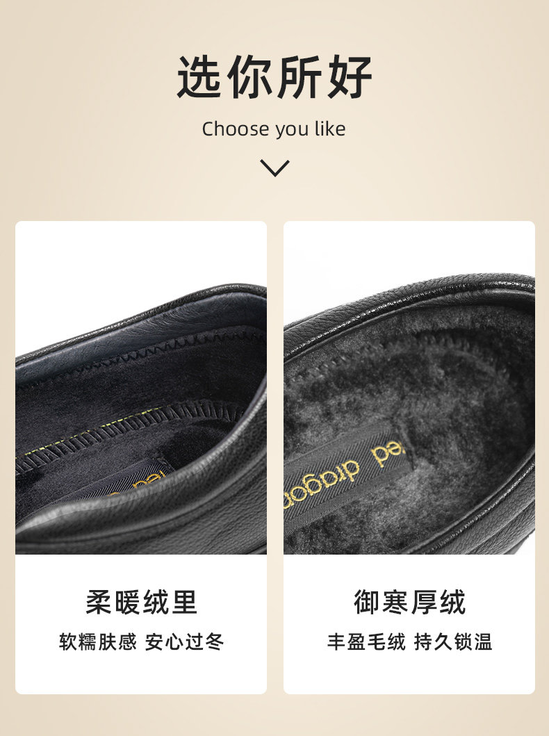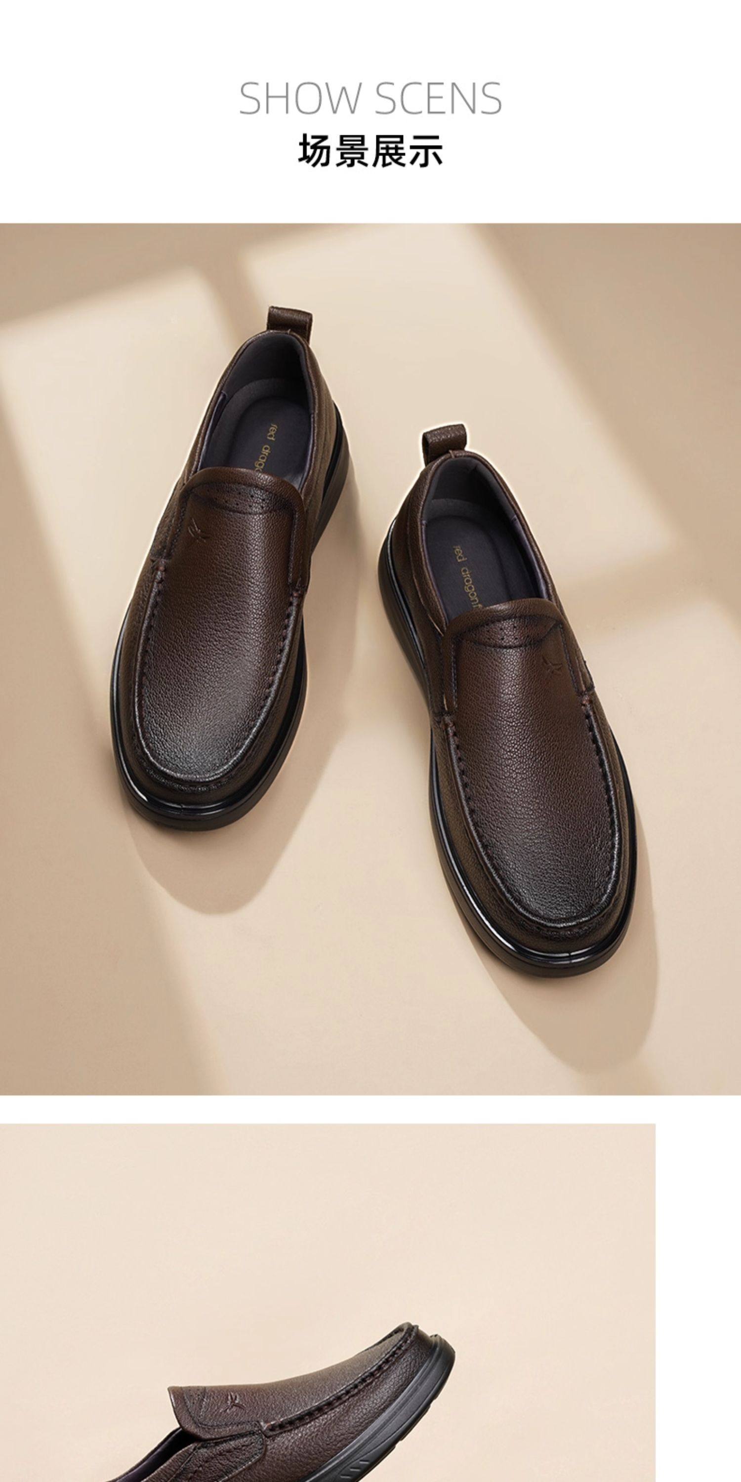 Red Dragonfly Men's Shoes Winter New Casual Leather Shoes Men's Soft-Soled Slip-On Genuine Leather Shoes for Middle-Aged Men Dad Shoes