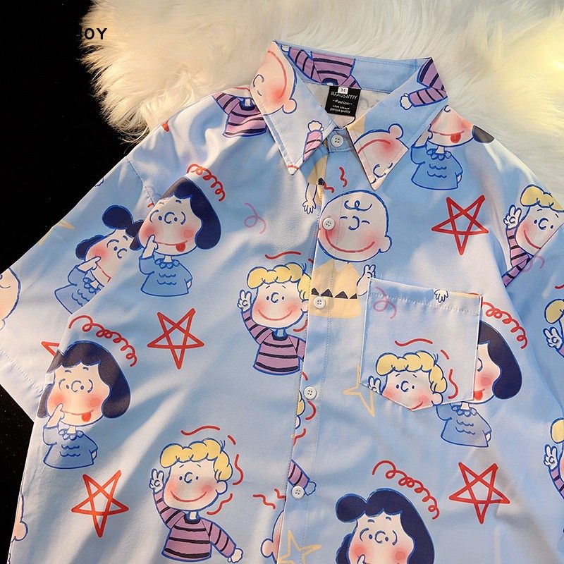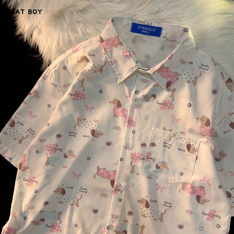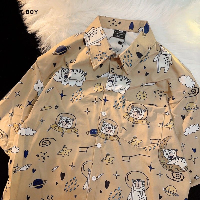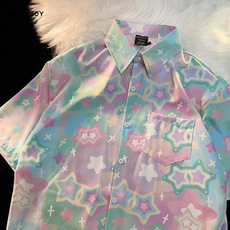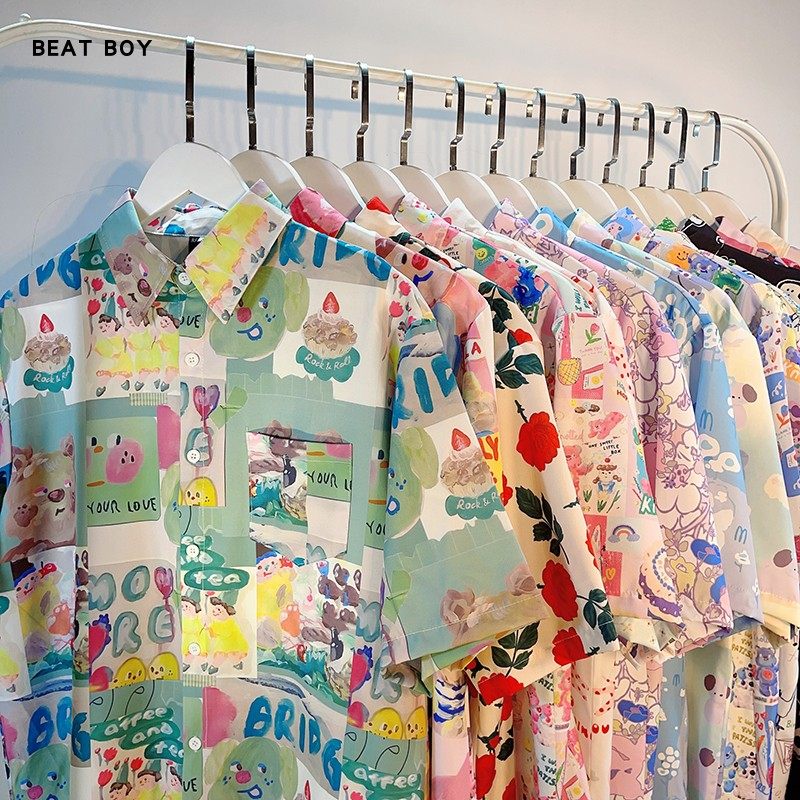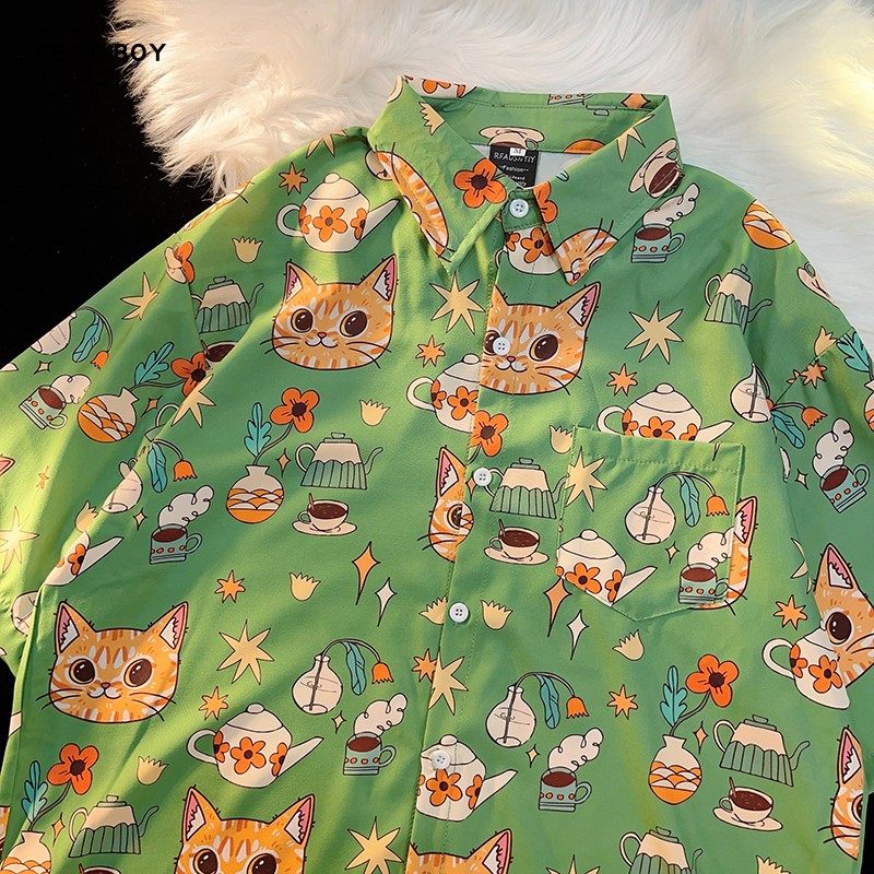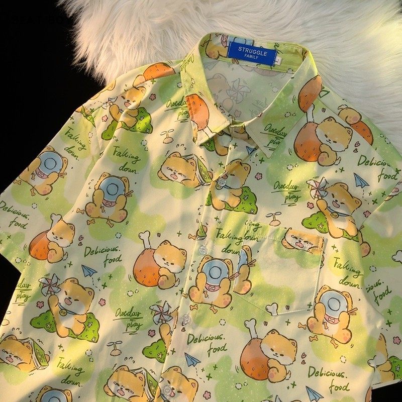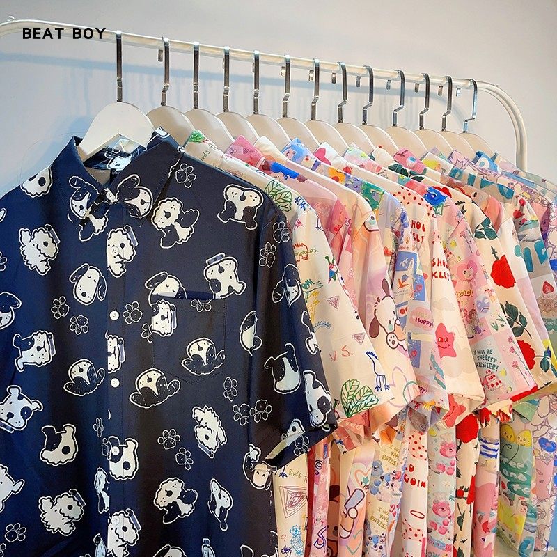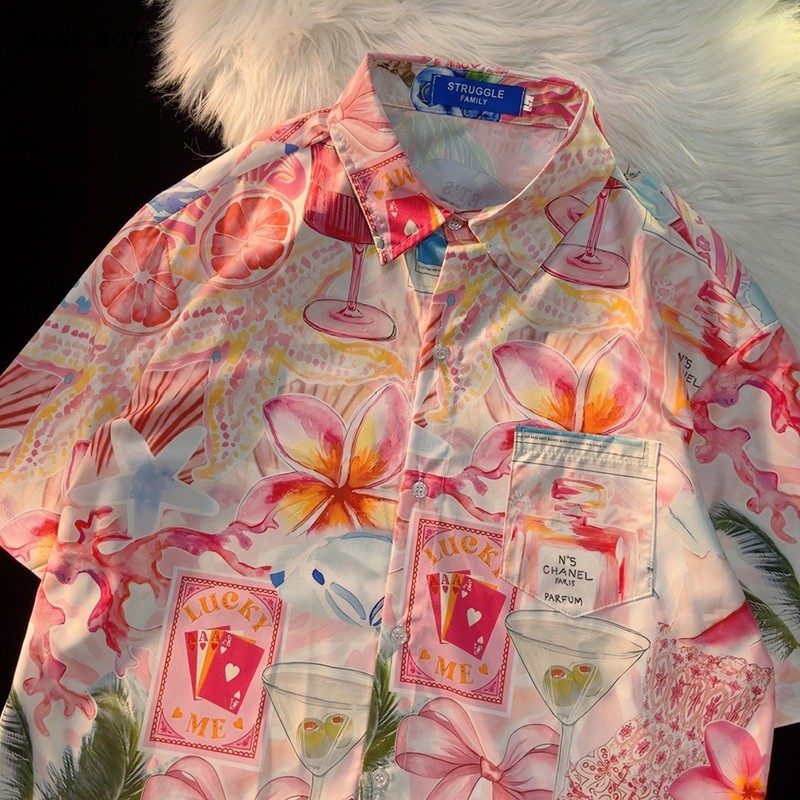 Sweet and Fun Cartoon All-Over Print Short-Sleeve Shirt for Men and Women, Summer Dopamine Outfit, Loose and Versatile Floral Shirt, Trendy