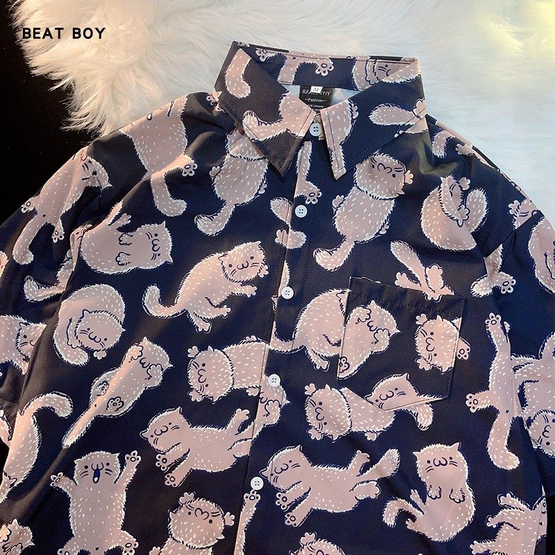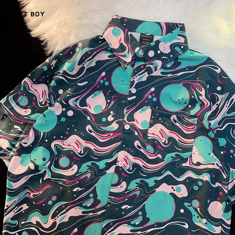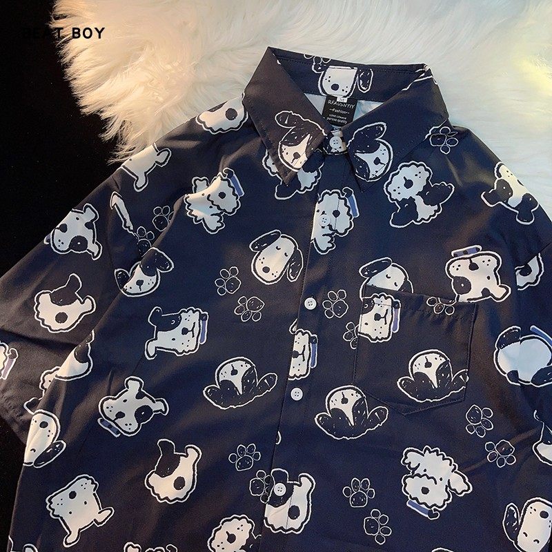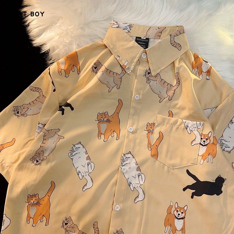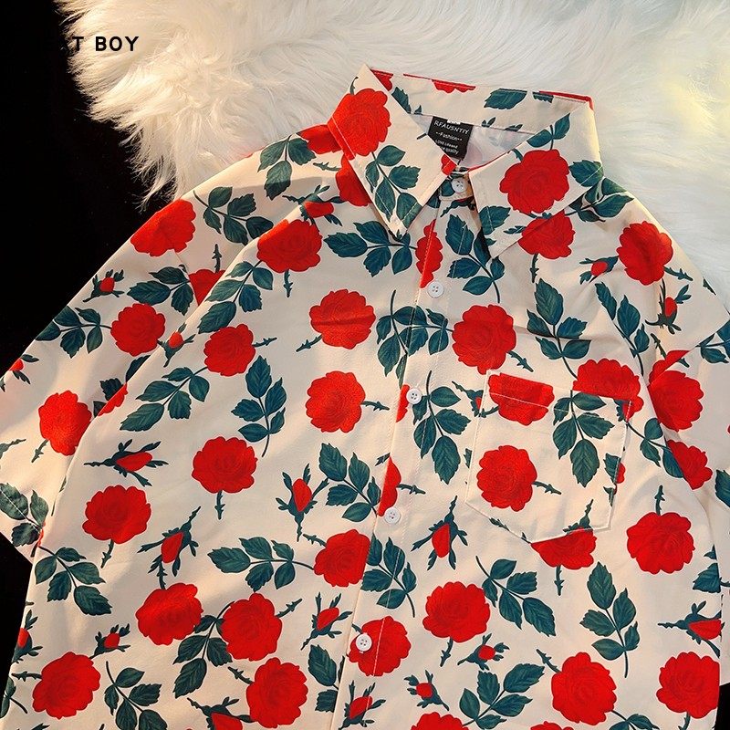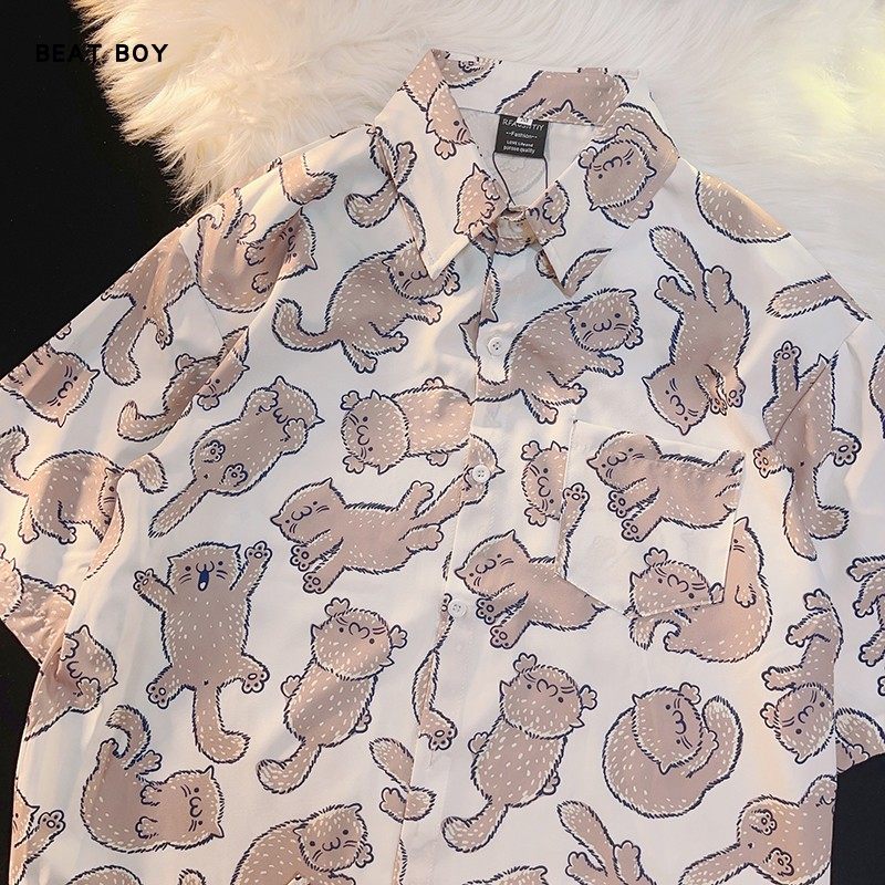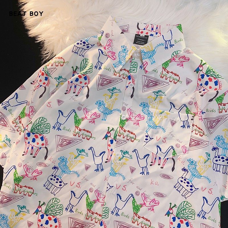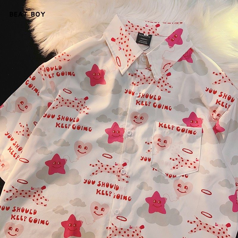 Sweet and Fun Cartoon All-Over Print Short-Sleeve Shirt for Men and Women, Summer Dopamine Outfit, Loose and Versatile Floral Shirt, Trendy