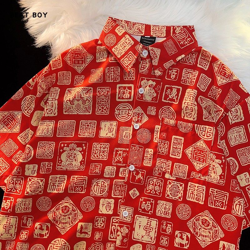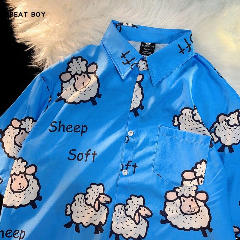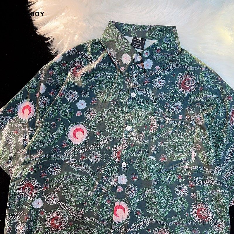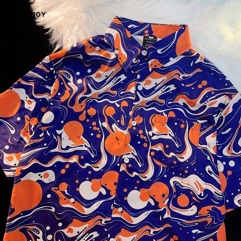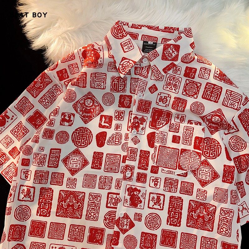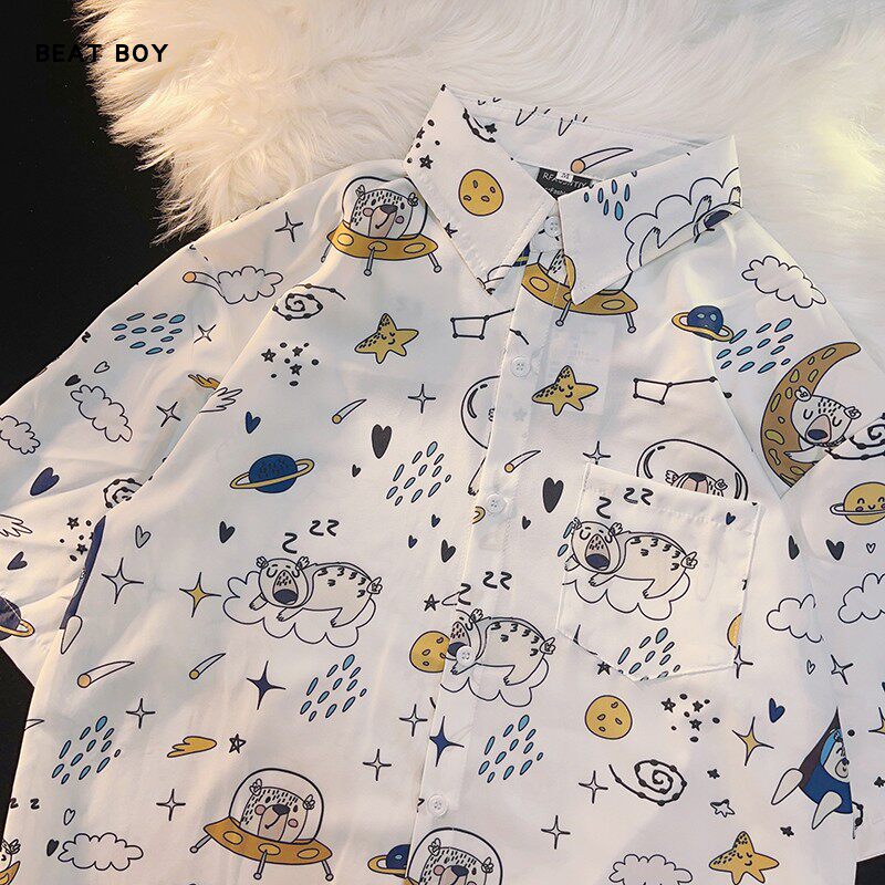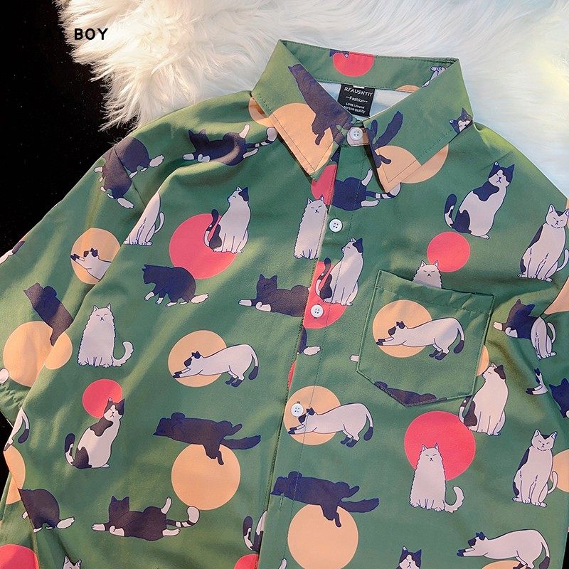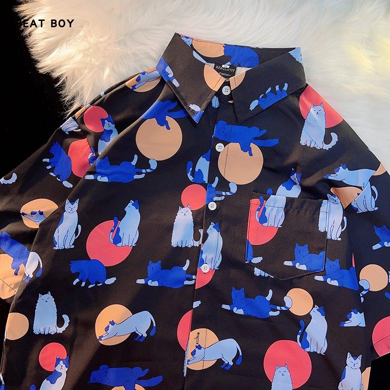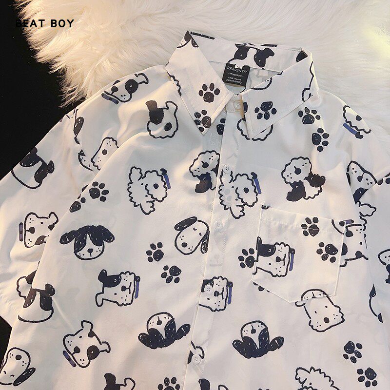 Sweet and Fun Cartoon All-Over Print Short-Sleeve Shirt for Men and Women, Summer Dopamine Outfit, Loose and Versatile Floral Shirt, Trendy