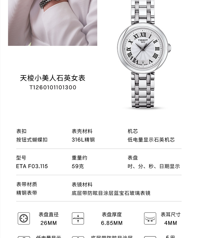 [Same Model as Liu Yifei] Tissot Little Beauty Quartz Steel Band Watch for Women