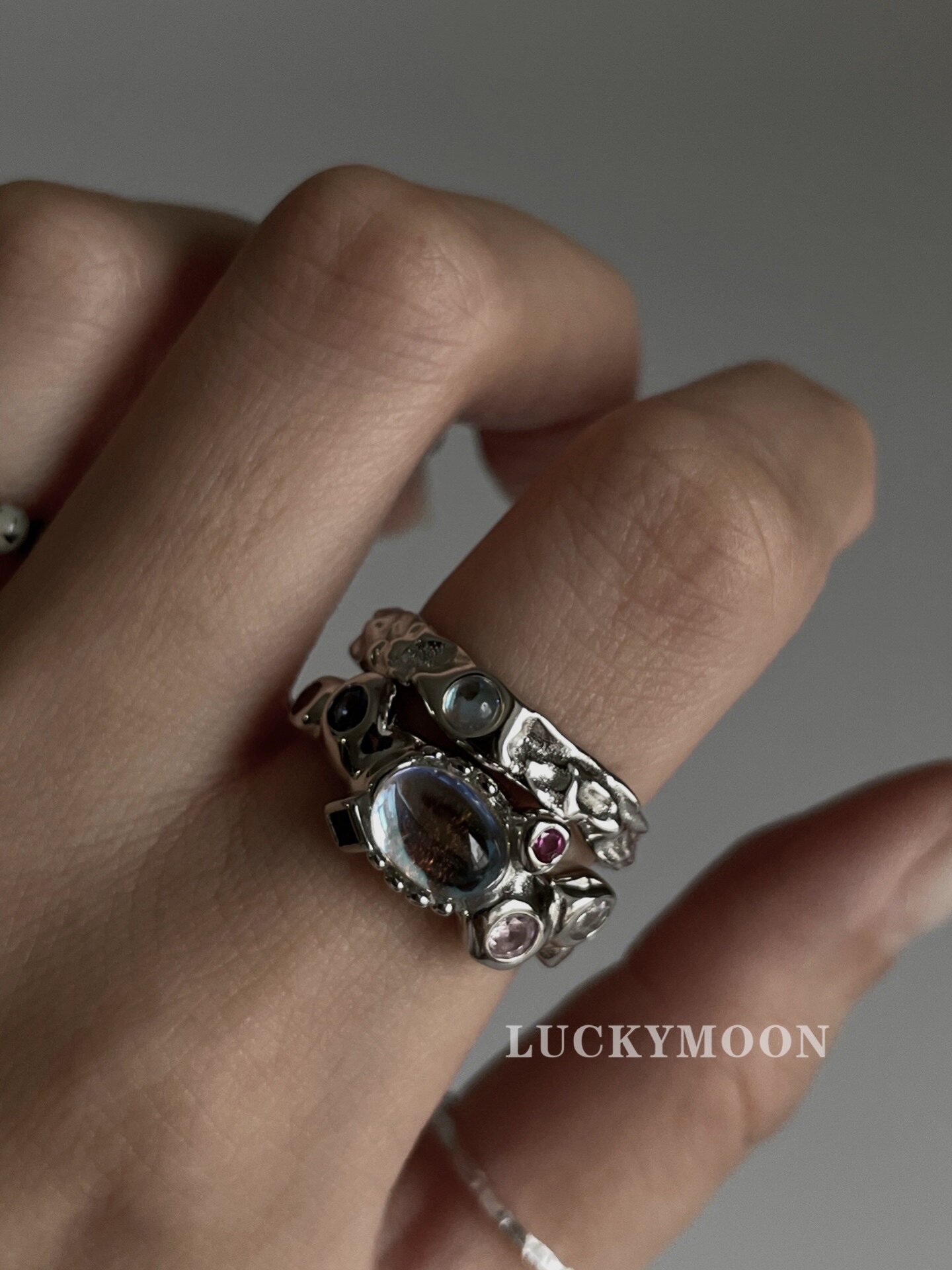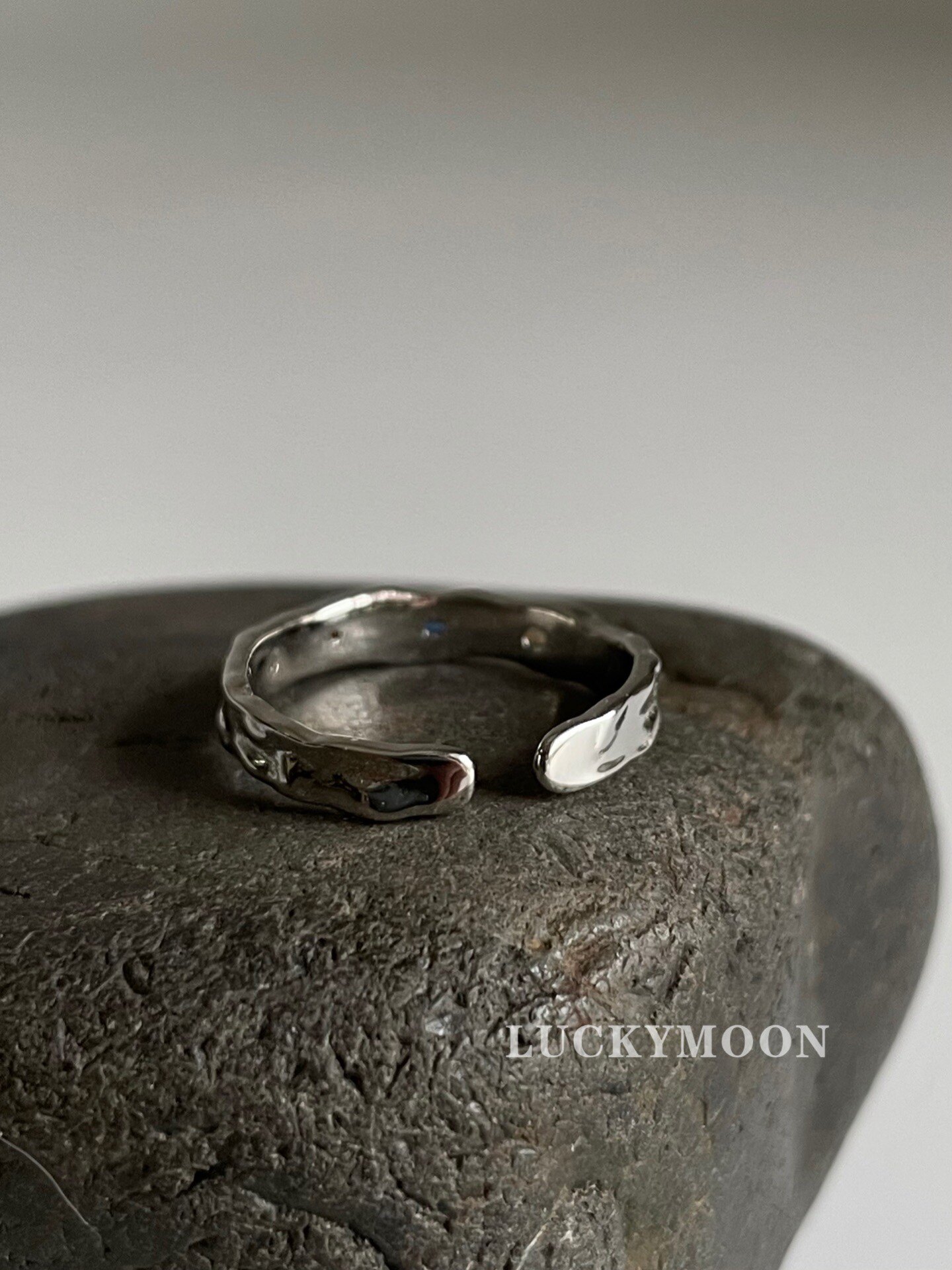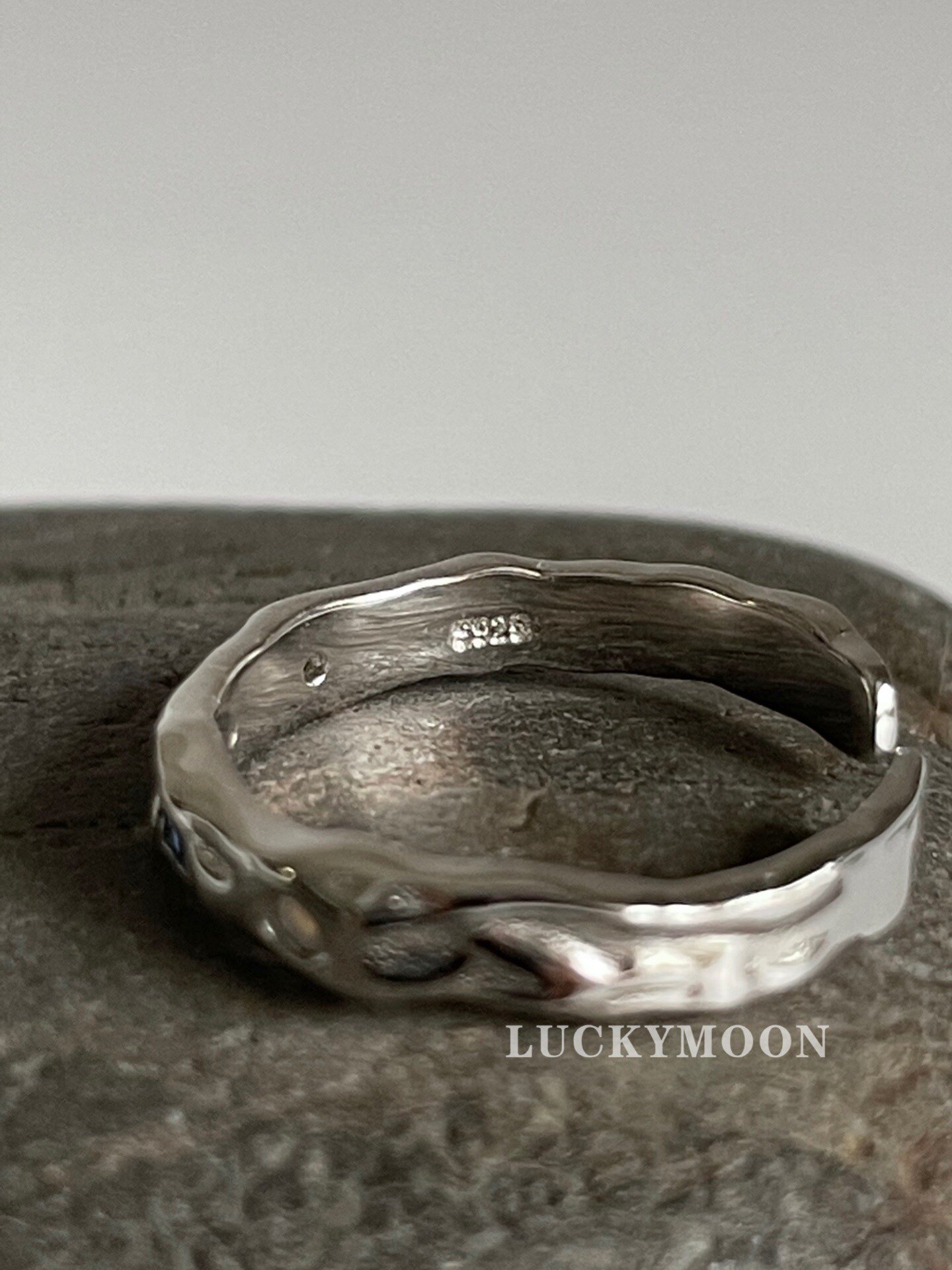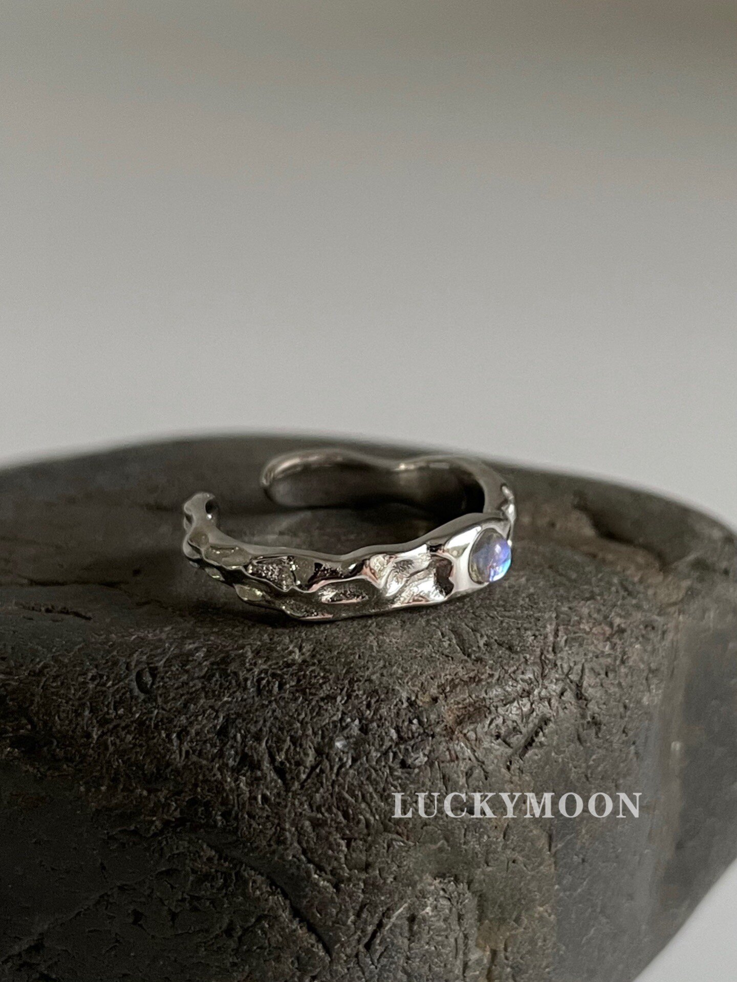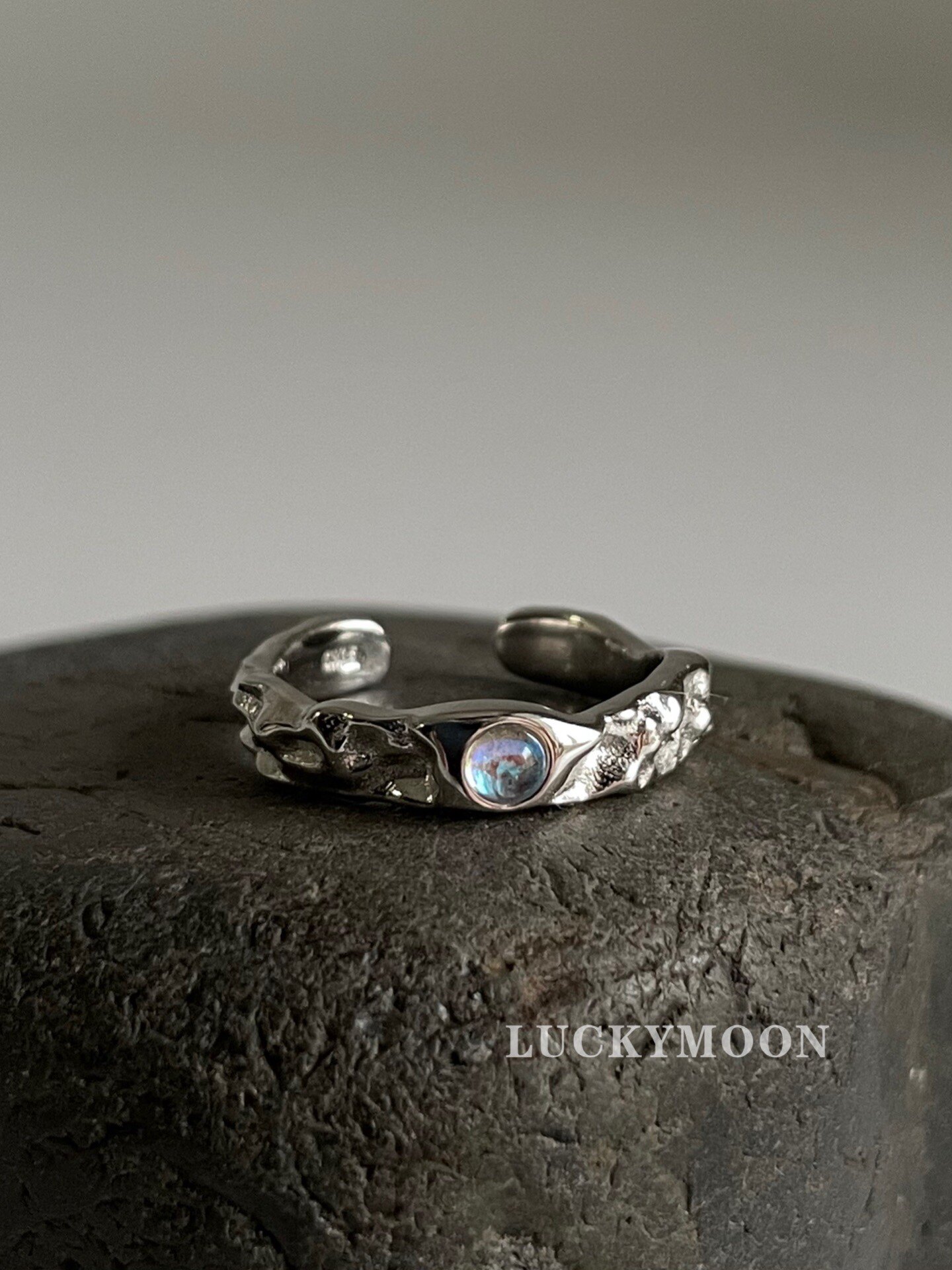 Luckymoon New Year's Gift Unisex Moonstone Texture Ring S925 All-Over Sterling Silver R049