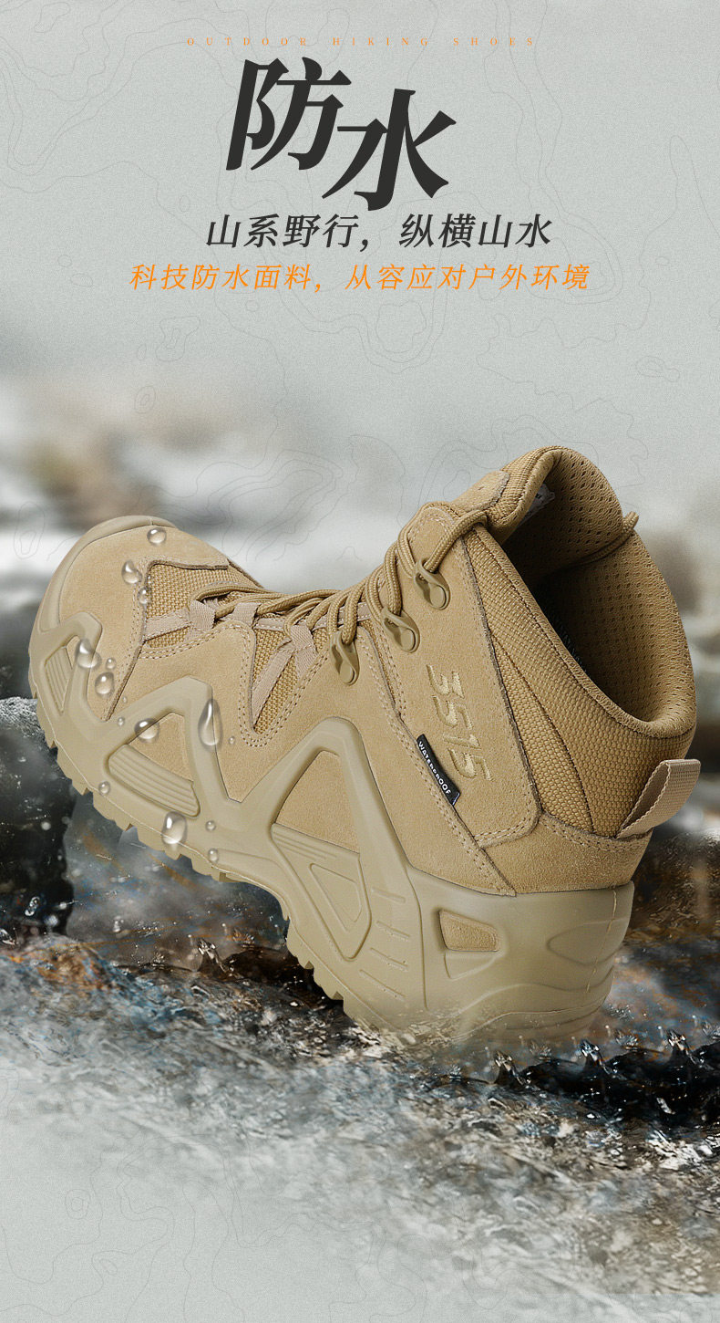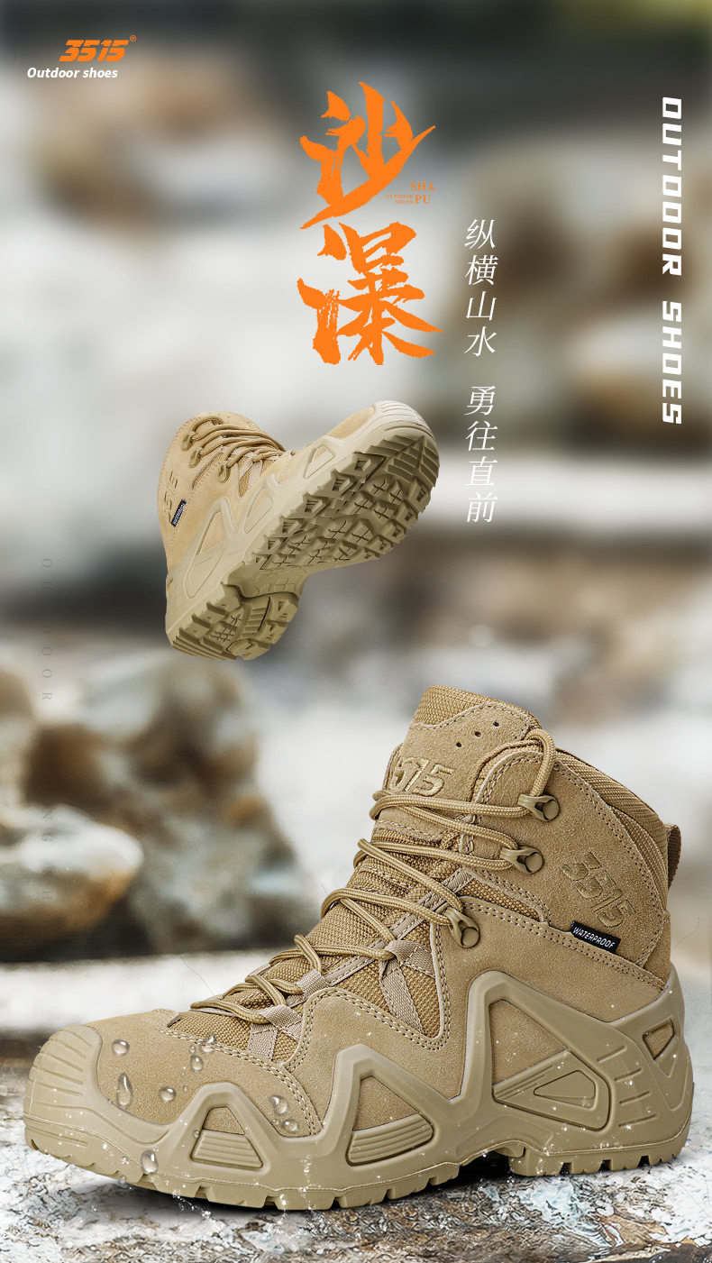 Jihua 3515 Strongman Outdoor Waterproof Hiking Shoes Men's Anti-Puncture Training Boots Wear-Resistant Non-Slip Hiking Shoes Desert Boots
