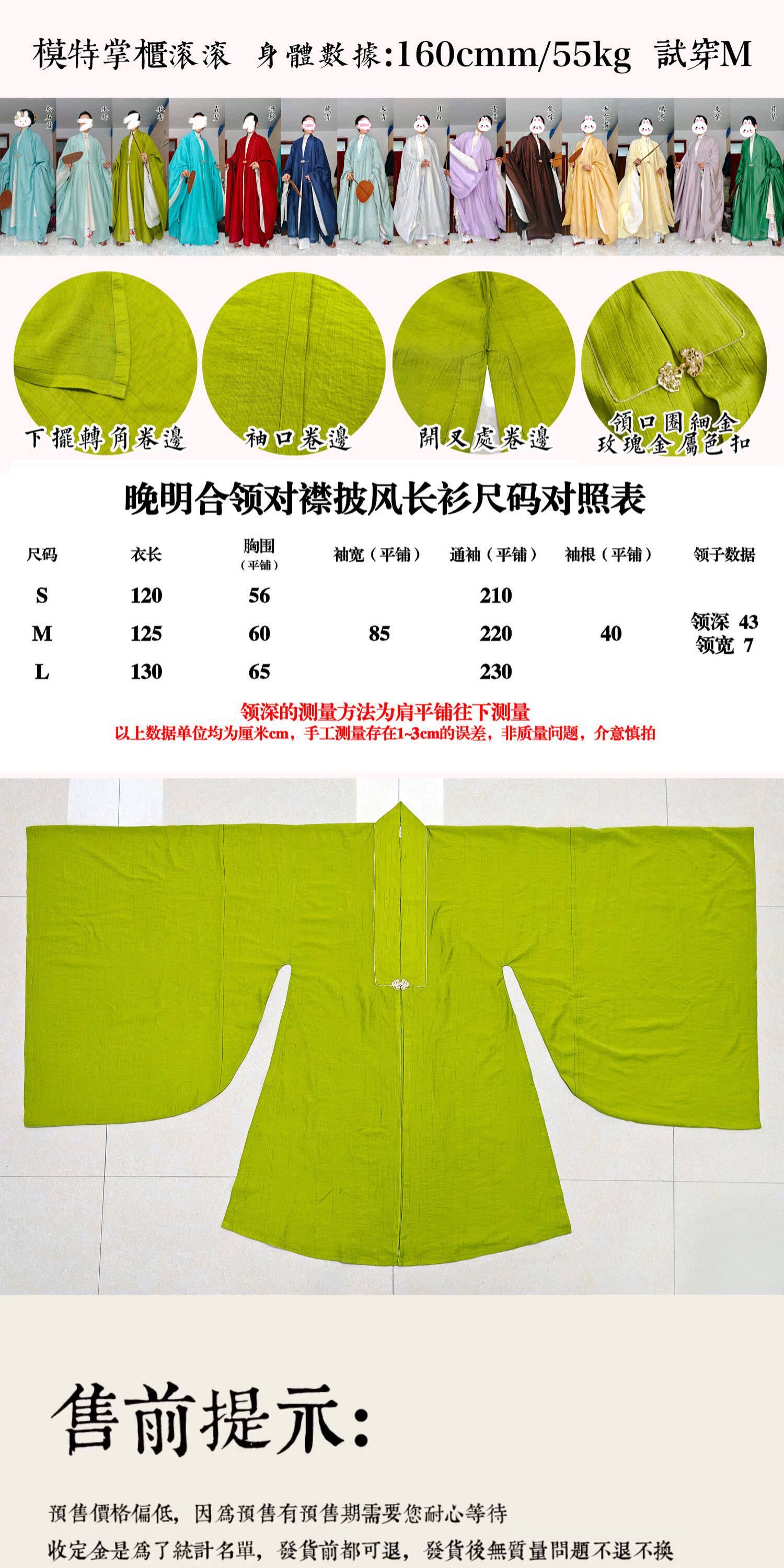 Late Ming Dynasty Large-Scale Production of Collared, Button-Front, Wide-Sleeved Long Robe, Cape, Tencel Hanfu, Ready-To-Wear for Spring, Summer, and Autumn