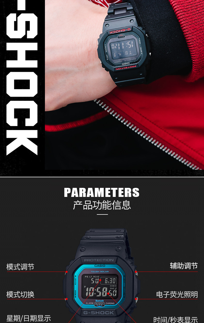 Casio Watch Men's Radio Wave Solar Bluetooth Waterproof Quartz G-Shock Sports Men's Watch Gw-B5600Ar
