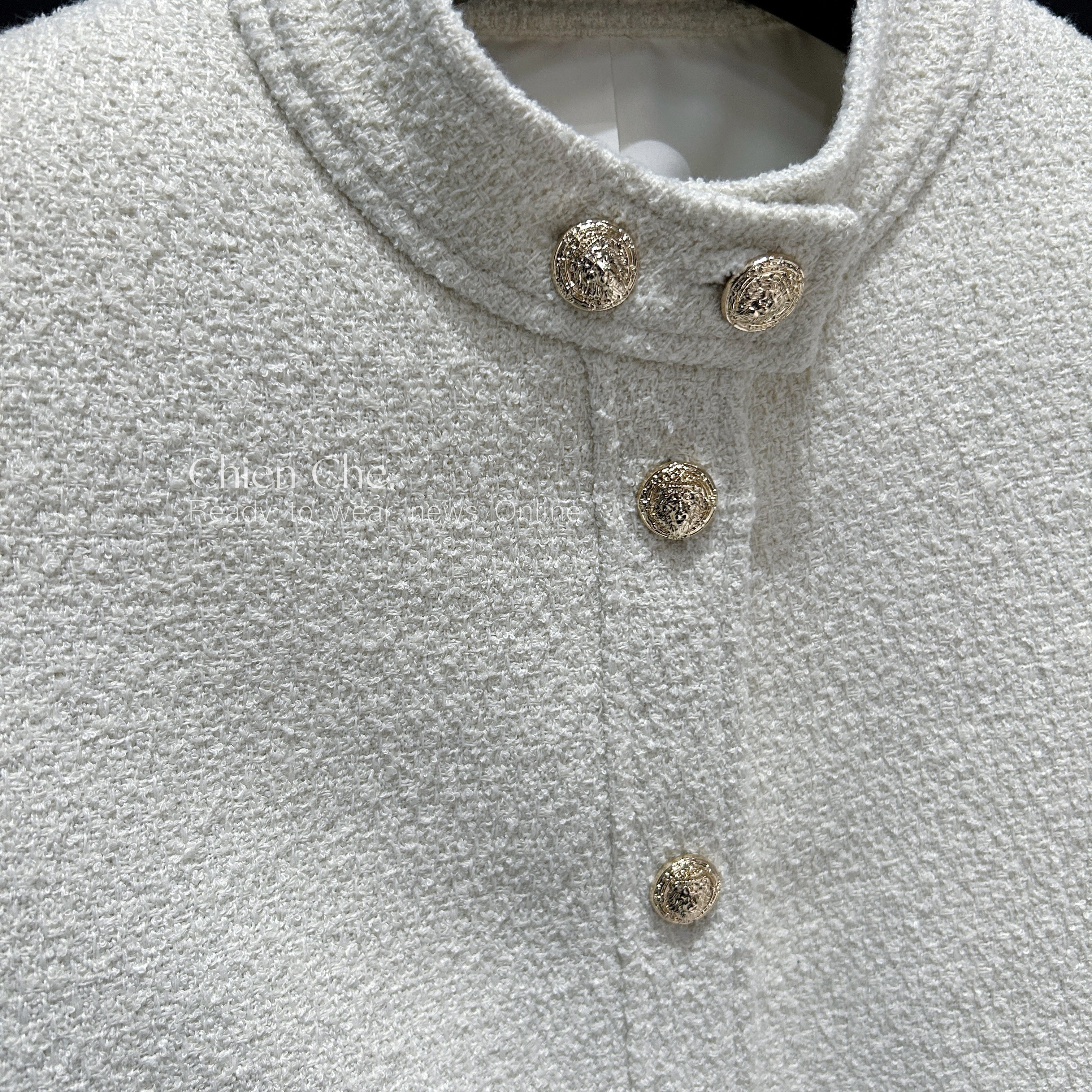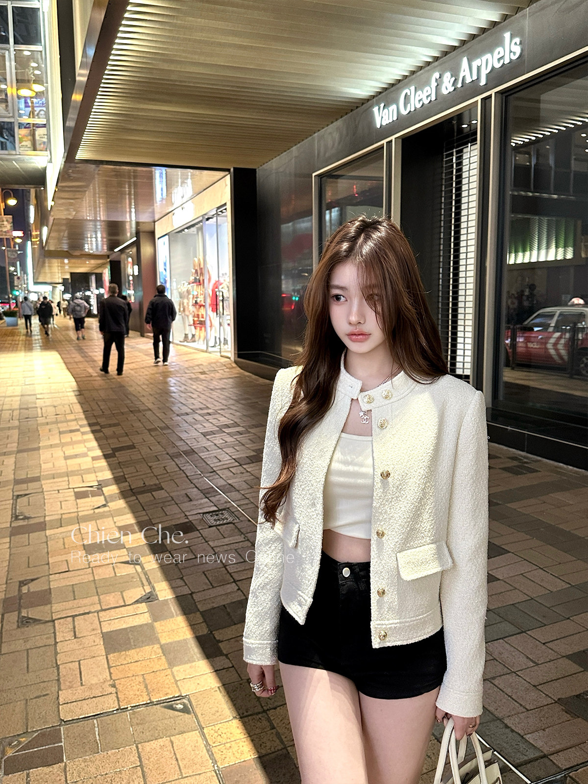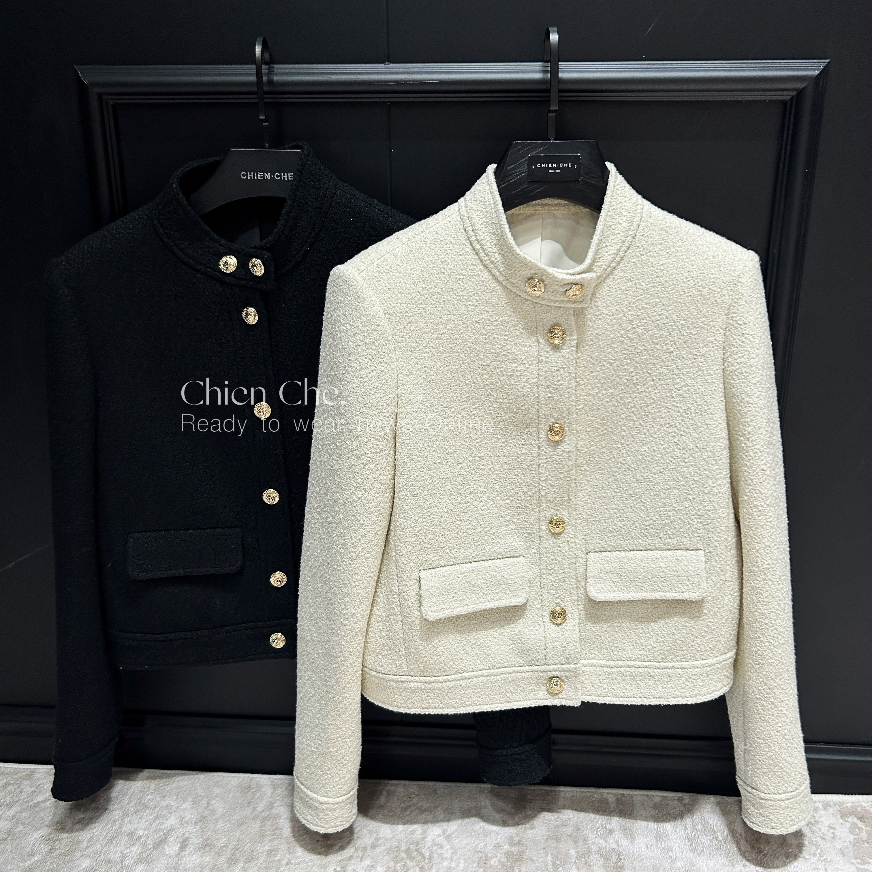 Chien's White Chanel-Style Short Jacket for Women, New Spring and Autumn Model, High-End and Elegant Stand-Up Collar Top
