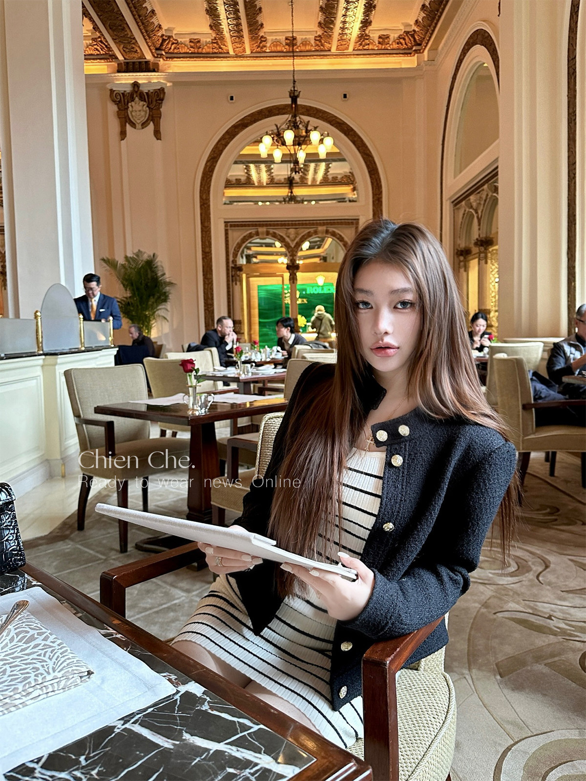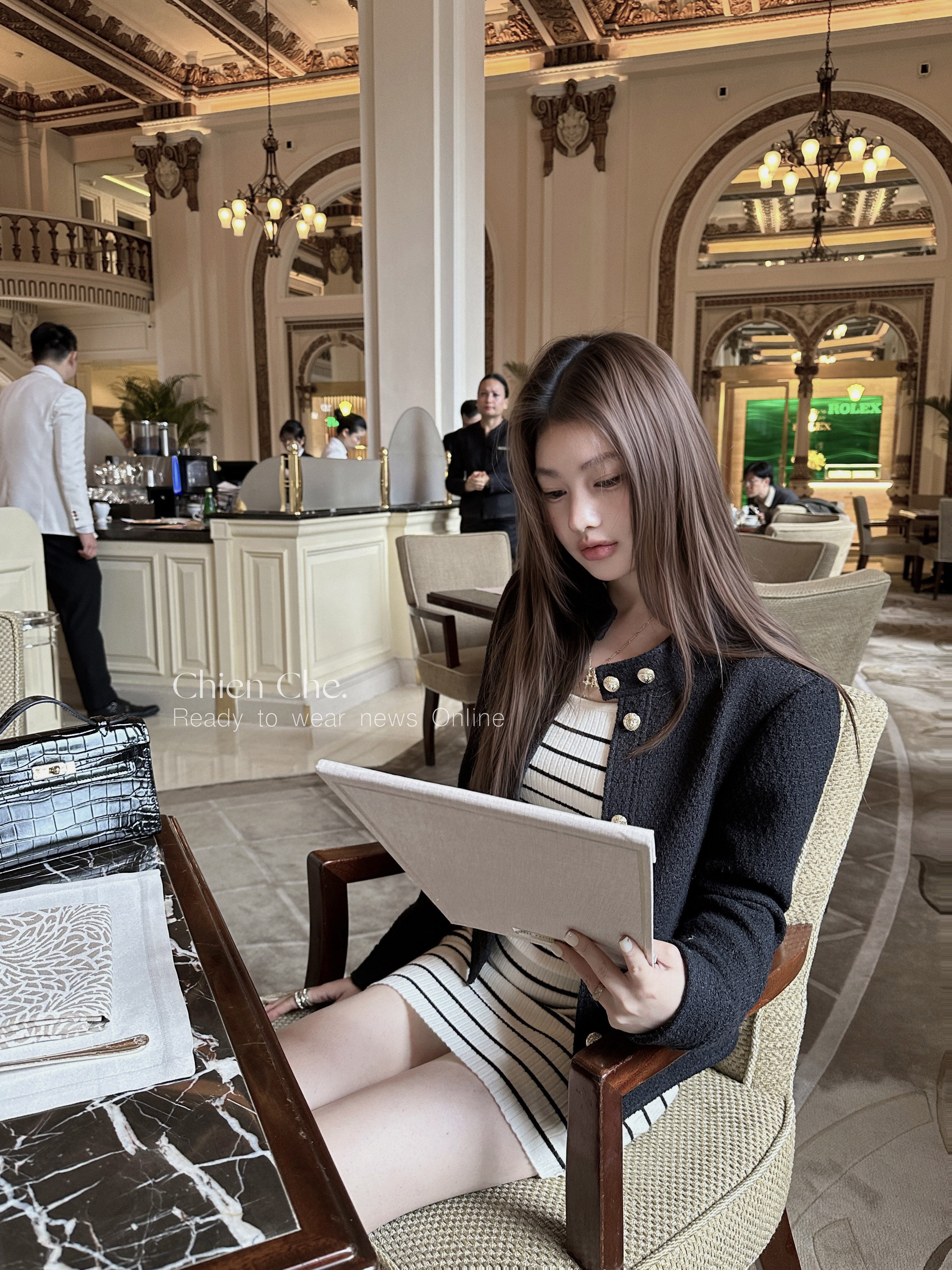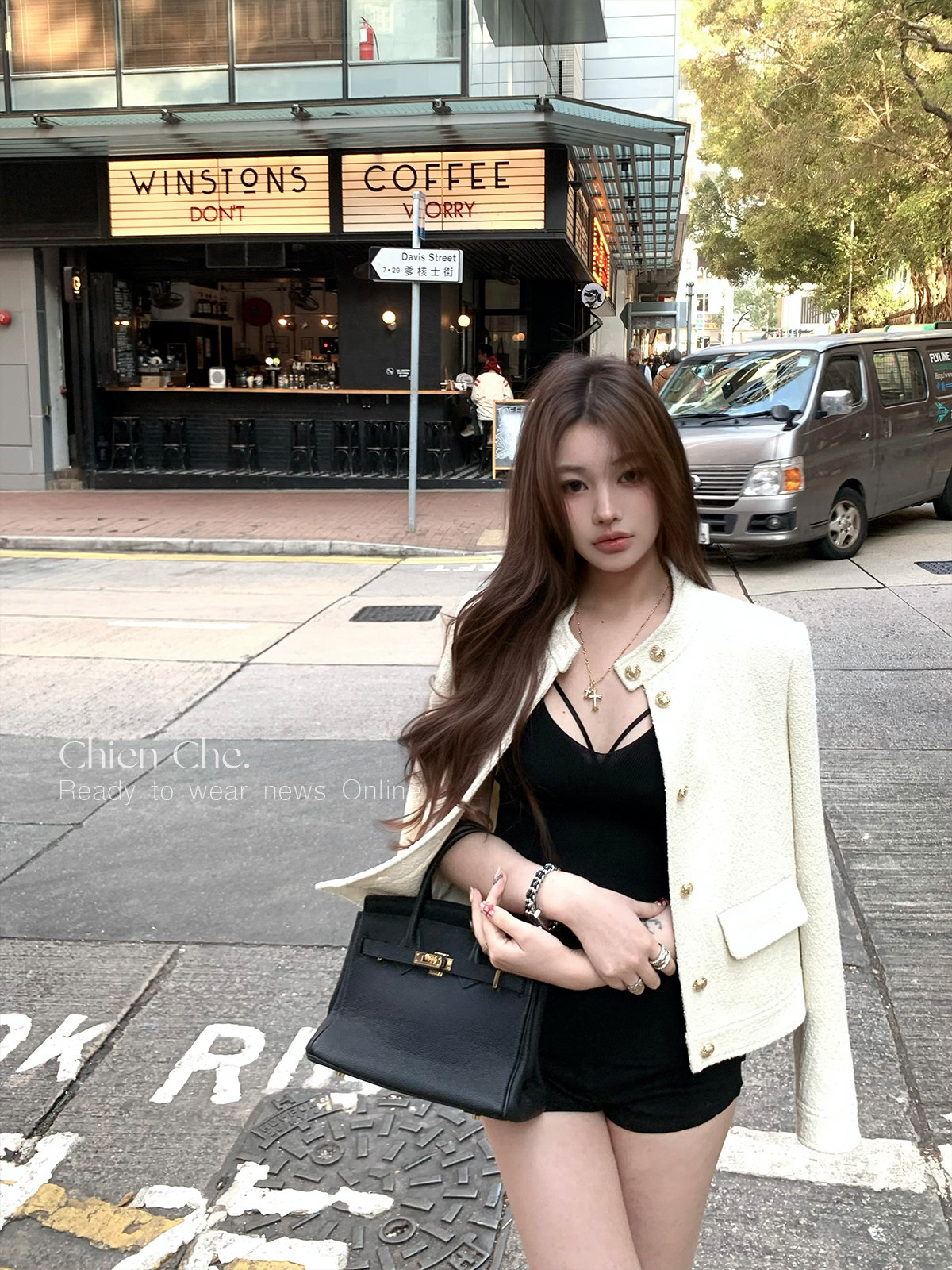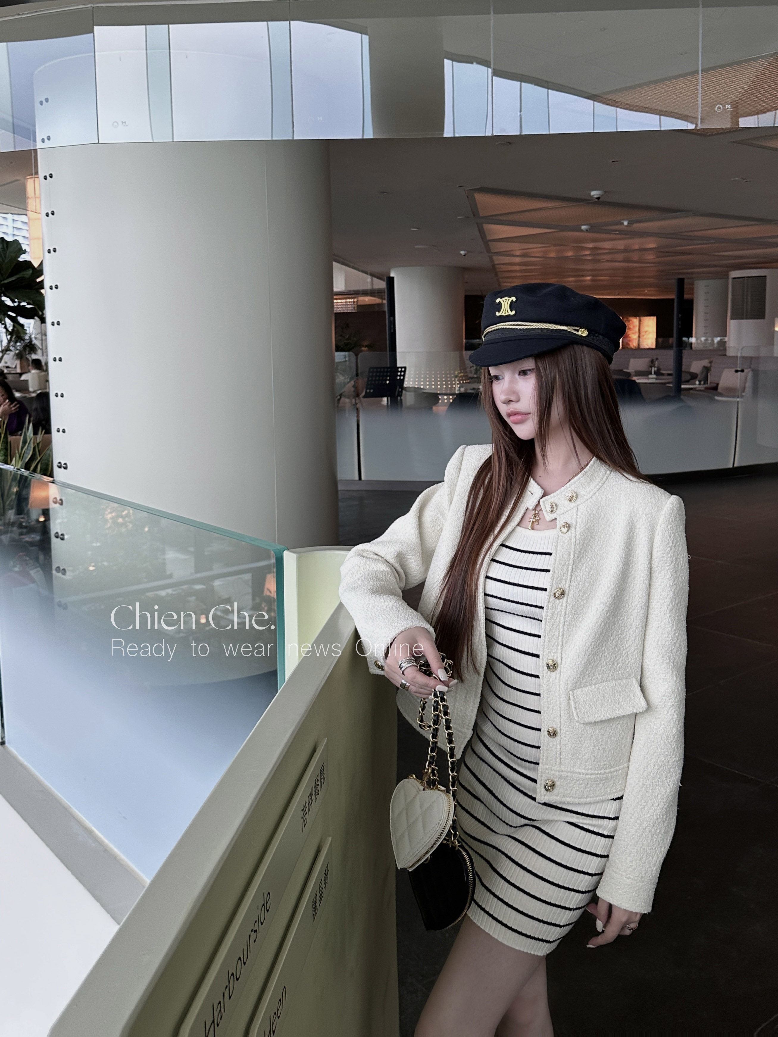 Chien's White Chanel-Style Short Jacket for Women, New Spring and Autumn Model, High-End and Elegant Stand-Up Collar Top