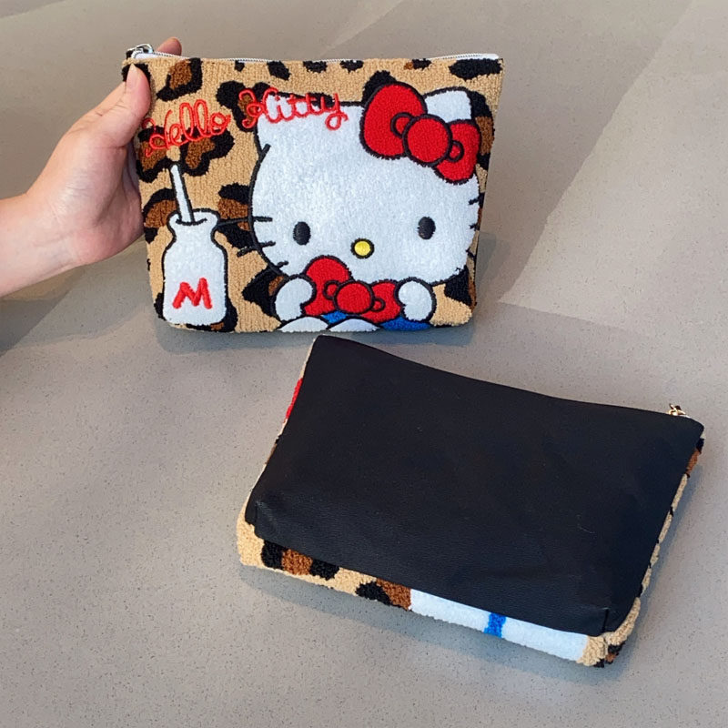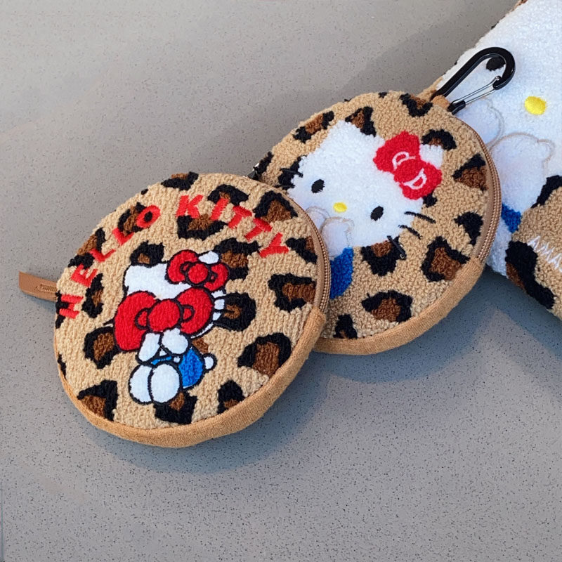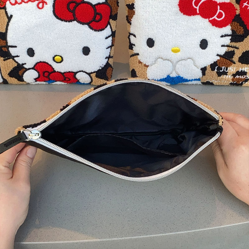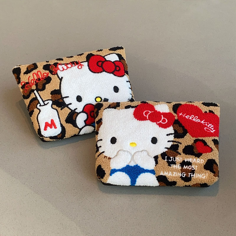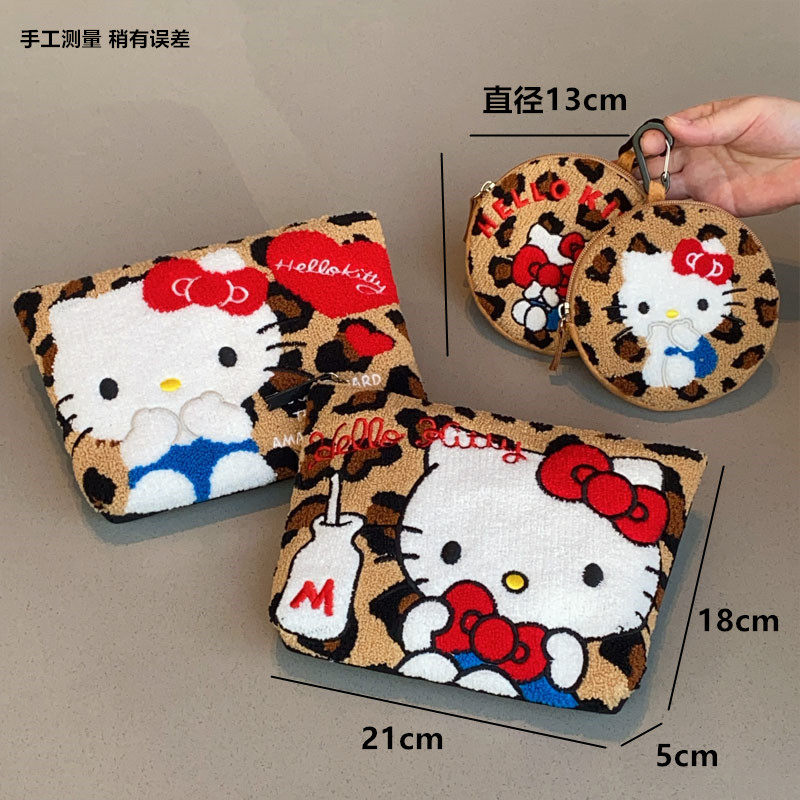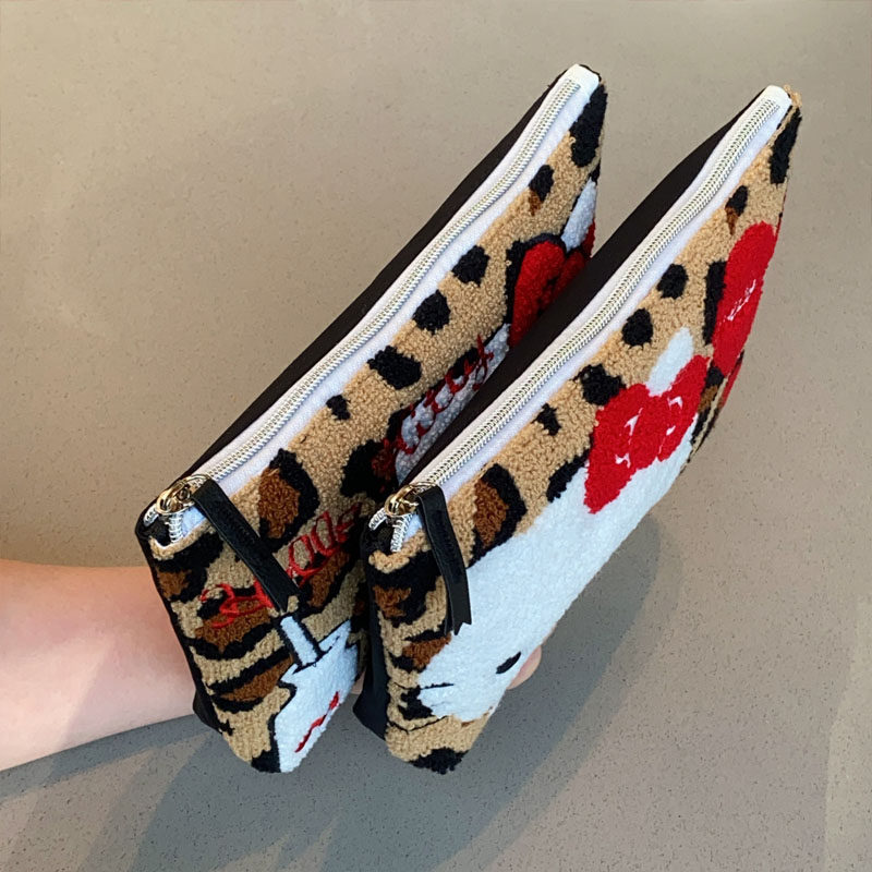 Japanese-Style Cartoon Cat Leopard Print Plush Embroidered Clutch Bag Cosmetic Bag Cute Small Hanging Bag Key Earphone Storage Bag