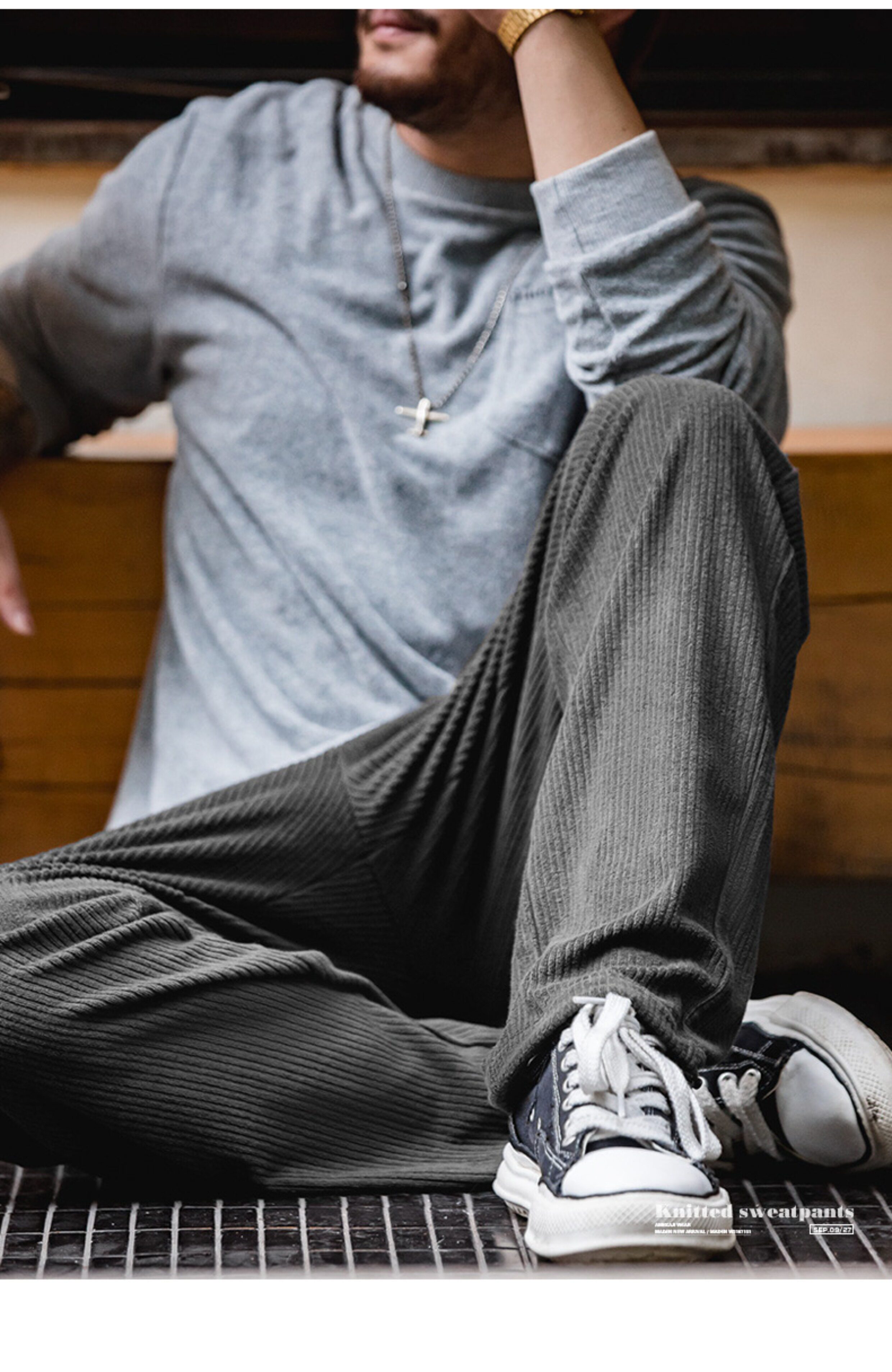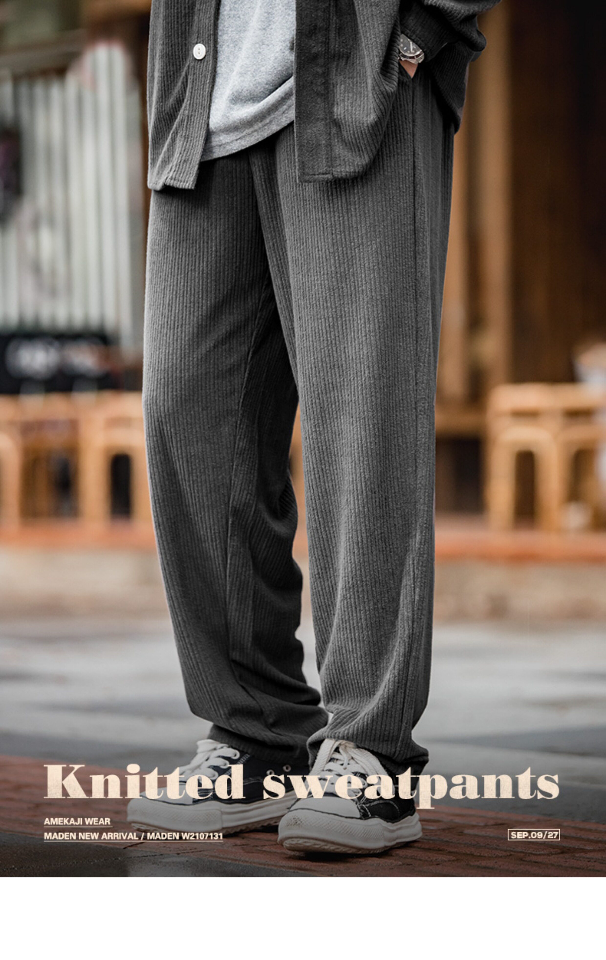 Madden Workwear American Retro Knit Dark Gray Elastic Waist Drawstring Sports Straight Wide-Leg Long Pants for Men Spring