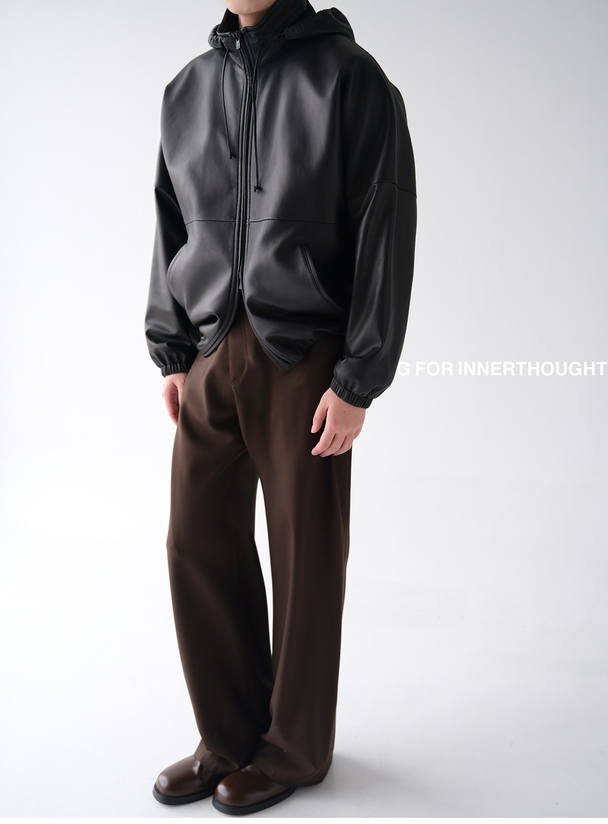 G for Innerthought Turkish Ultra-Thin Soft Lambskin Hooded Silhouette Leather Jacket Cotton Jacket