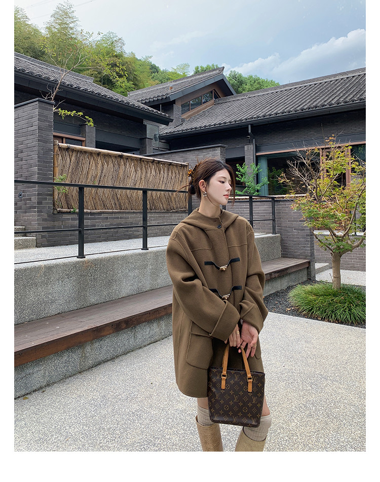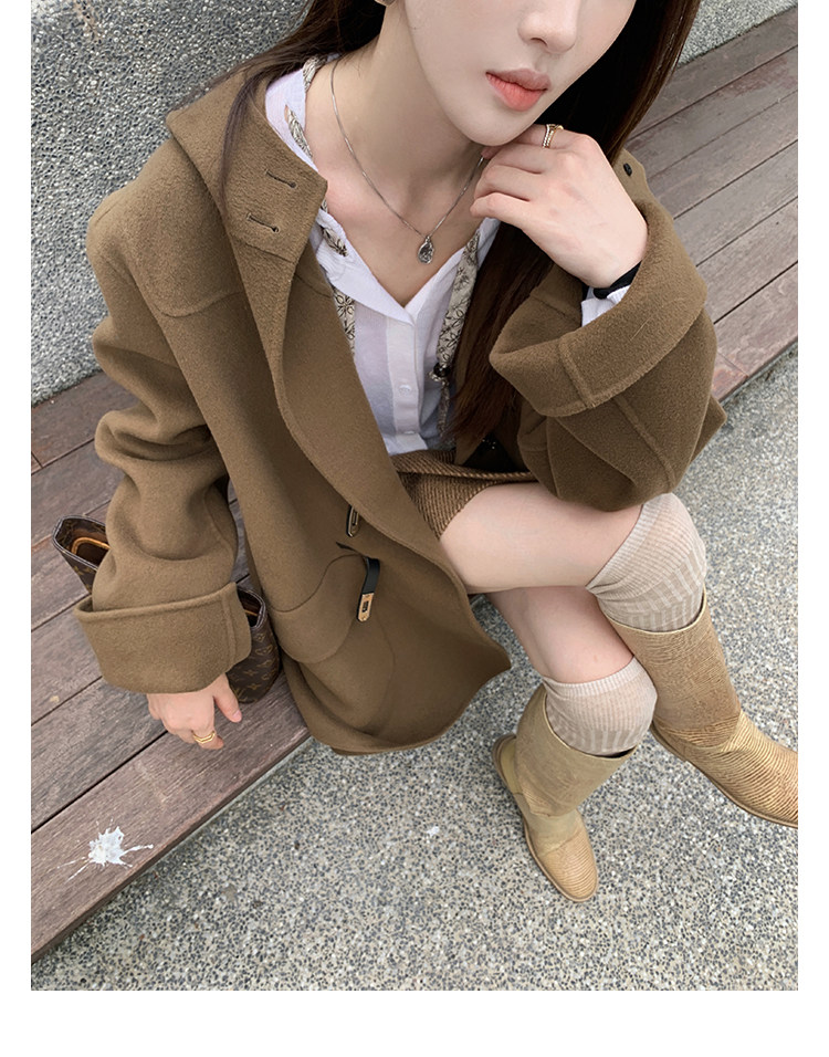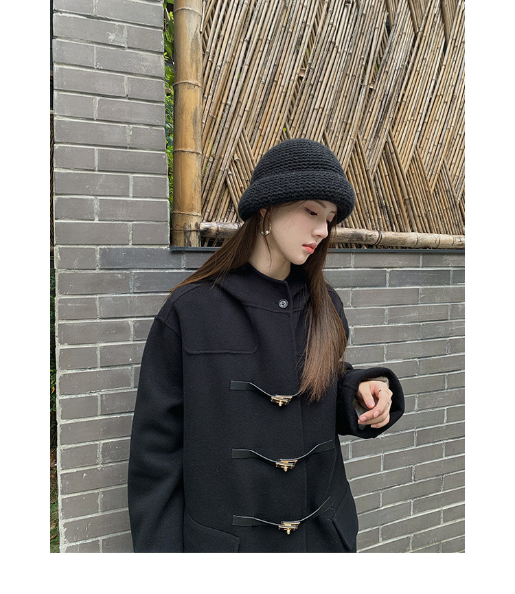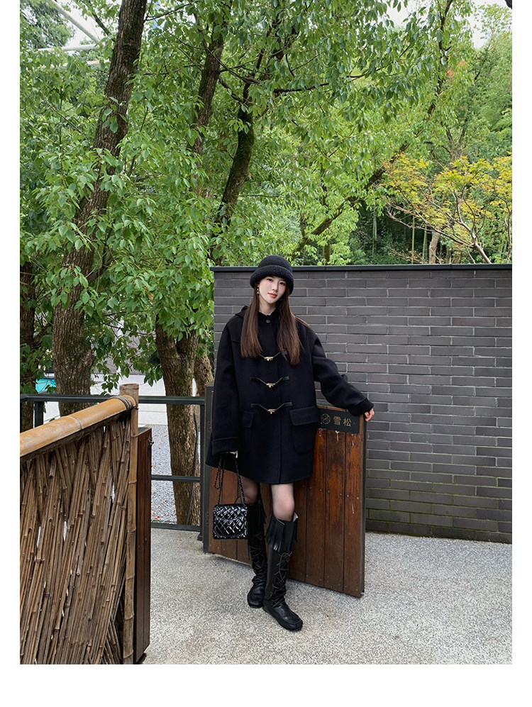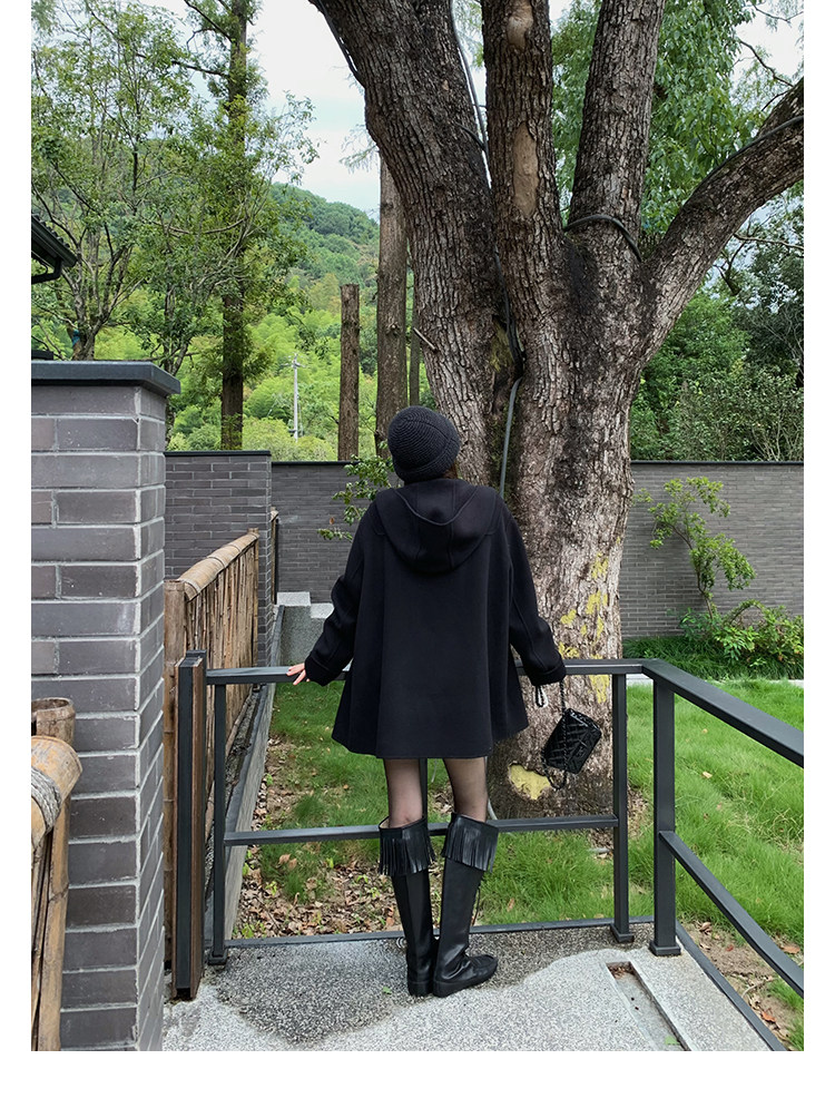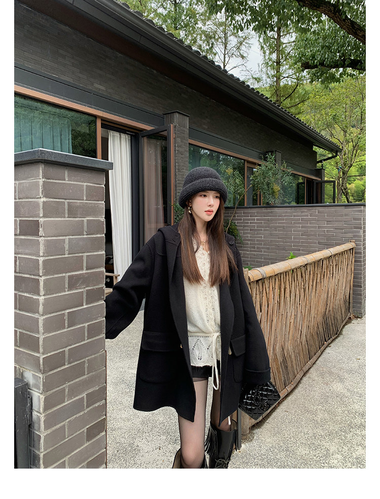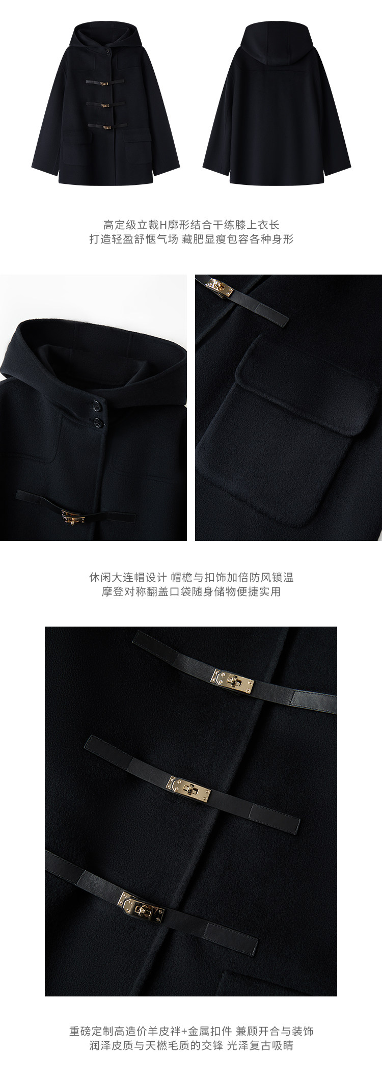 Asm Anna Winter High-End Short Double-Sided Cashmere Wool Coat Black Hooded Gold Buckle Thick Woolen Coat for Women