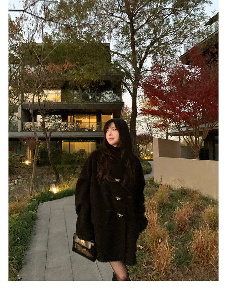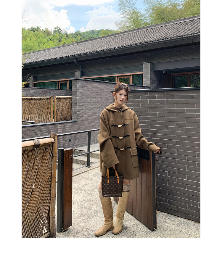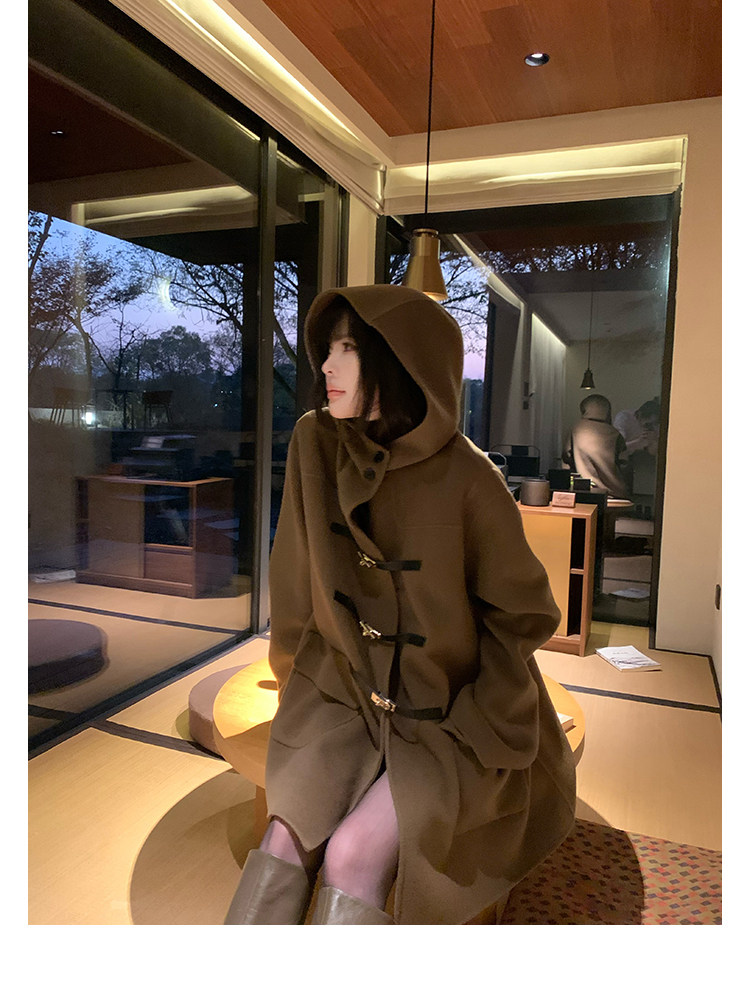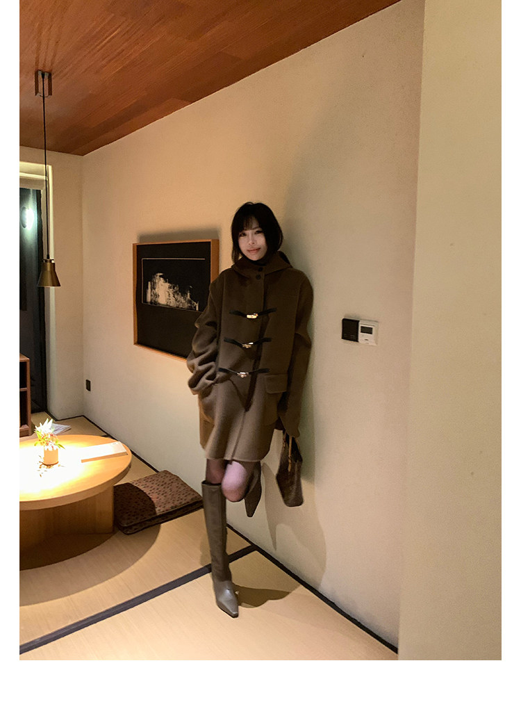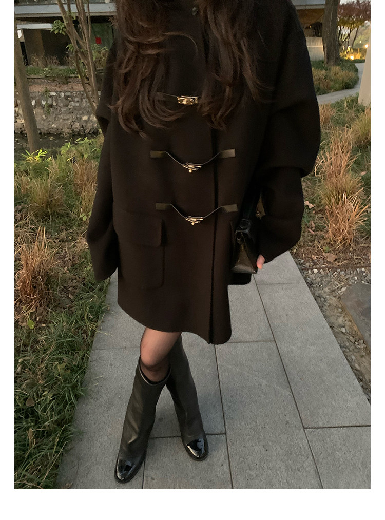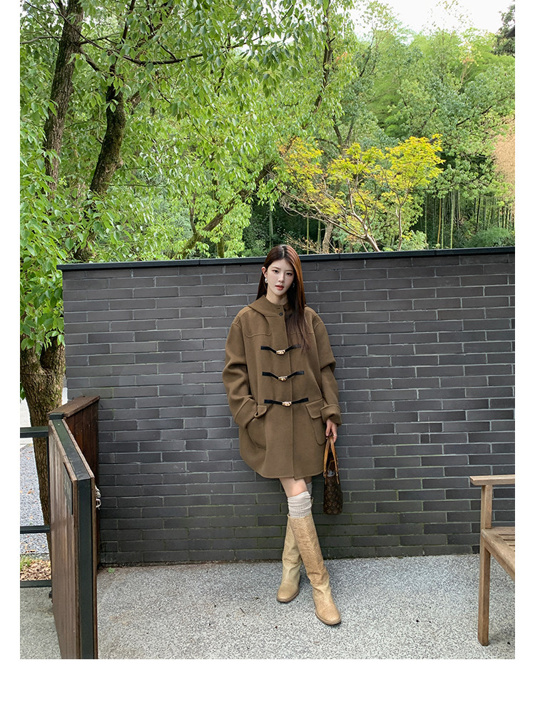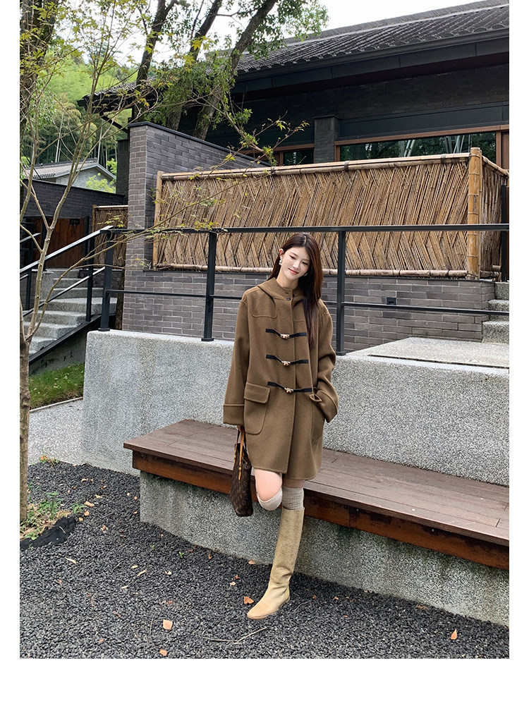 Asm Anna Winter High-End Short Double-Sided Cashmere Wool Coat Black Hooded Gold Buckle Thick Woolen Coat for Women