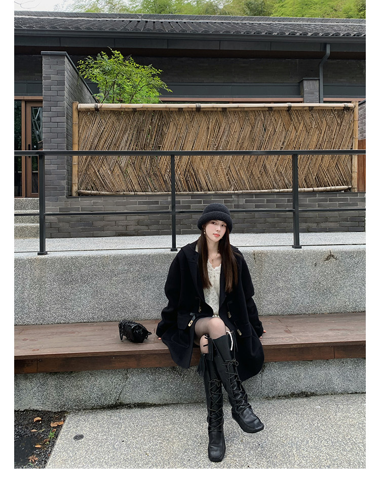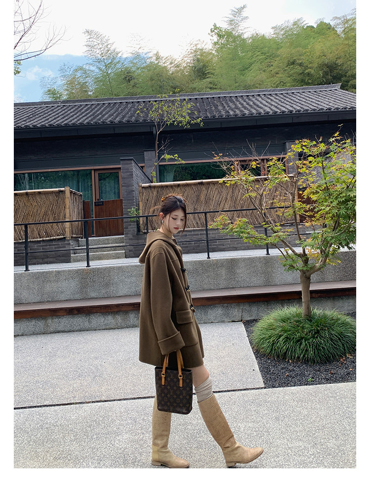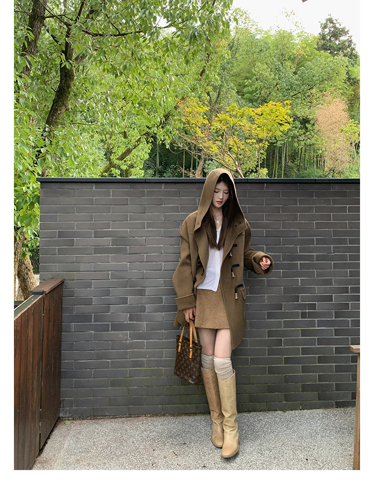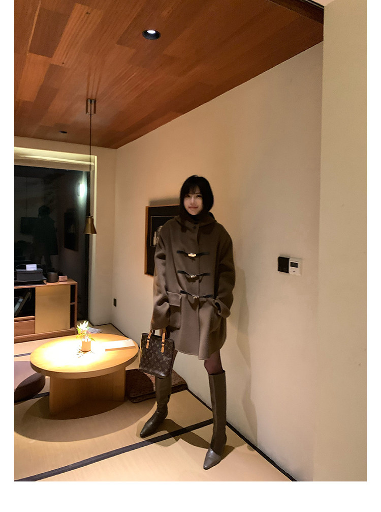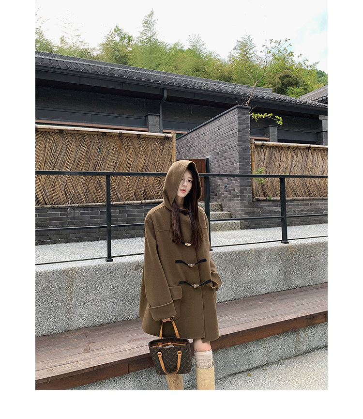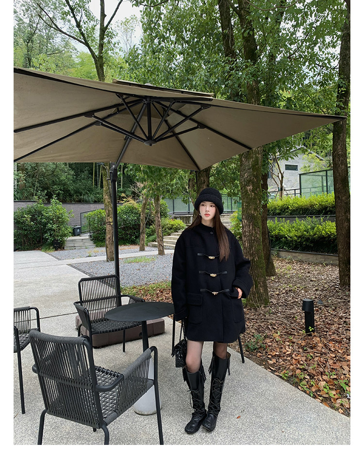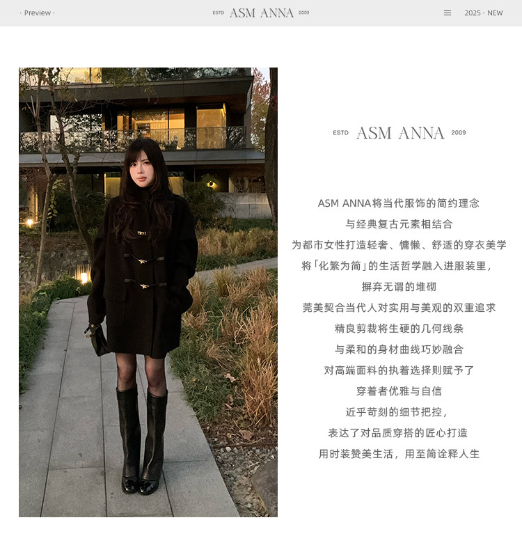 Asm Anna Winter High-End Short Double-Sided Cashmere Wool Coat Black Hooded Gold Buckle Thick Woolen Coat for Women