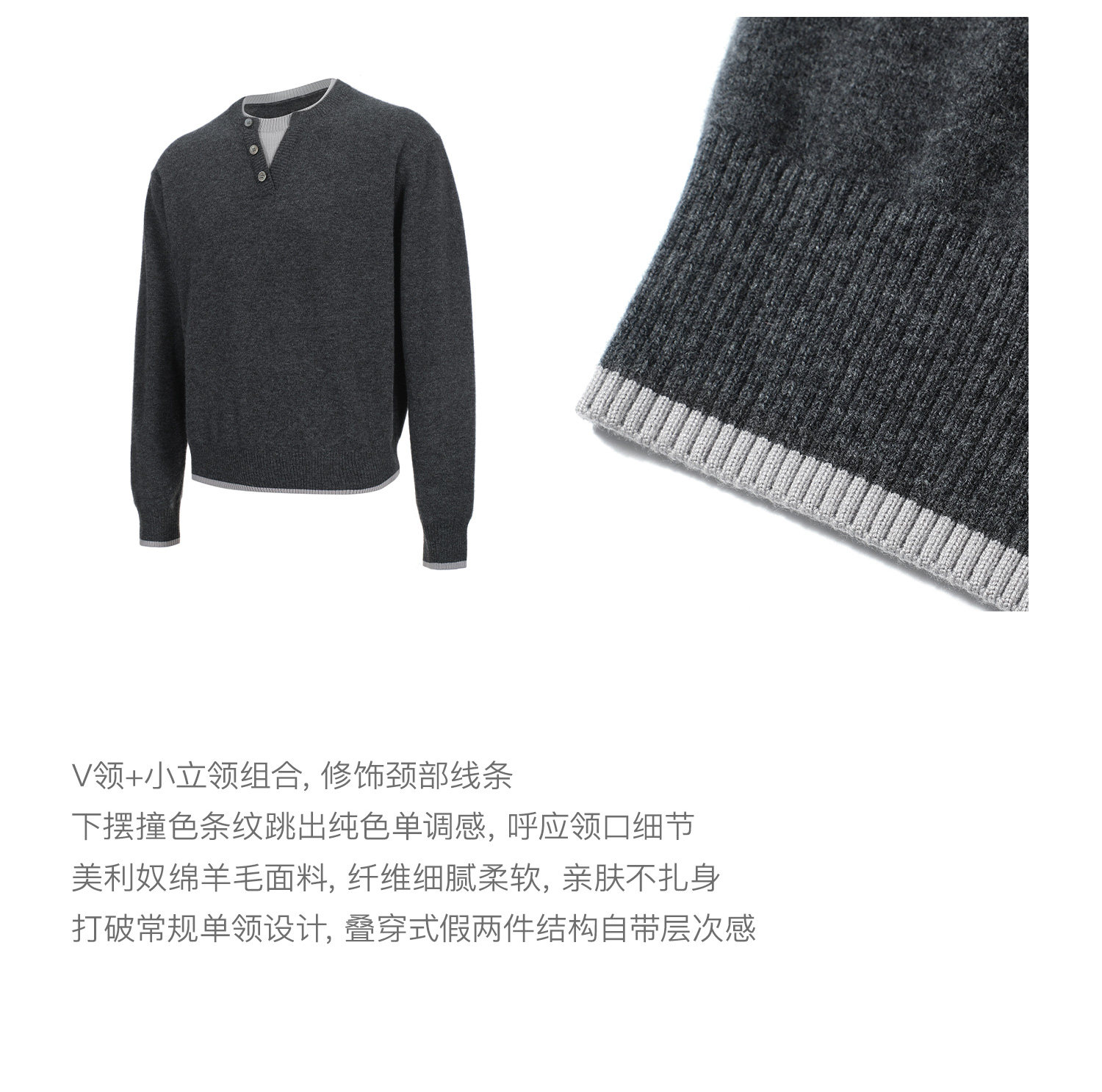 100% Sheep Wool Henry Collar Knit Sweater, Versatile for Commuting, Same Style as Terraincognita25Awnico