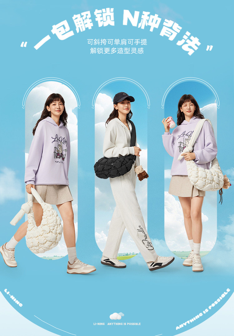 Li-Ning Nai Fu Bag New Model for Men and Women Official Authentic Outdoor Casual Cloud Strap Crossbody Bag Sports Shoulder Bag