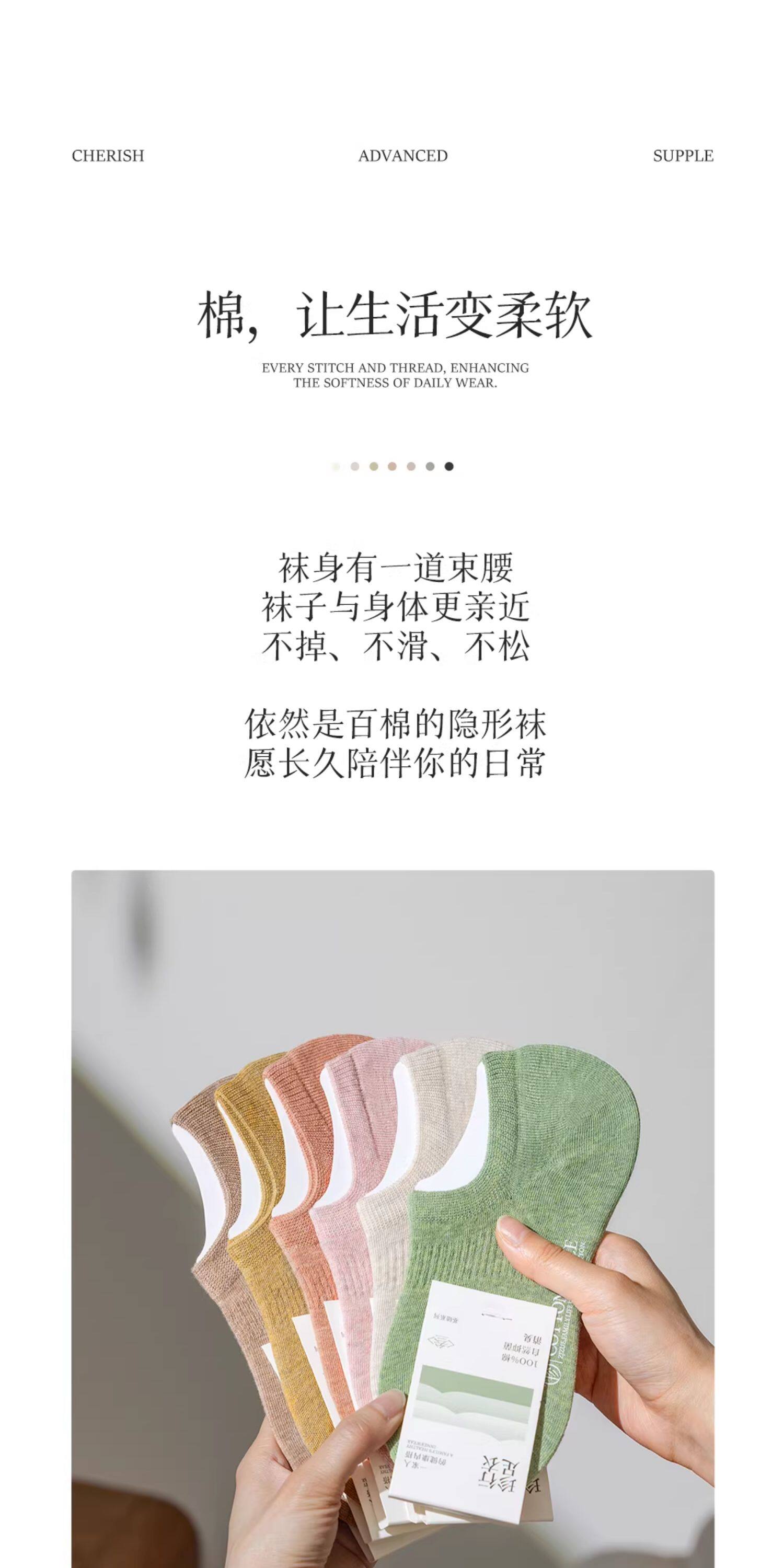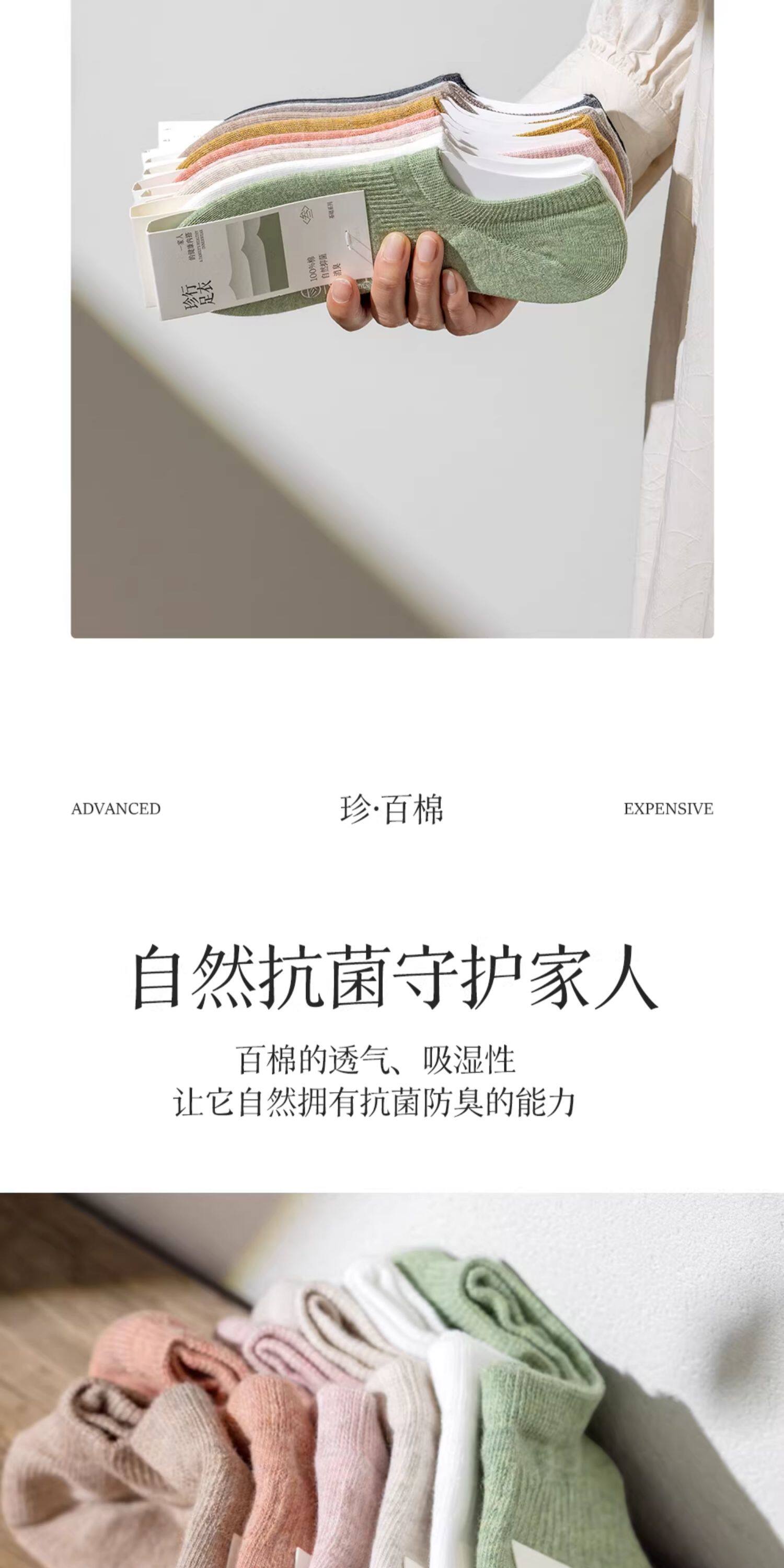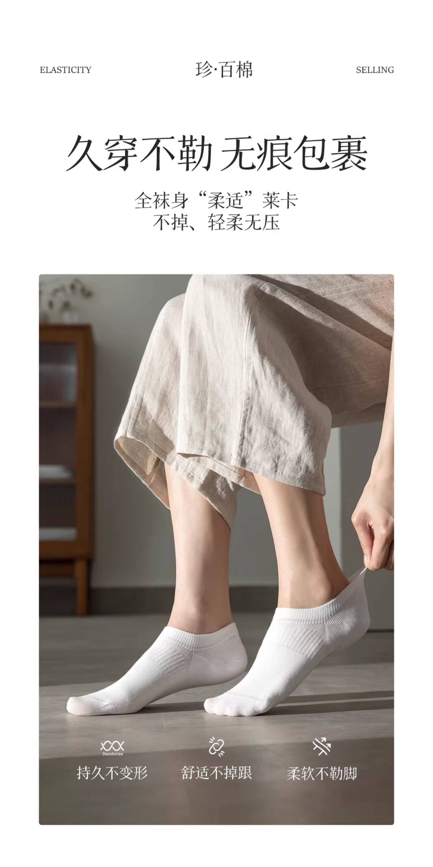100% Cotton Socks for Women, Pure Cotton Autumn No-Show Socks, Sweat-Absorbent, Non-Slip, No Heel Drop, All-Cotton Invisible Mesh Thin Short Socks