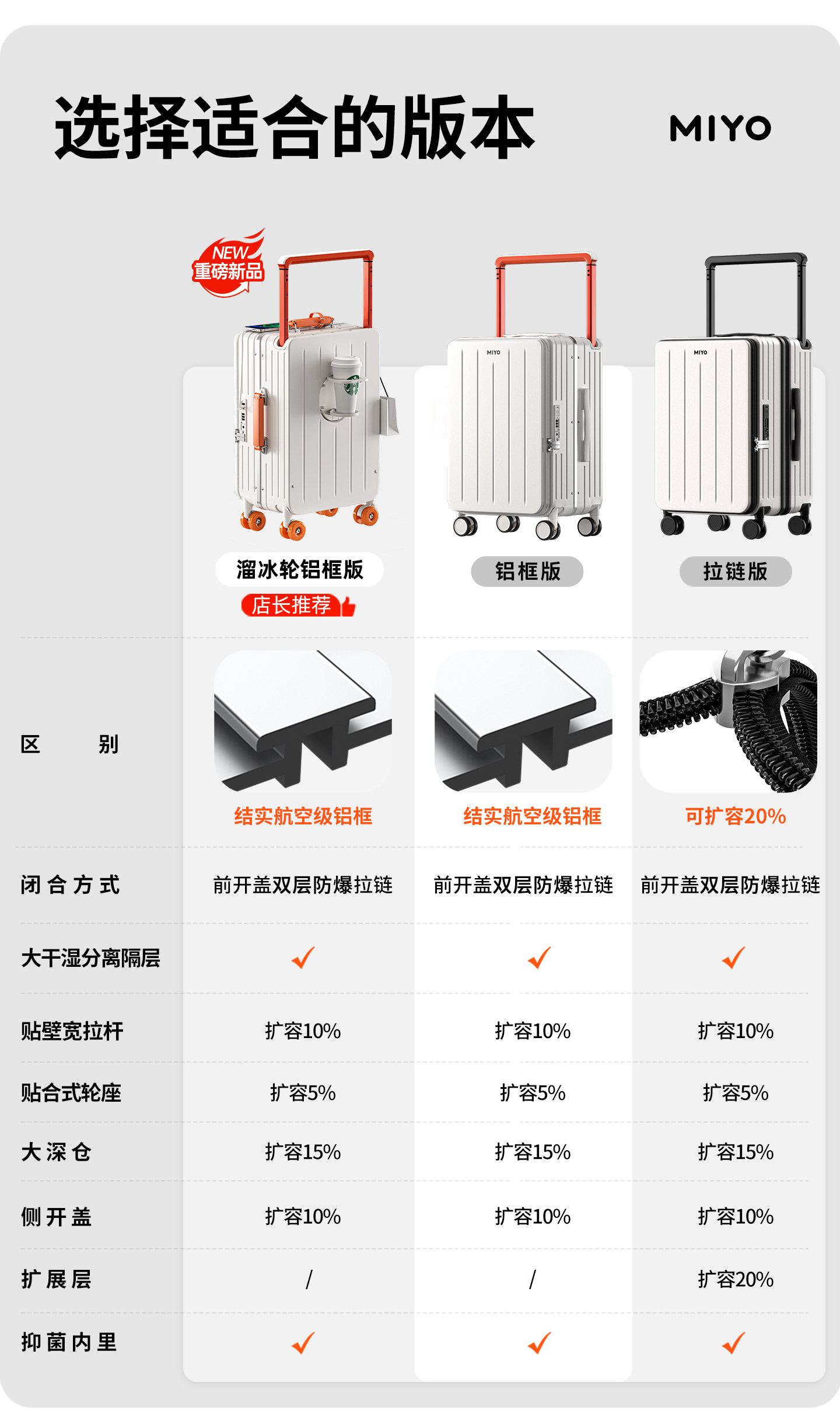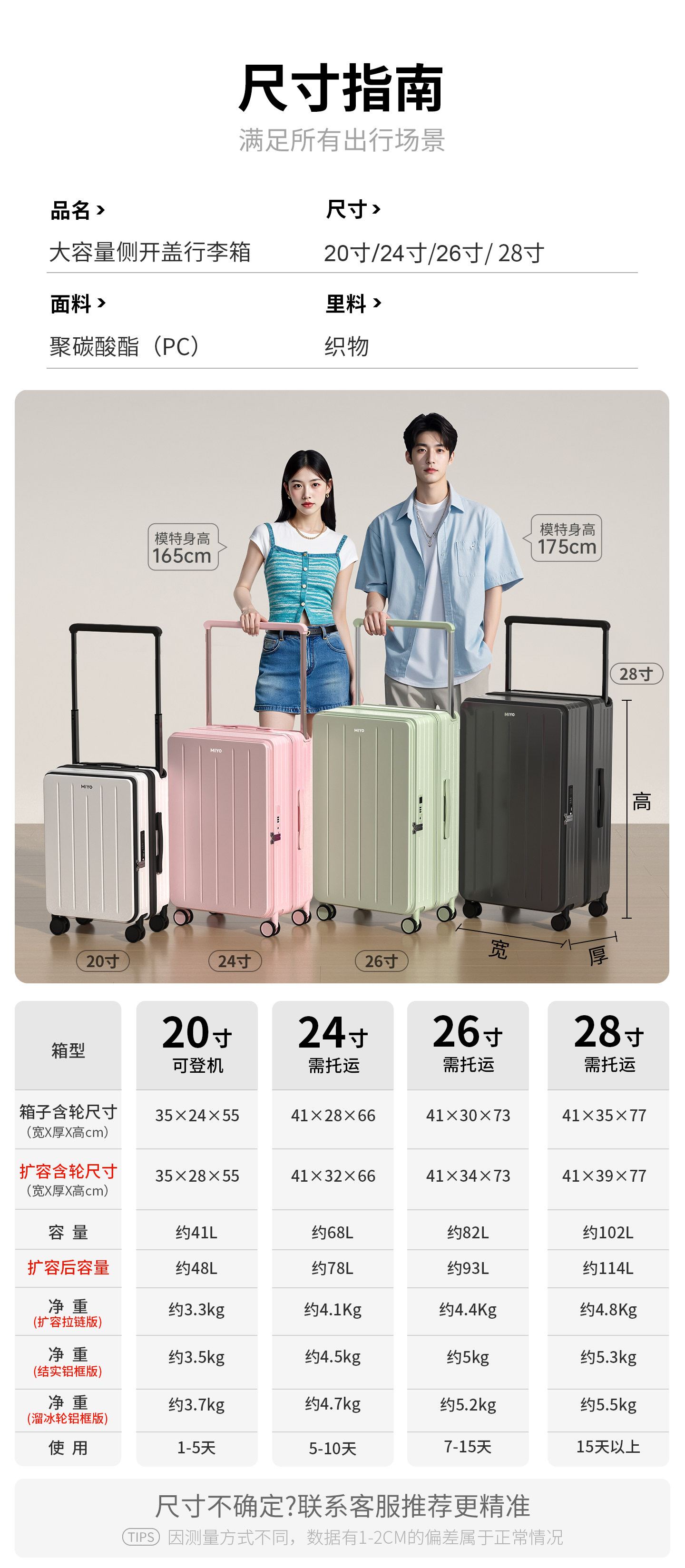Miyo Suitcase 2026 New Model Side-Opening Cover Boarding Expandable Multi-Functional Large Capacity Wide Handle Hot-Selling Travel Suitcase