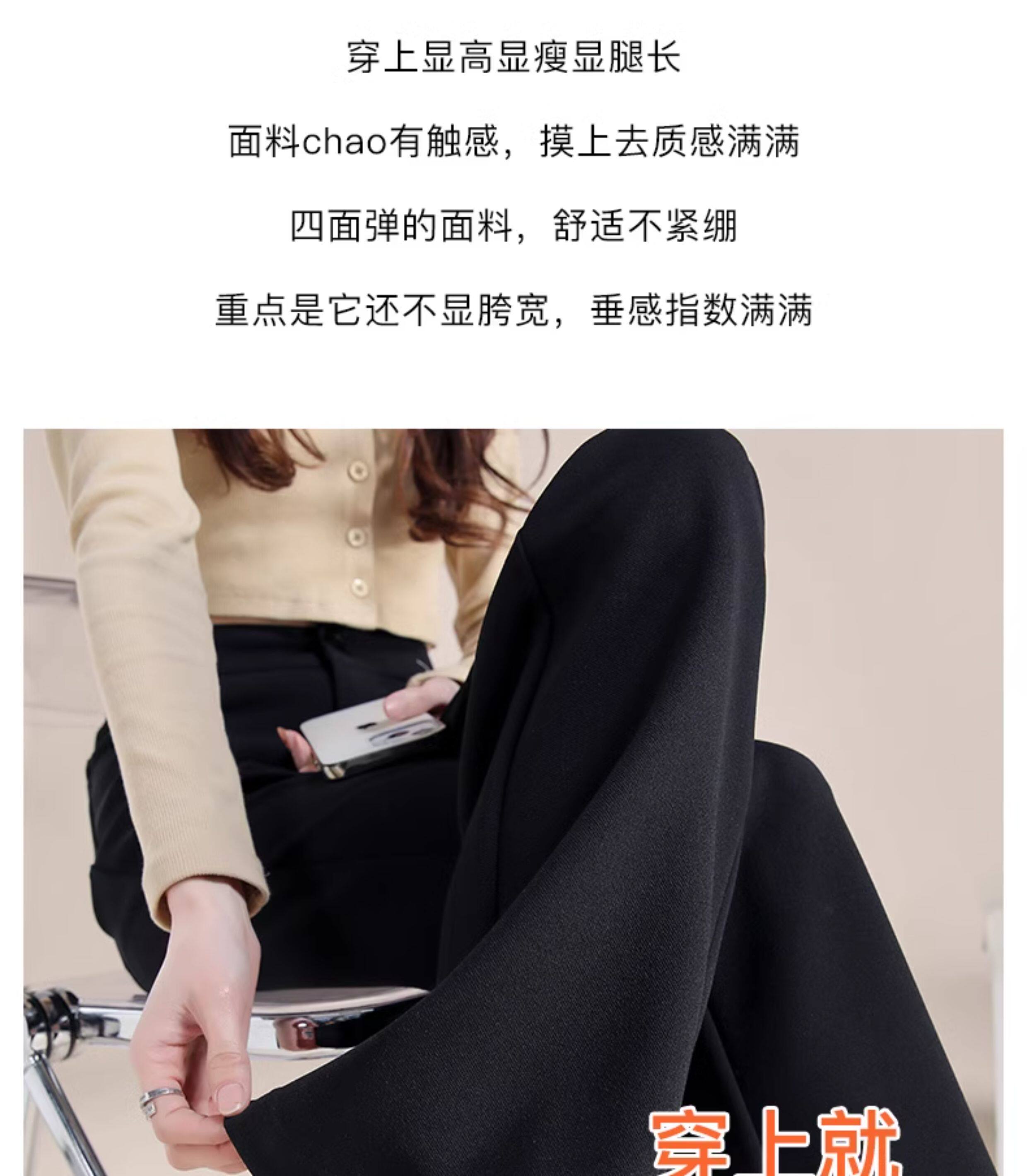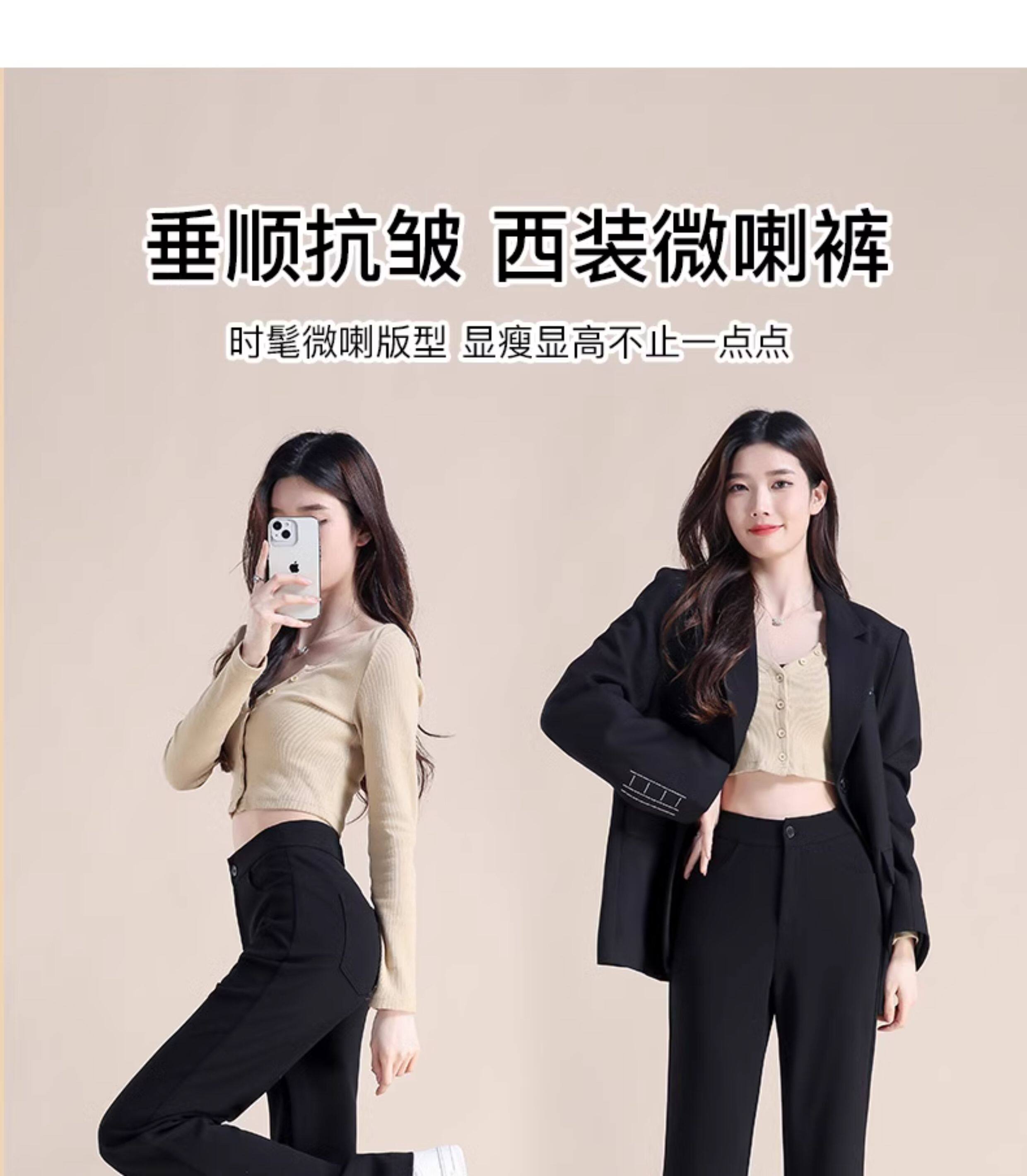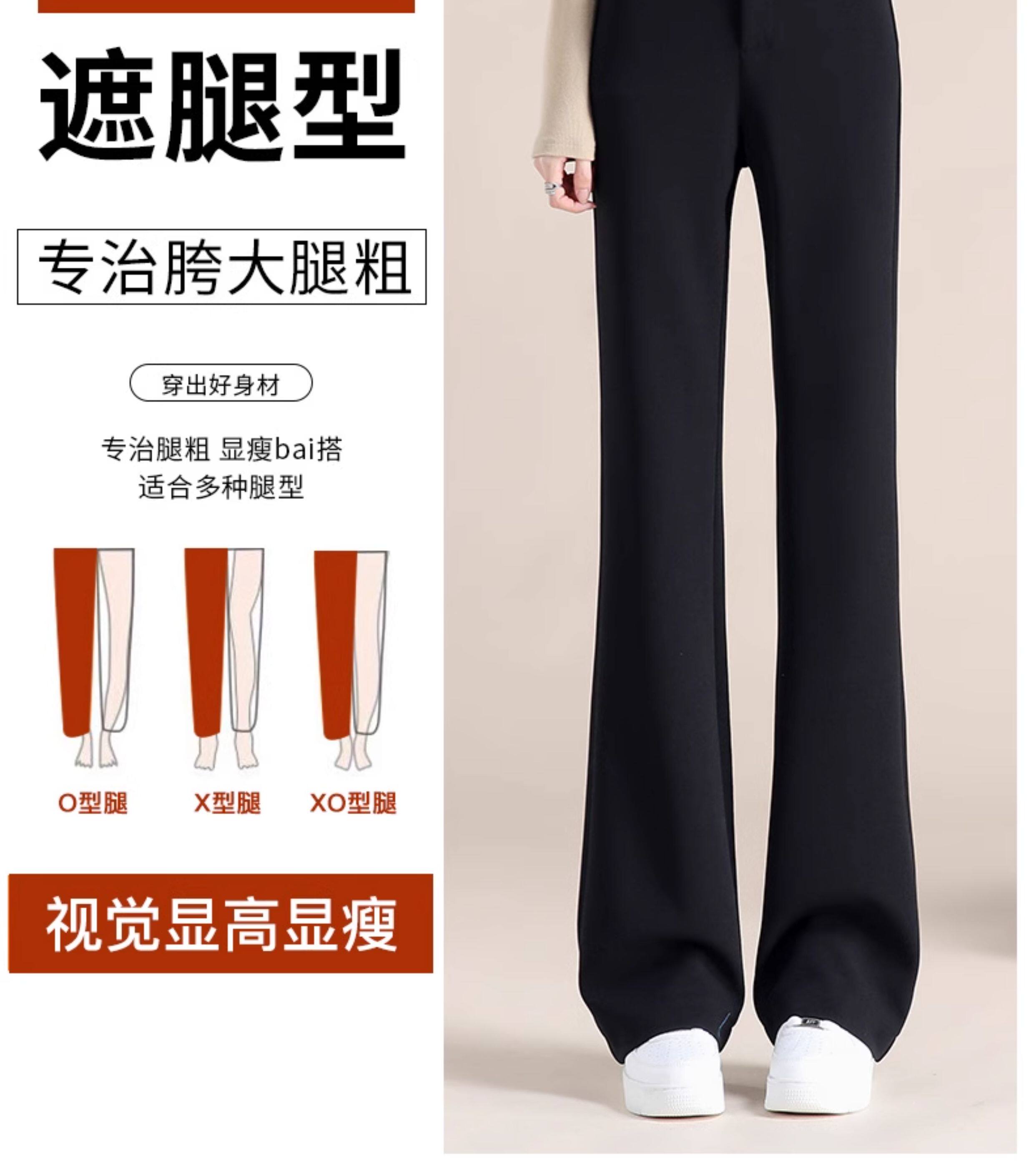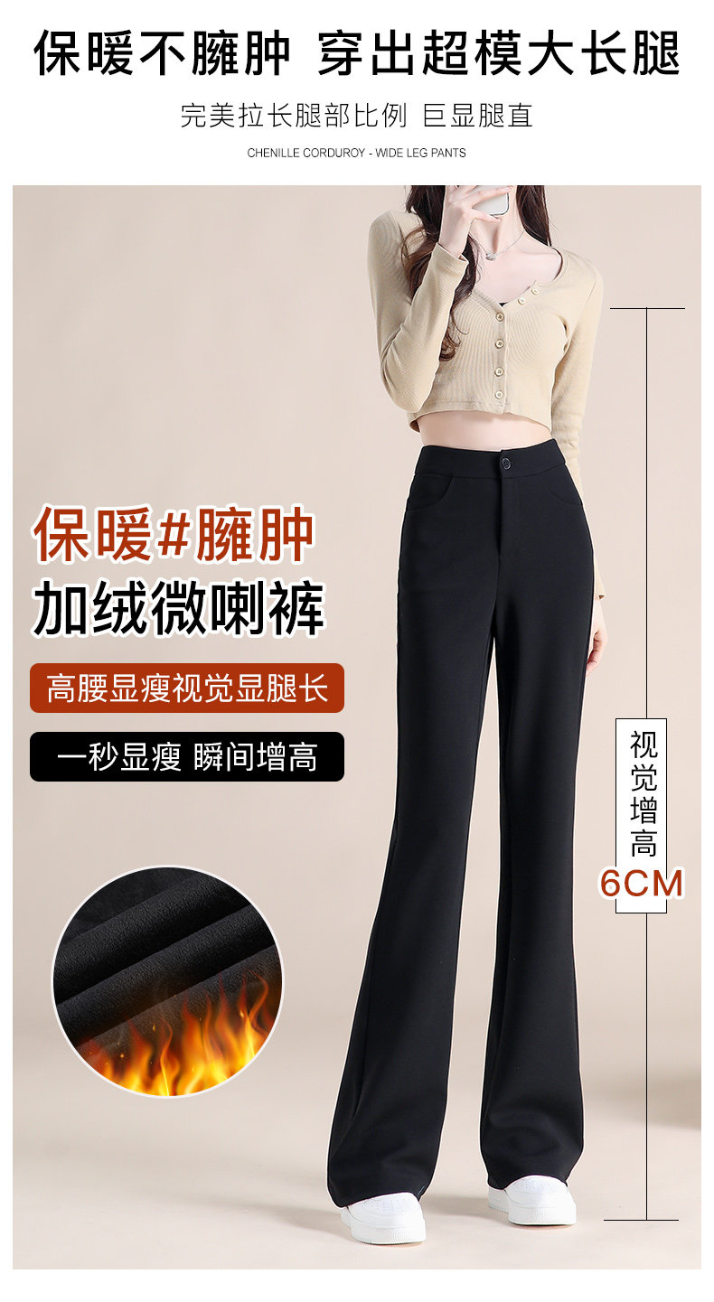 Black Non-Tight-Fitting Suit Flared Pants for Women, Autumn and Winter 2026 New Style, High-Waisted, Slim-Fitting, Thickened, Fleece-Lined, Casual Bootcut Pants